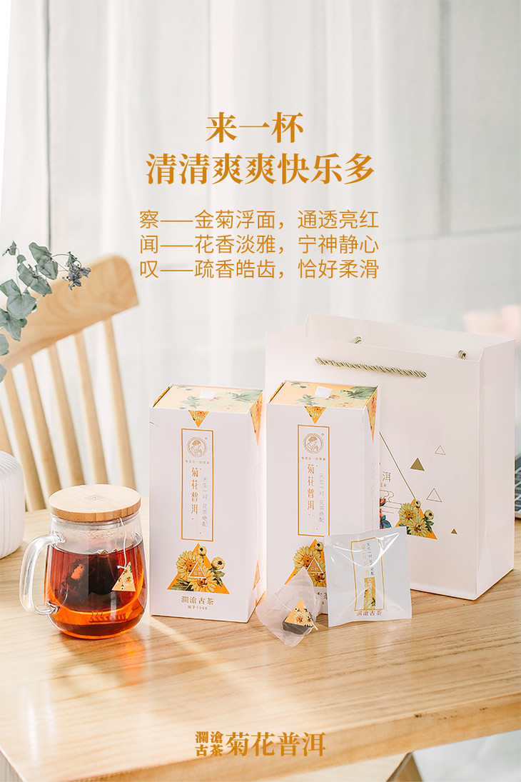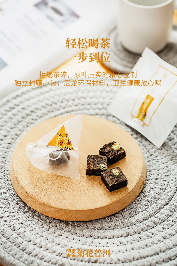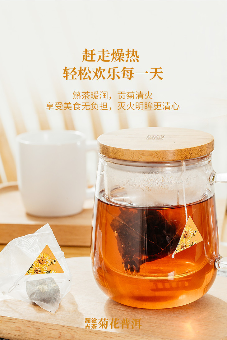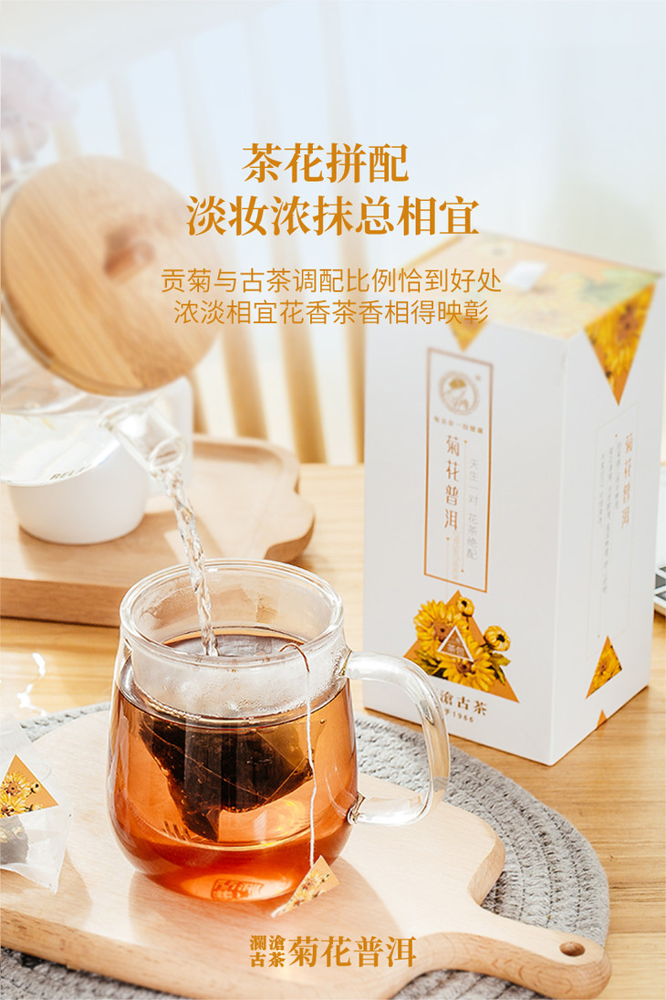【积分兑换】澜沧古茶茶妈妈菊花普洱茶熟茶叶三角茶包花茶组合袋泡茶80g/盒