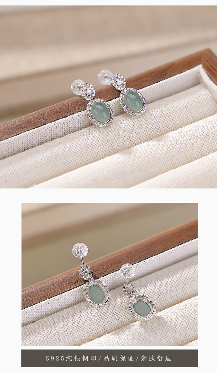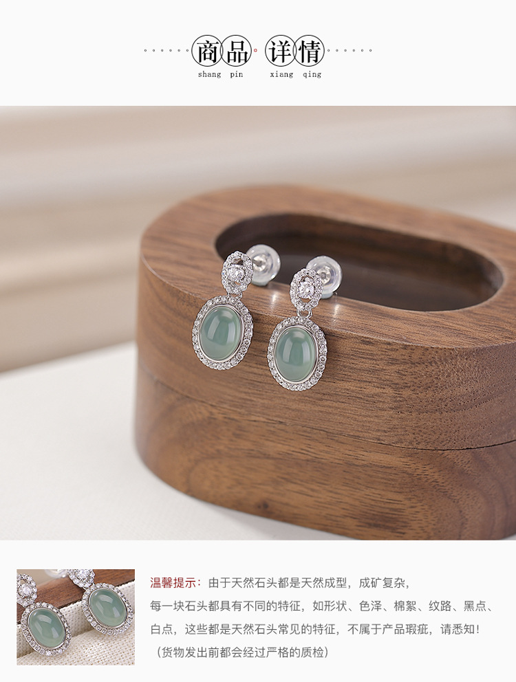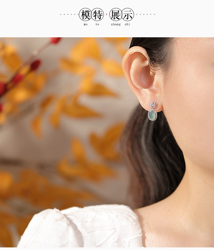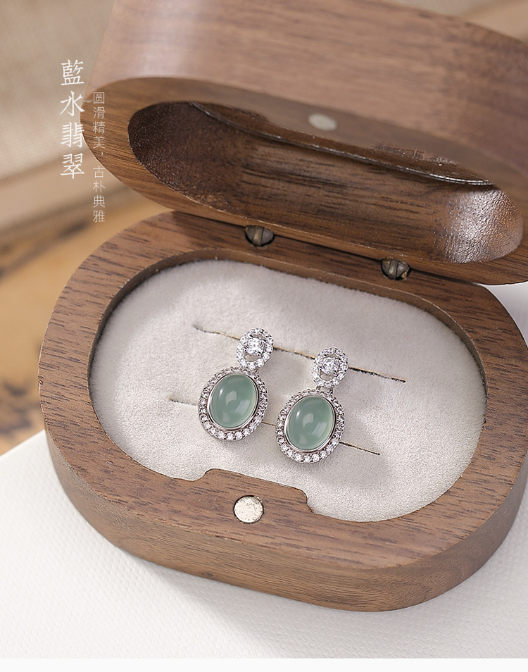 【碧裳舞韵】蓝水翡翠S925纯银复古耳钉【CW-ED04337】