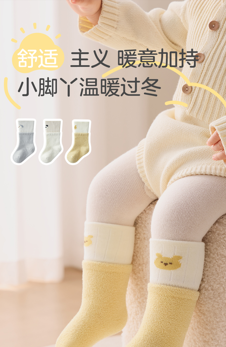 粒粒阳光婴儿袜子2025新宝宝秋冬袜男女加厚保暖儿童袜子