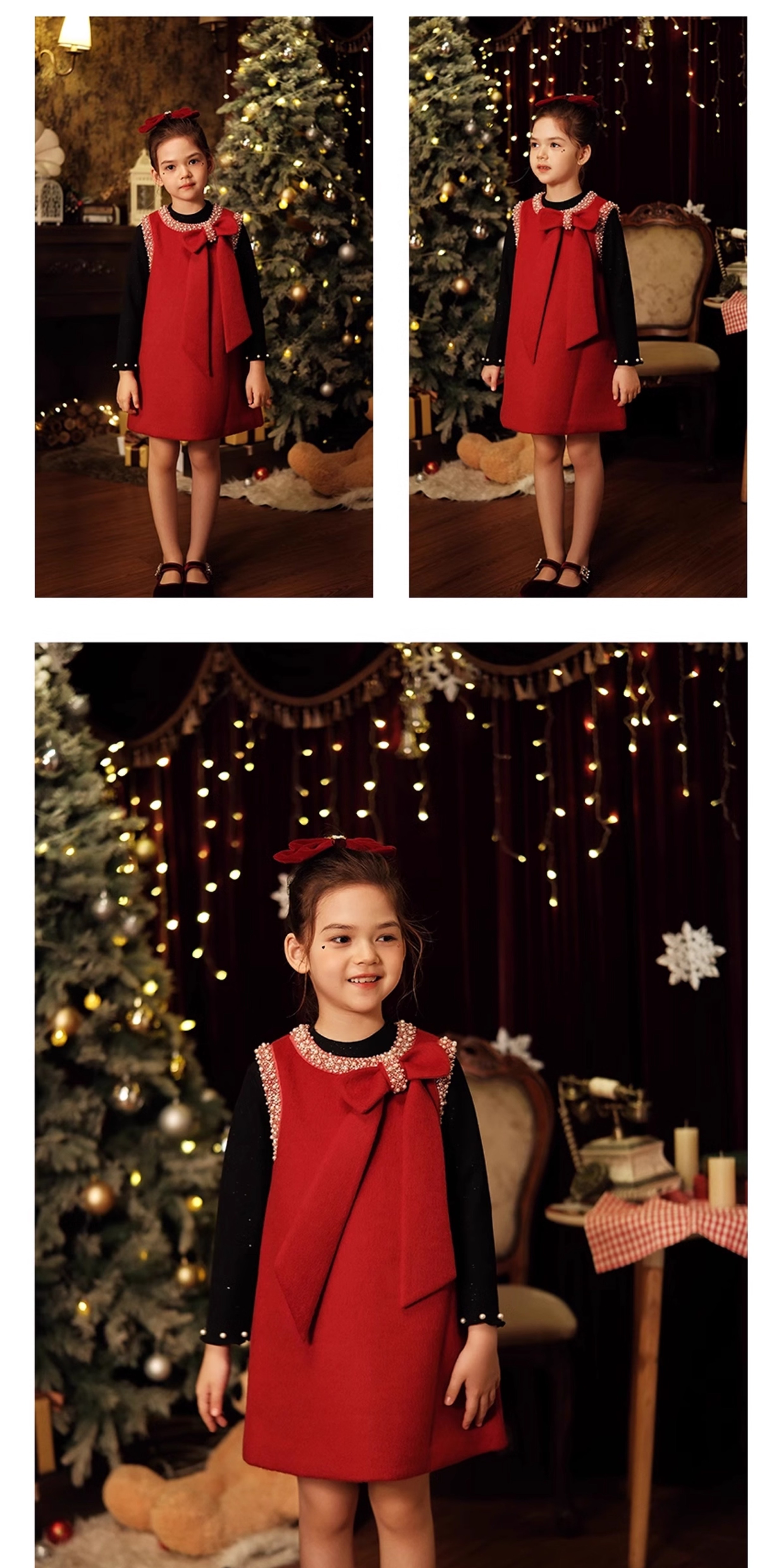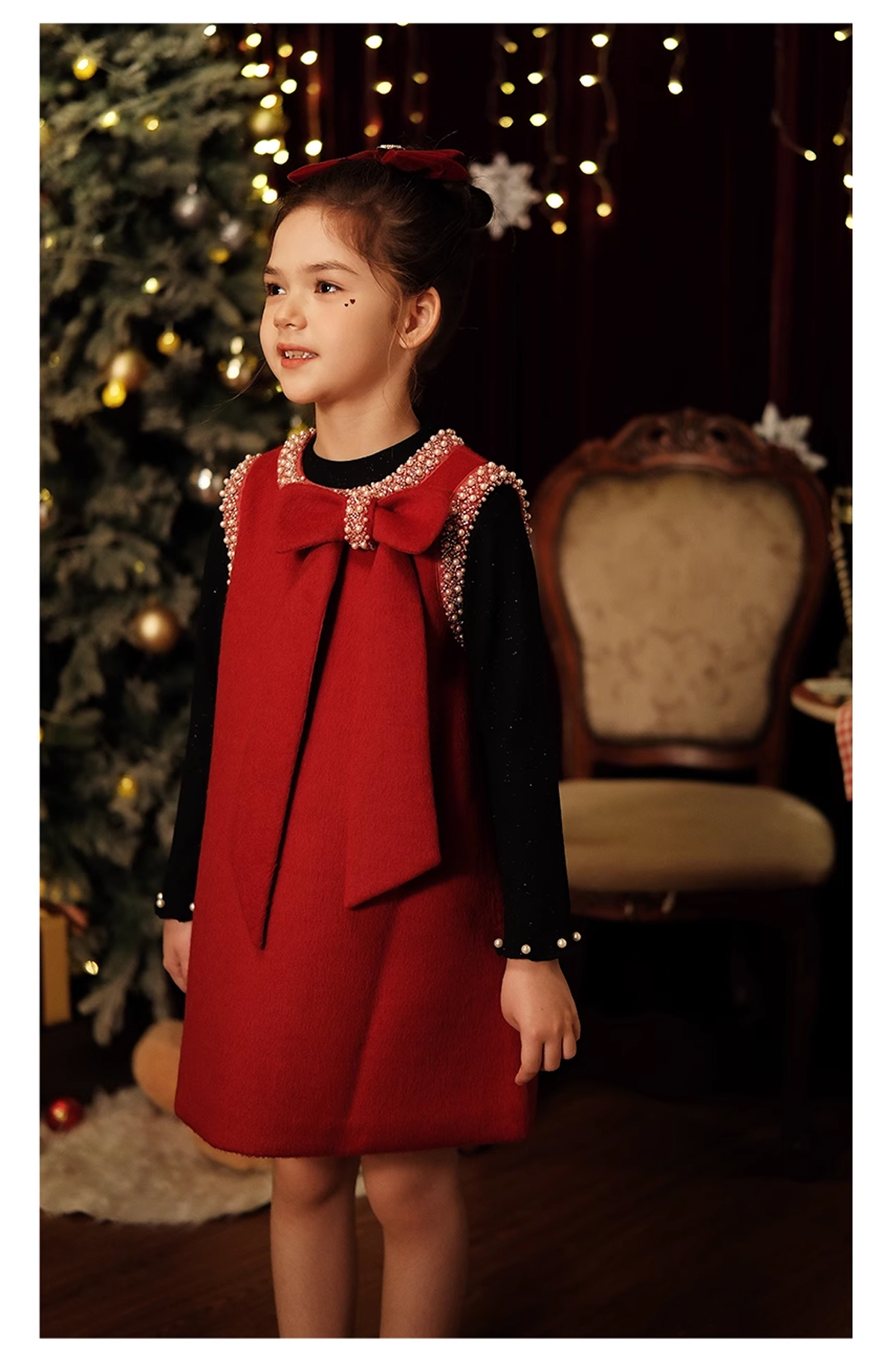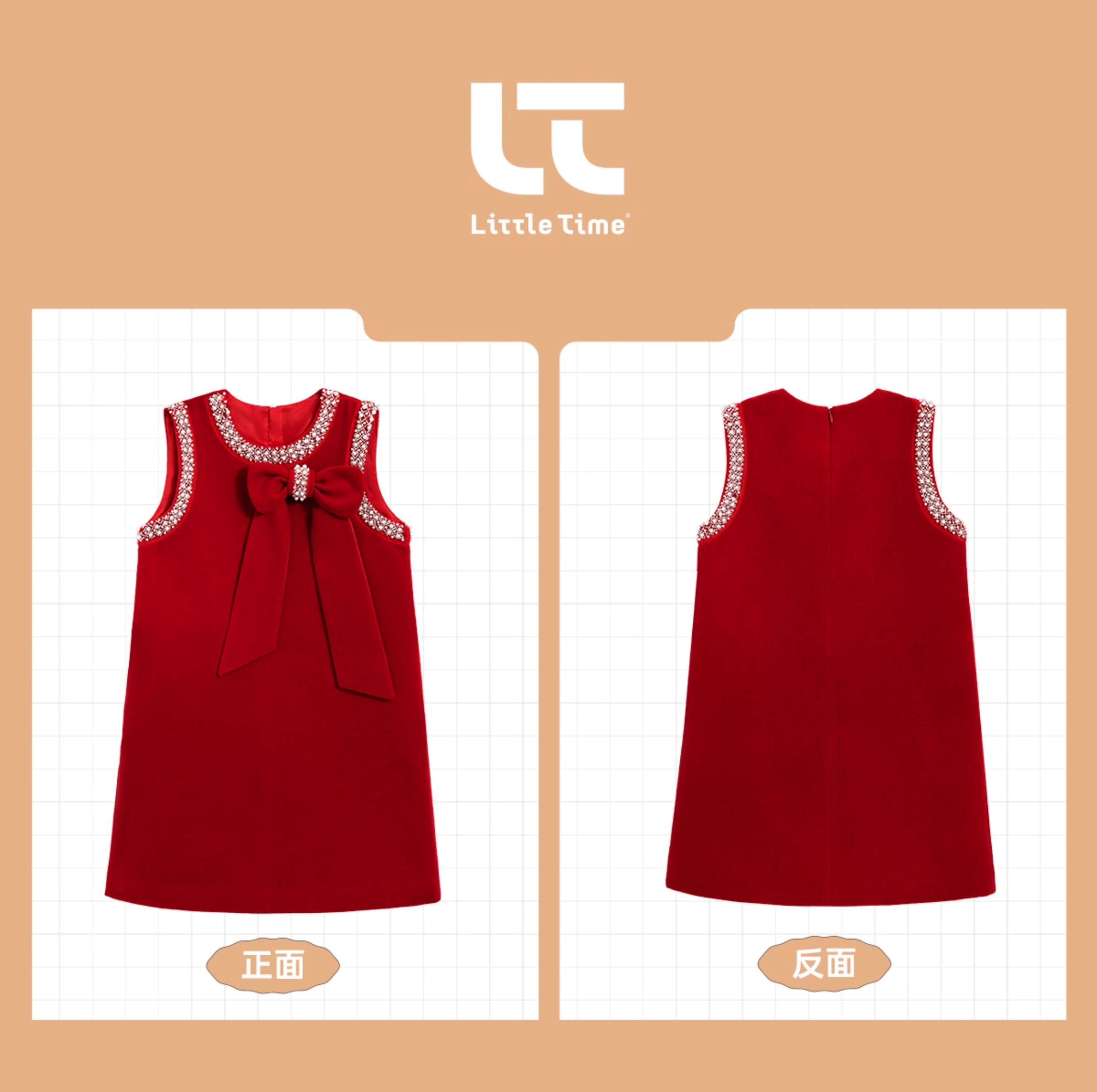littletime儿童秋冬毛呢背心裙红色礼服裙年服女童小香风连衣裙