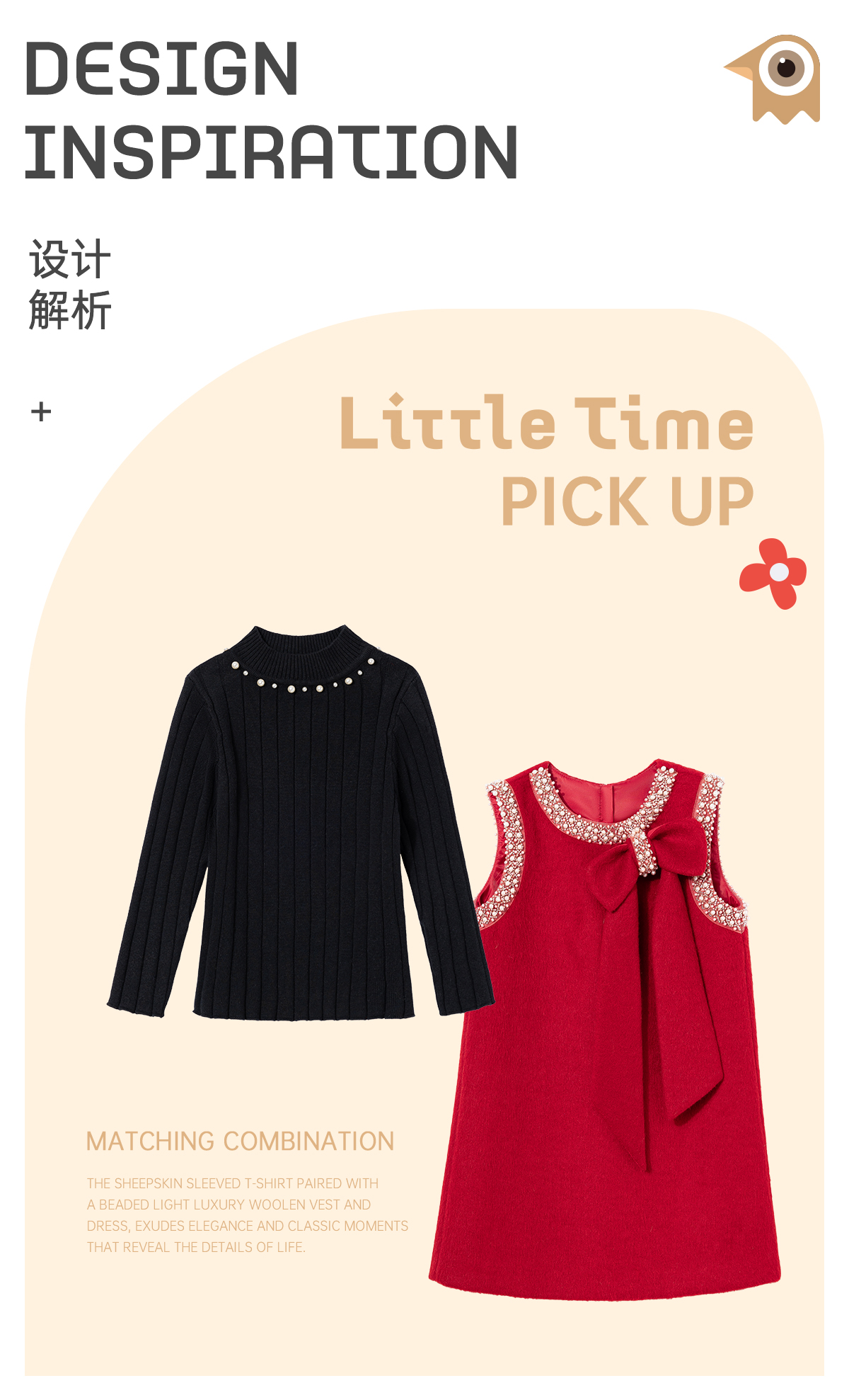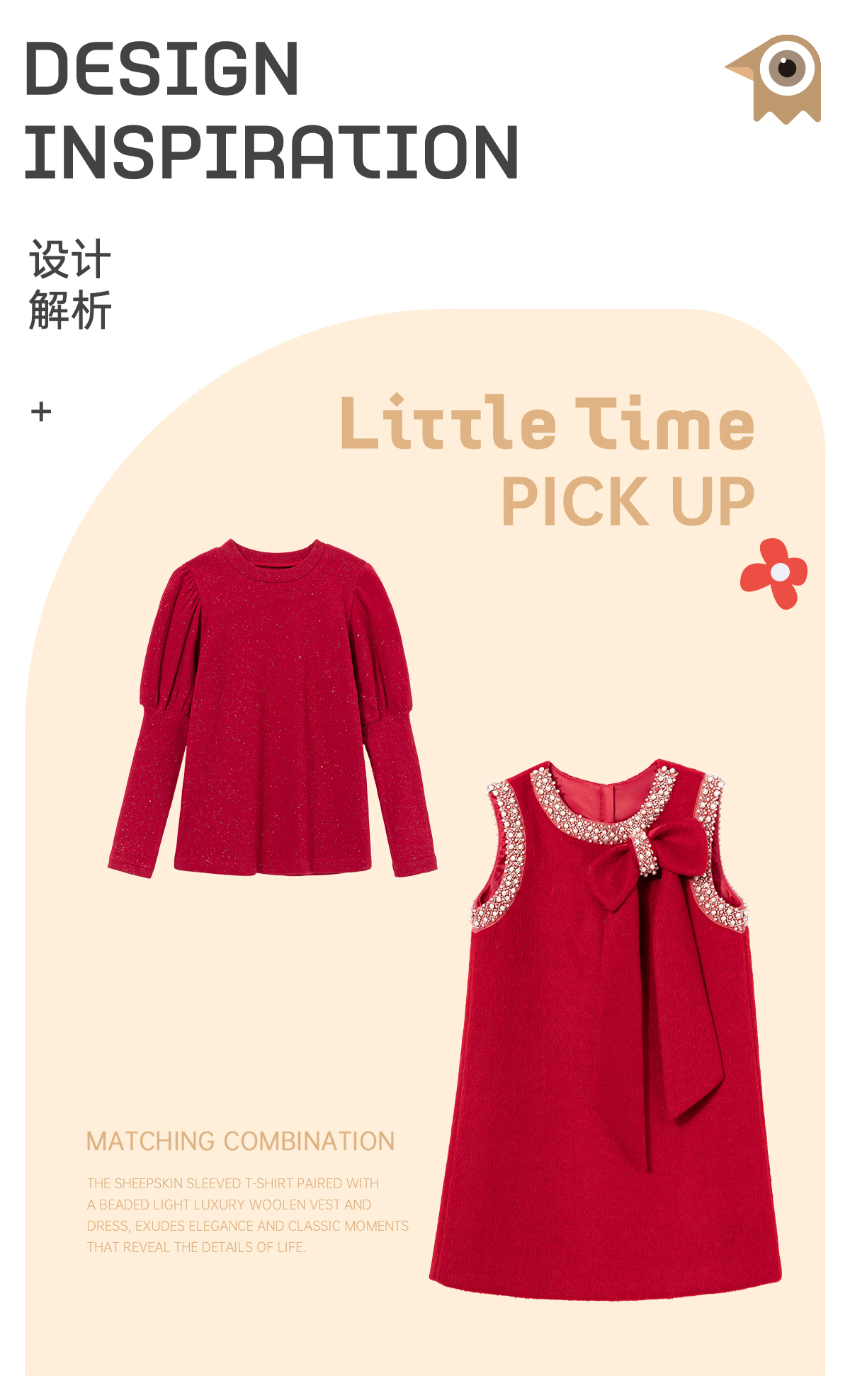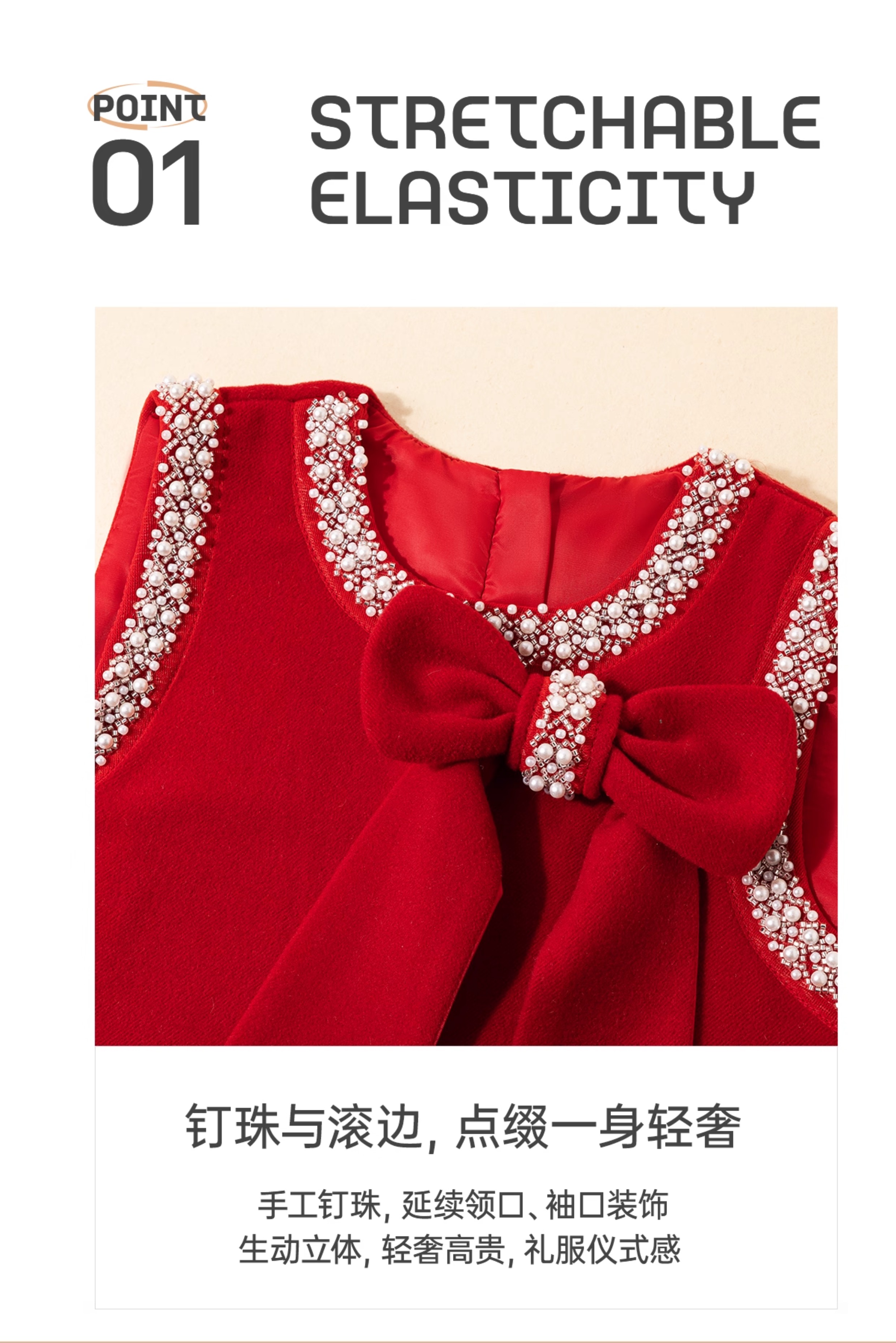 littletime儿童秋冬毛呢背心裙红色礼服裙年服女童小香风连衣裙