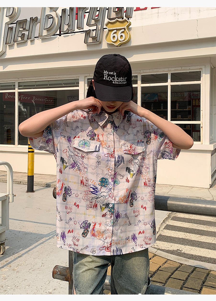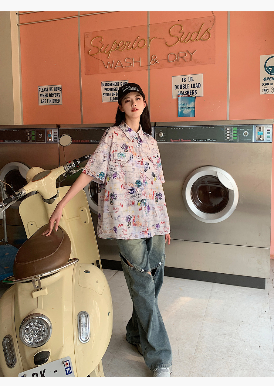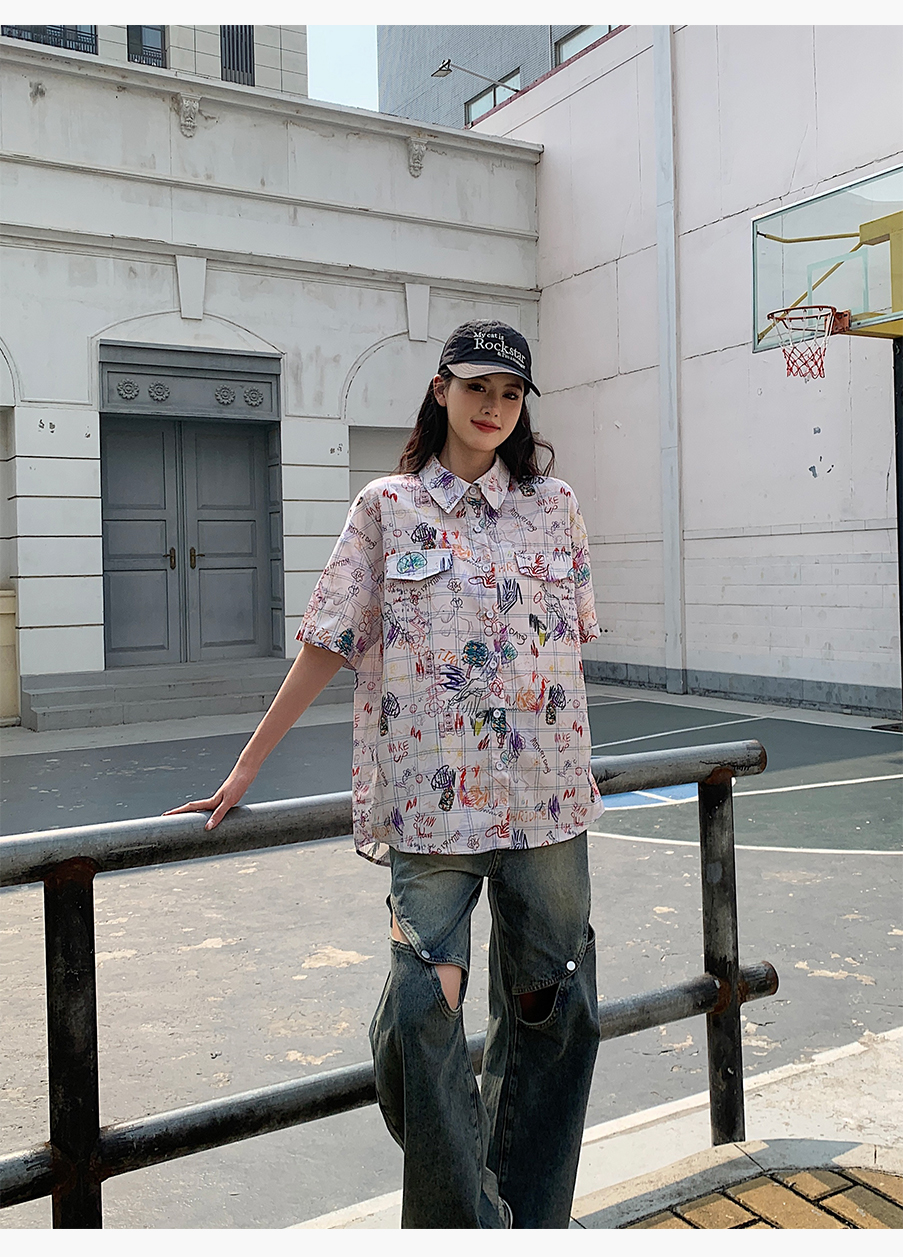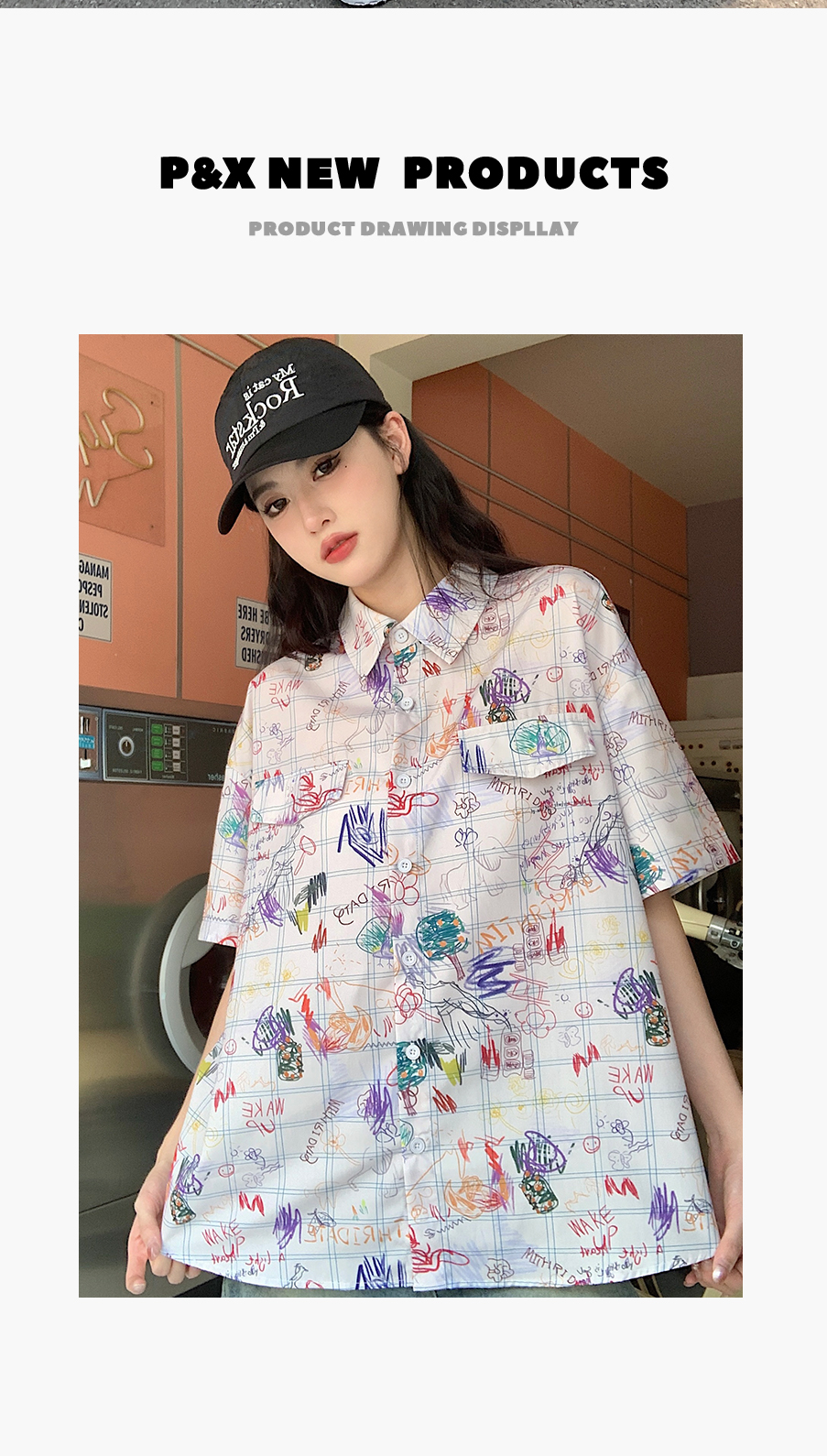 P&X设计师女装夏季衬衣时尚港风满印短款衬衫 824205298 花色