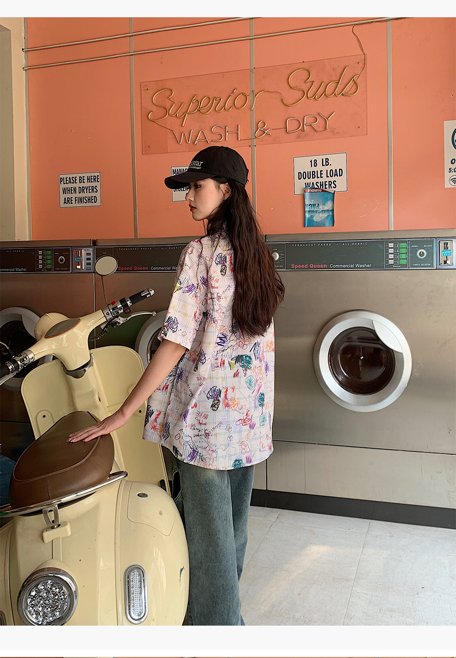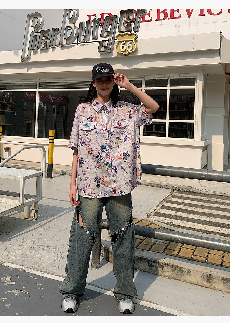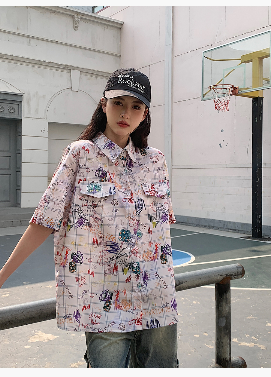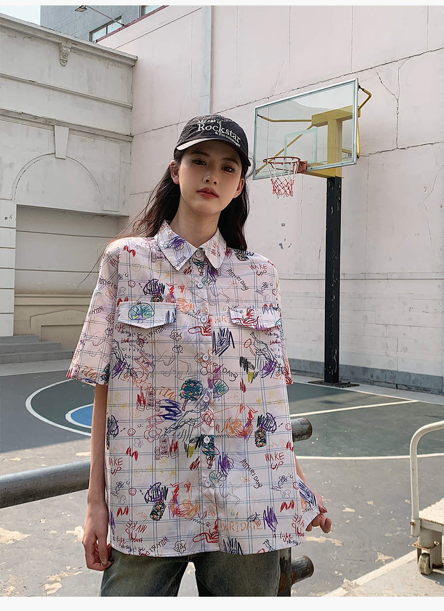 P&X设计师女装夏季衬衣时尚港风满印短款衬衫 824205298 花色