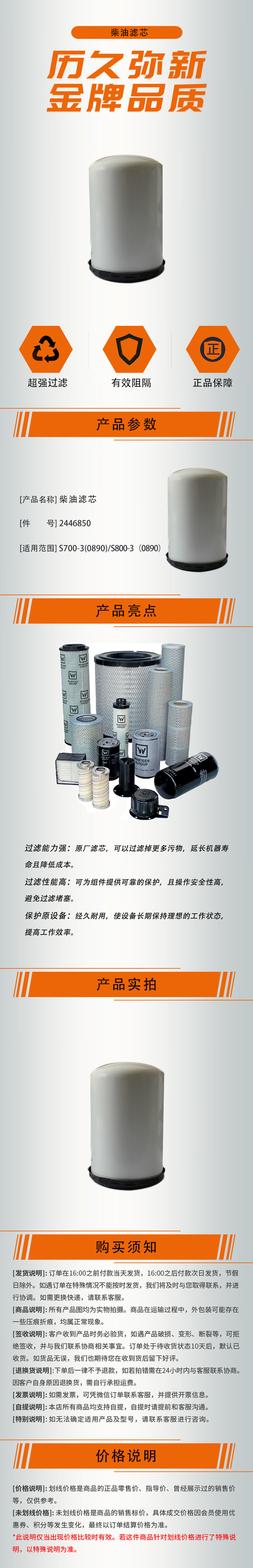 【柴油滤芯2446850】 适用于S700-3(0890)/S800-3(0890)