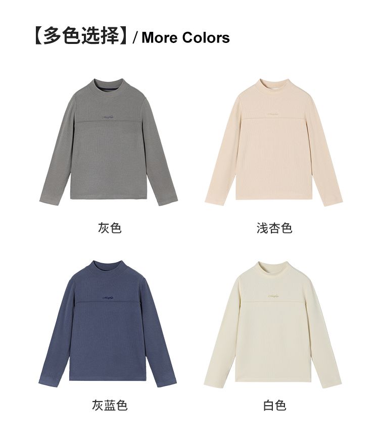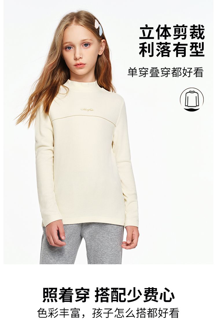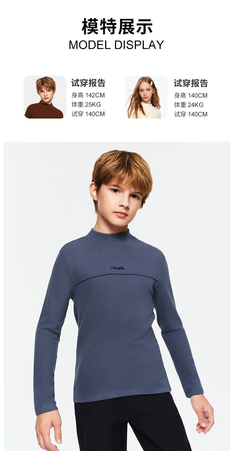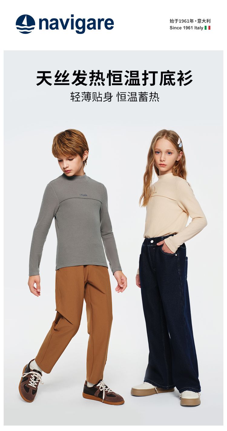 【莱赛尔+膨体德绒】【120-165】【纳维凯尔】意大利小帆船男女童半高领打底衫保暖T恤