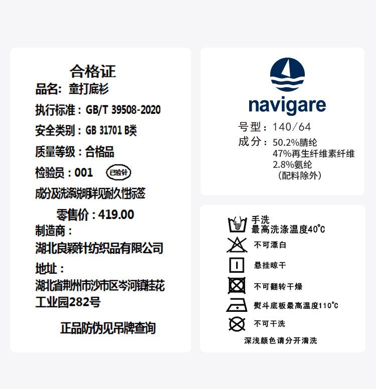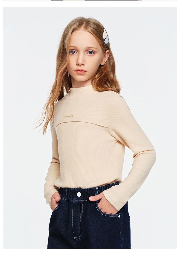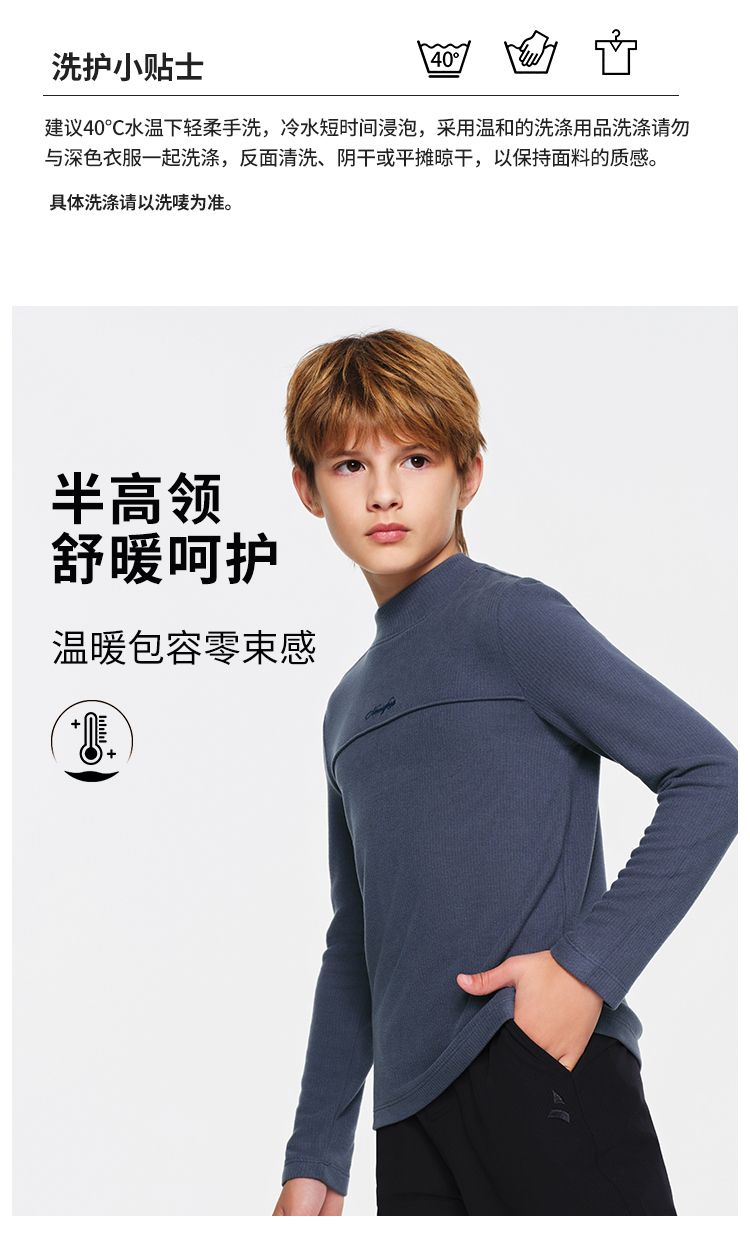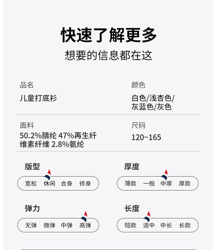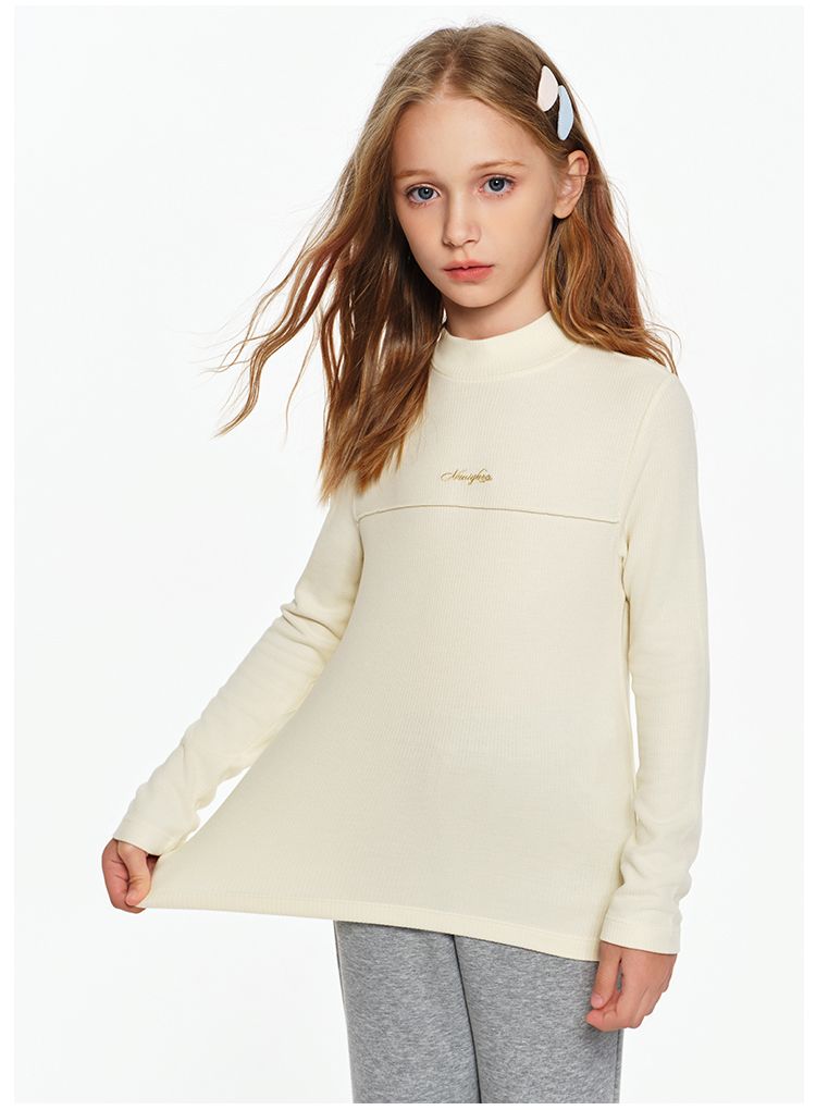 【莱赛尔+膨体德绒】【120-165】【纳维凯尔】意大利小帆船男女童半高领打底衫保暖T恤