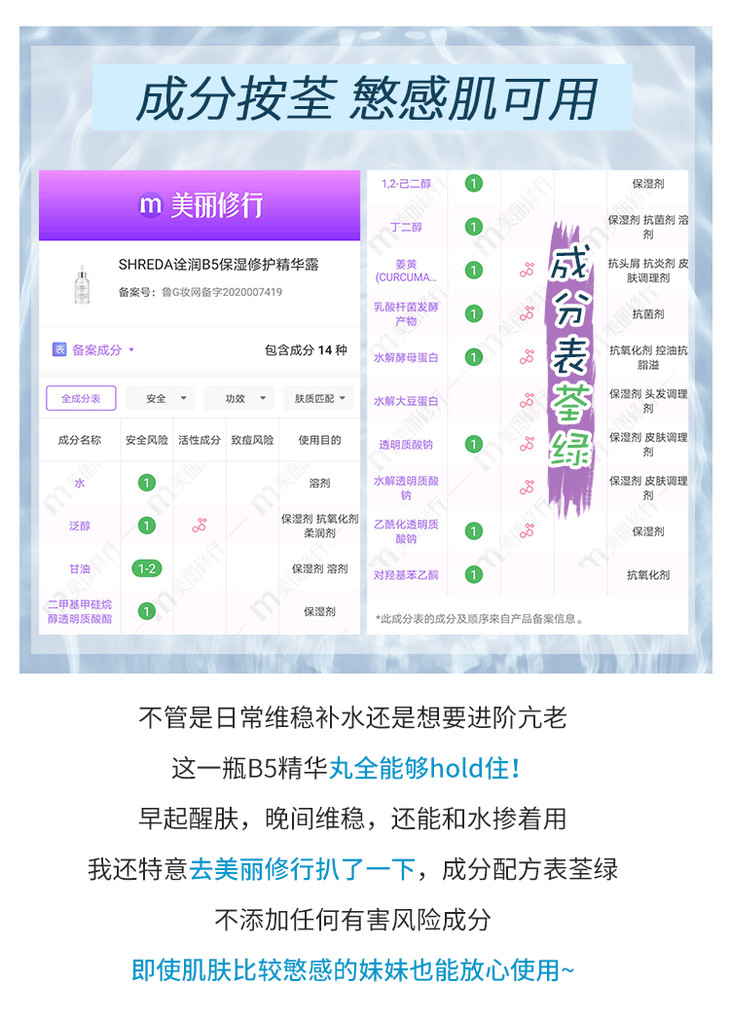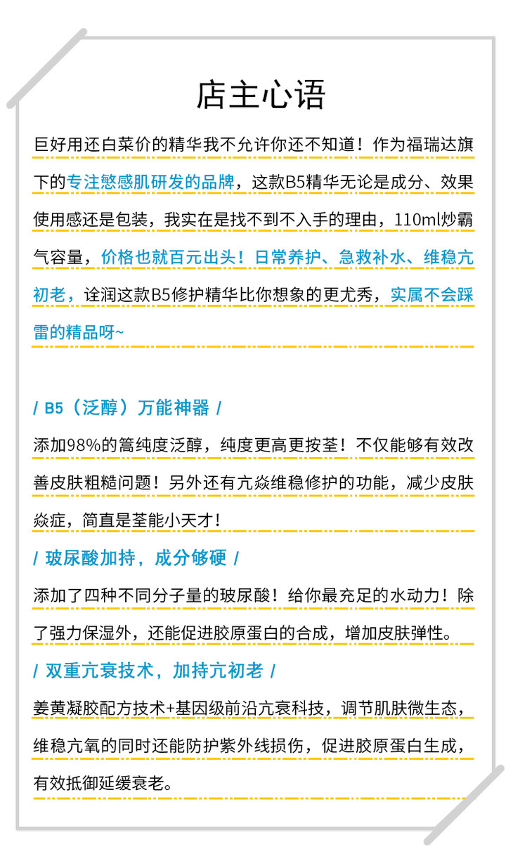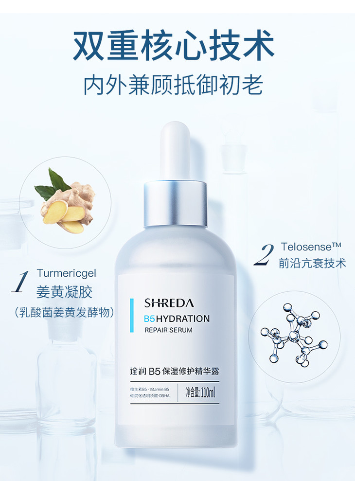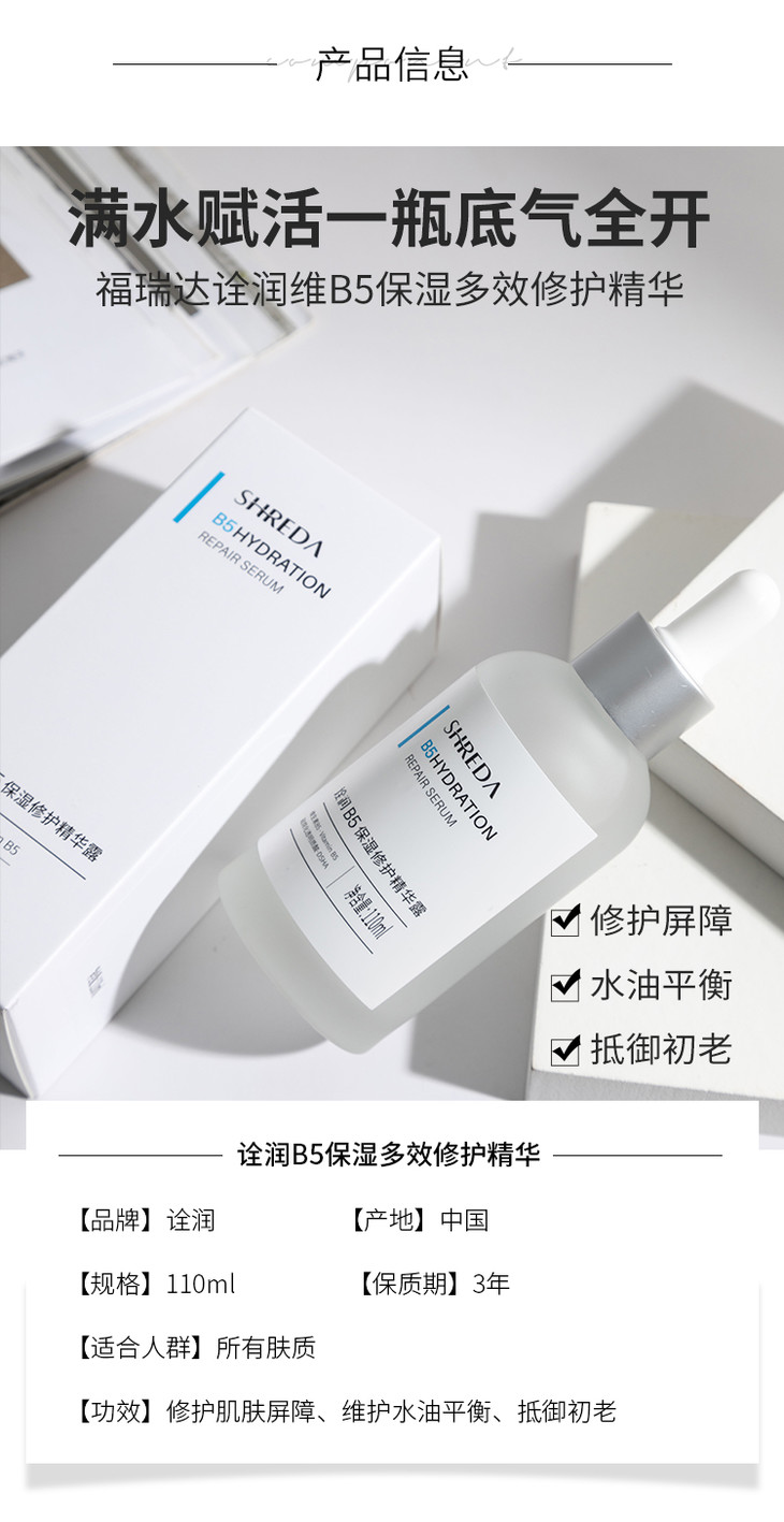 【福瑞达】shreda诠润B5保湿修护抗初老滋润面部深层补水精华露