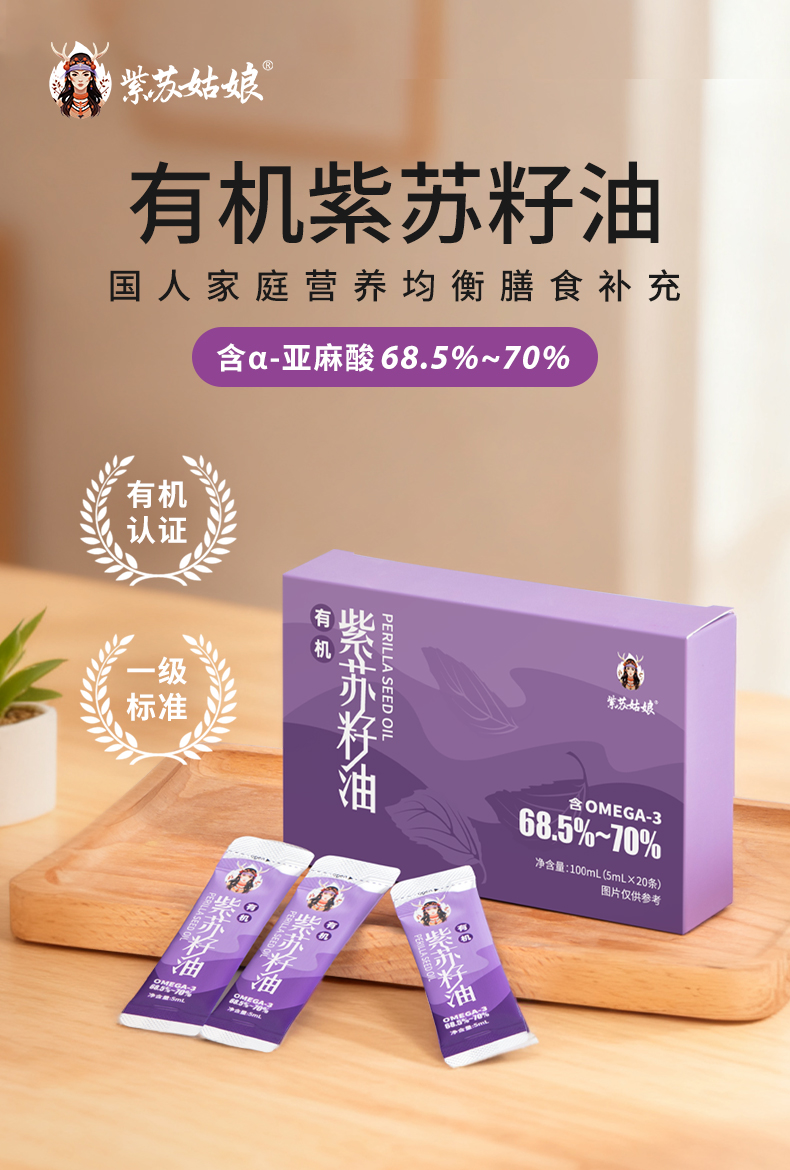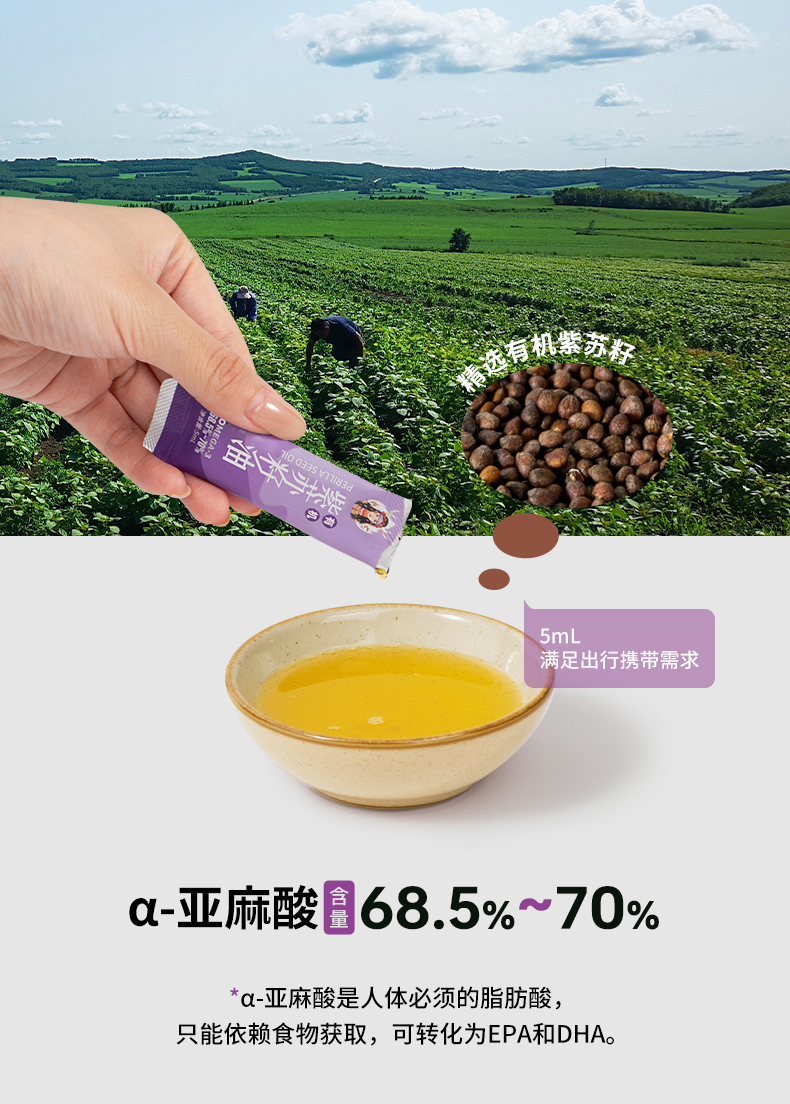 紫苏姑娘有机紫苏籽油鄂伦春黑土地种植高α亚麻酸5ml便携装★★