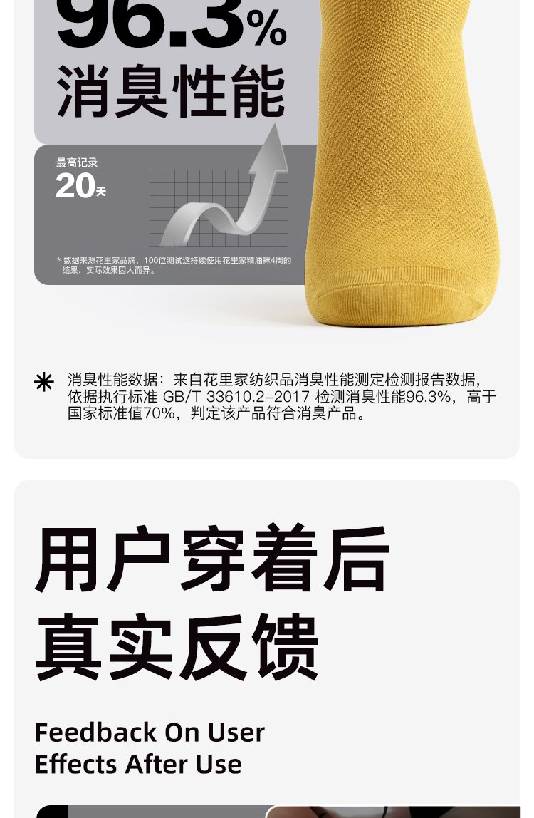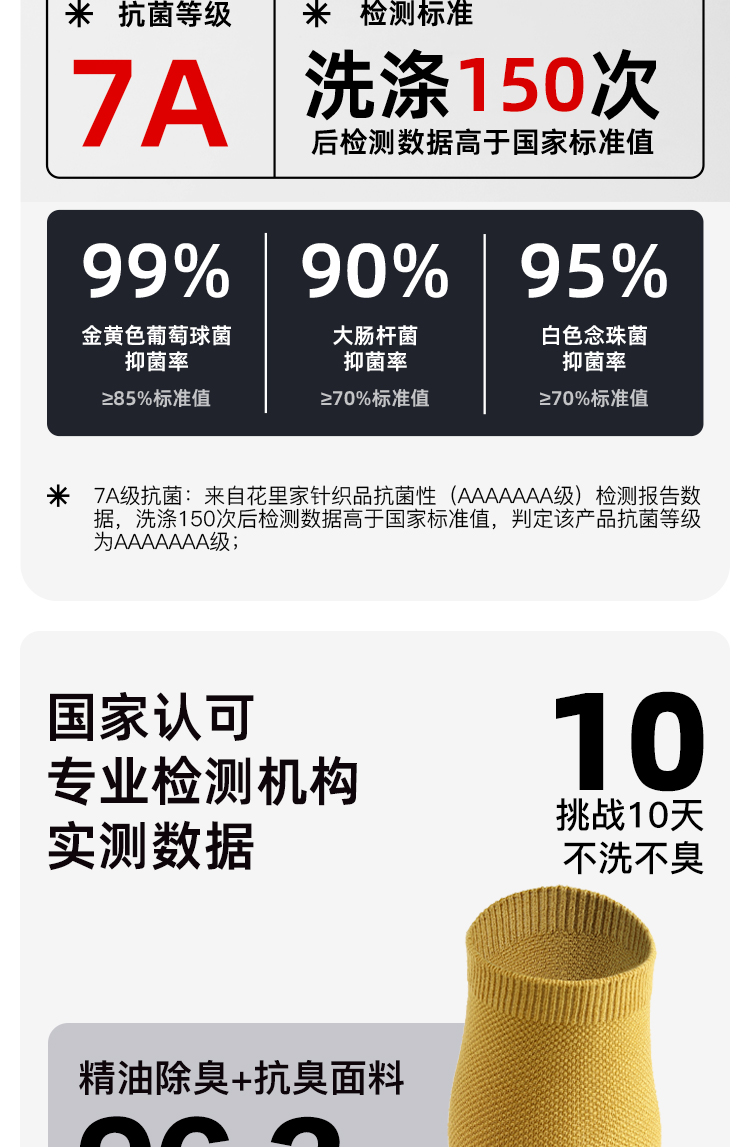 5、袜子可在不臭不潮湿的情况下,长时间穿着不用清洗;