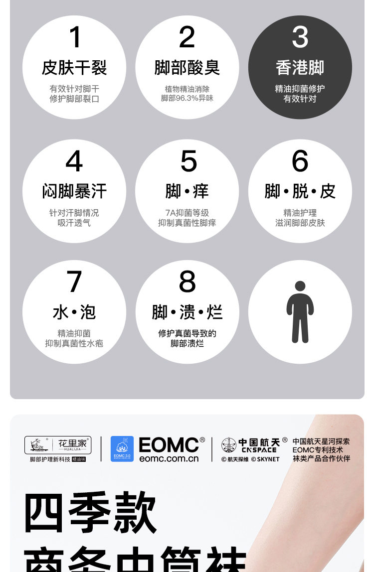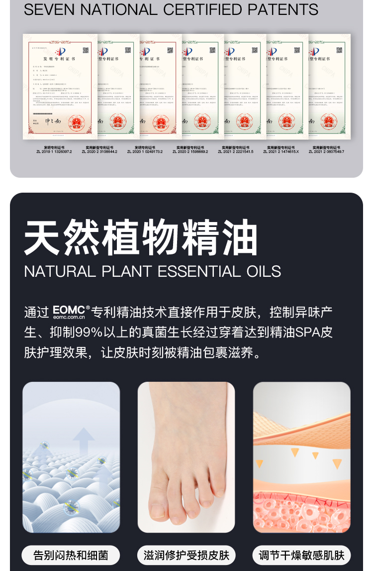 7、穿着精油袜的期间,建议其他普通袜子停止穿着,以便达到更好的效果;