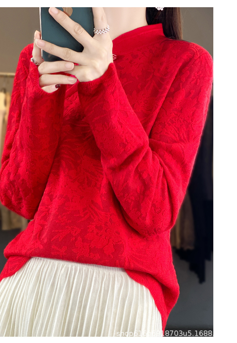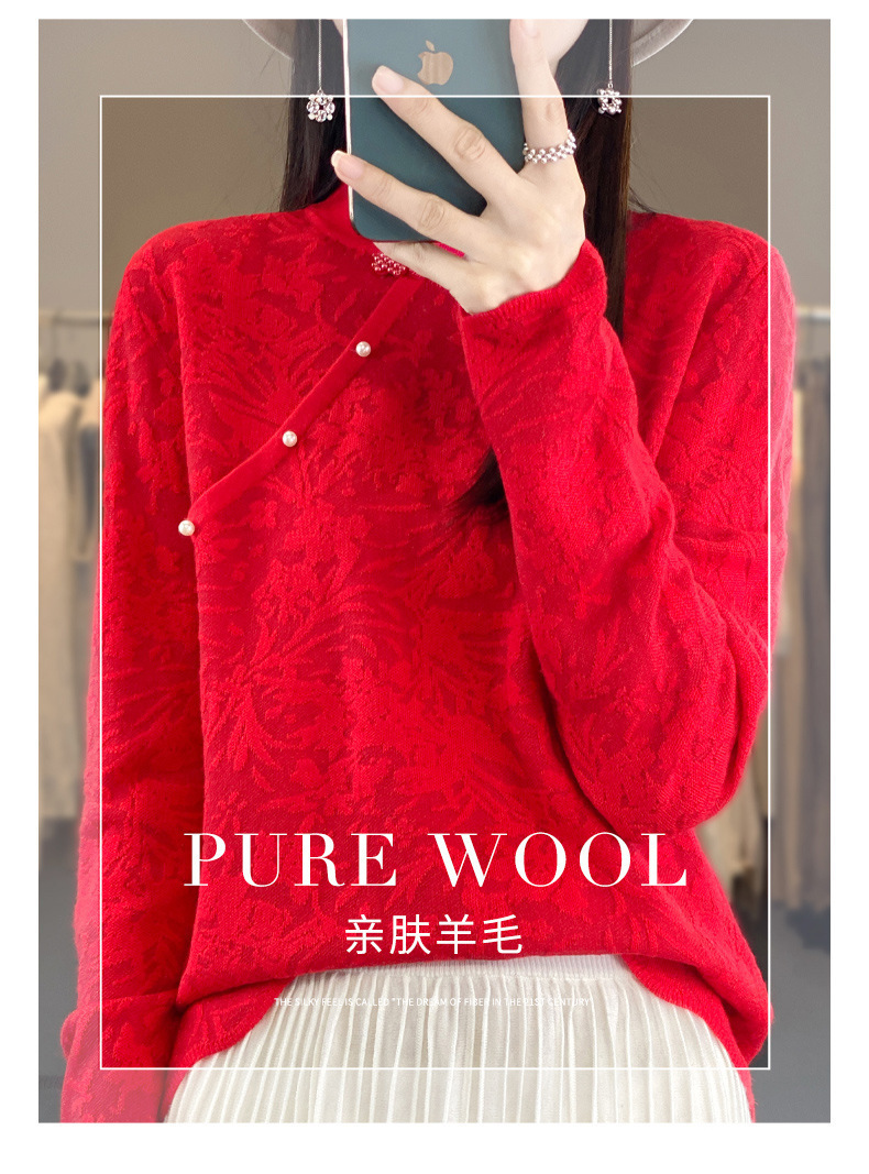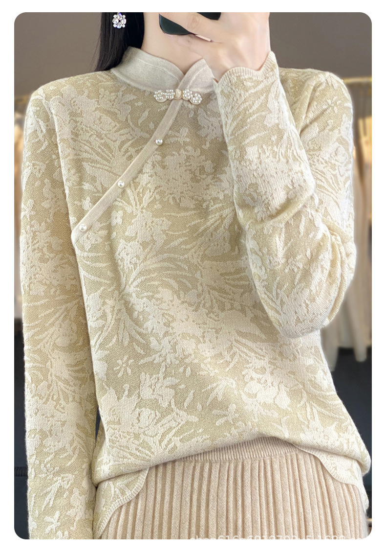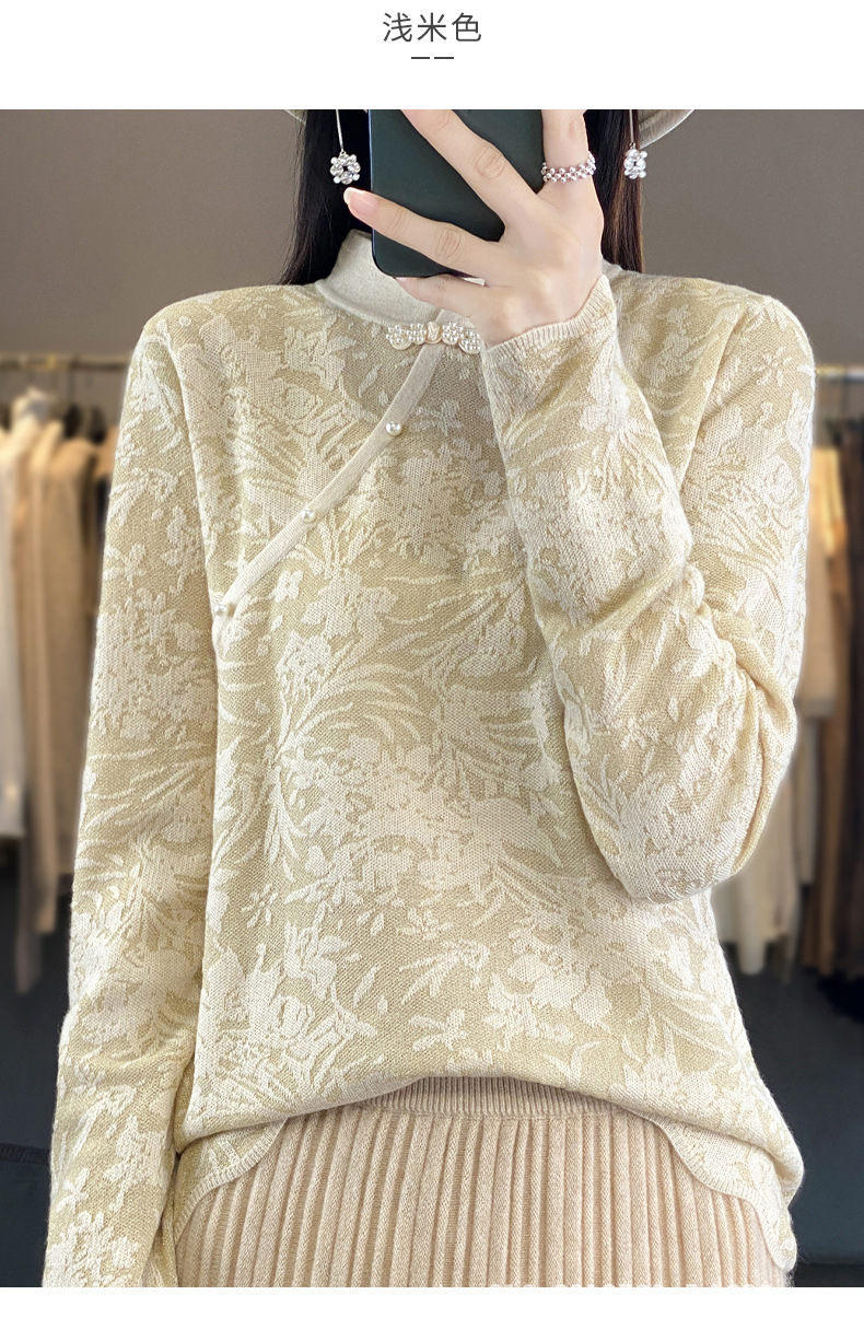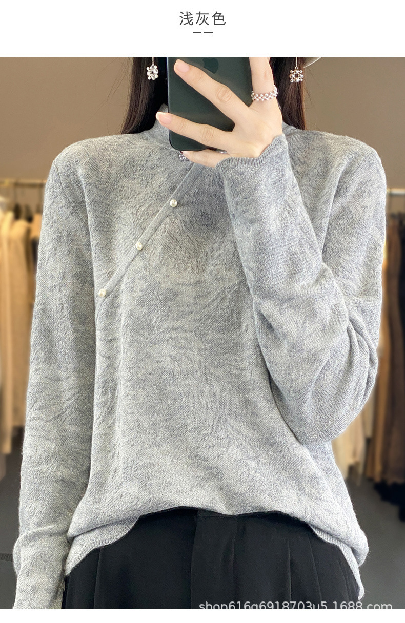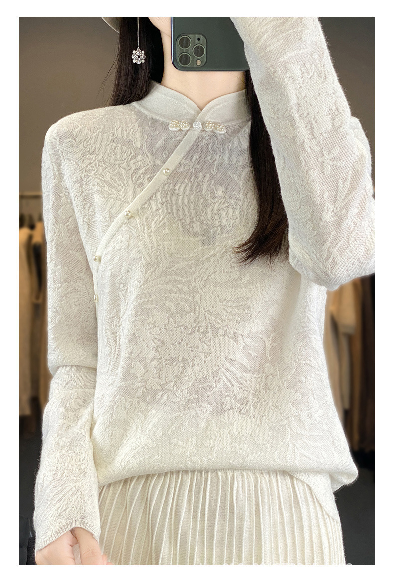 秋冬精纺羊毛衫纯色内搭毛衣蕾丝中式盘扣针织衫百搭QH-ZH2347