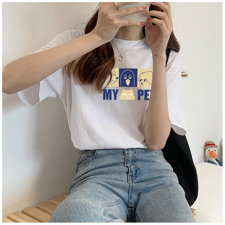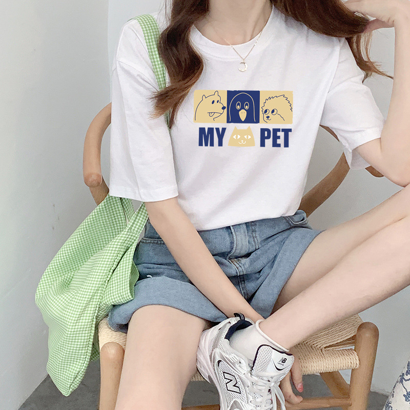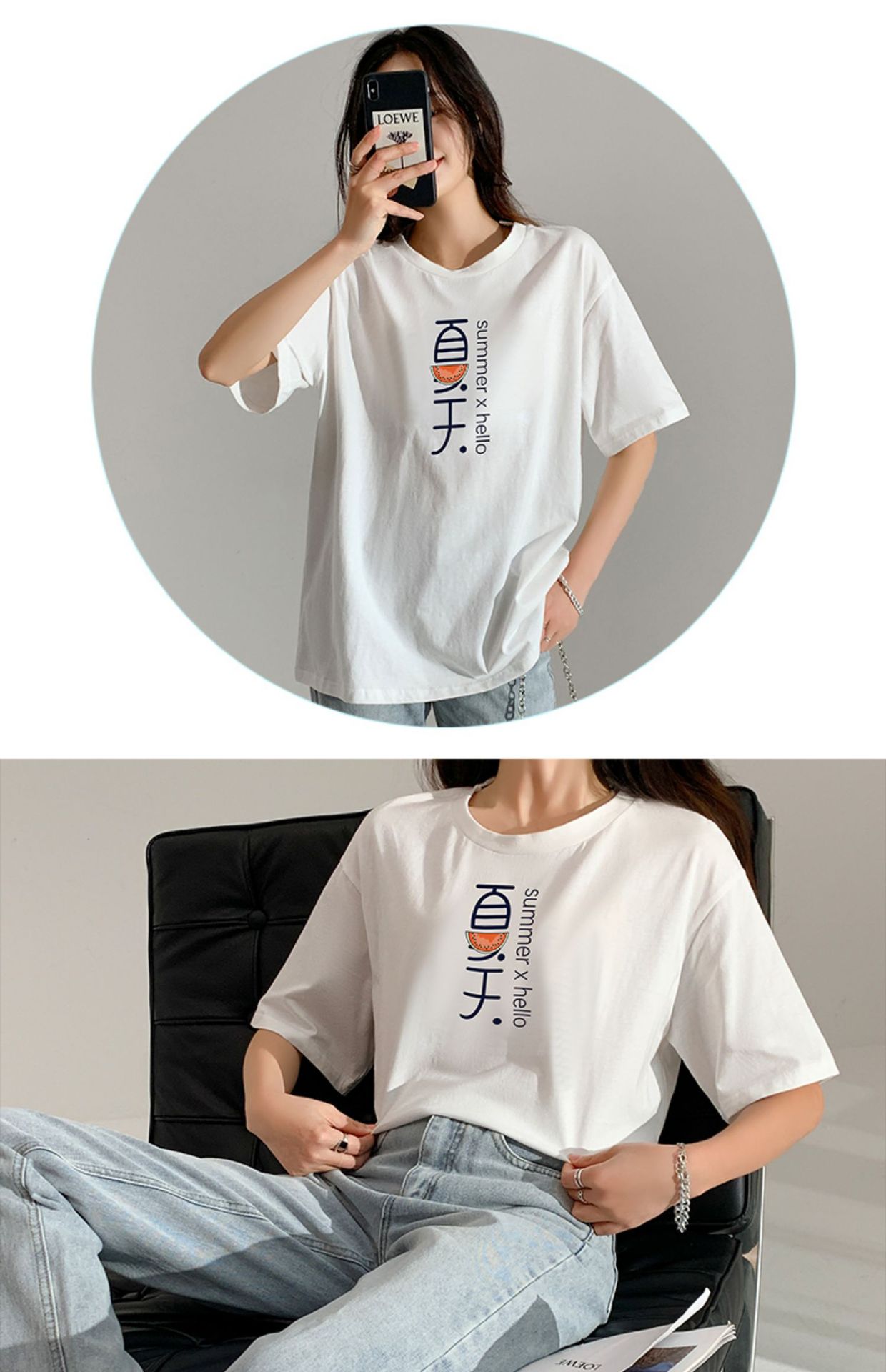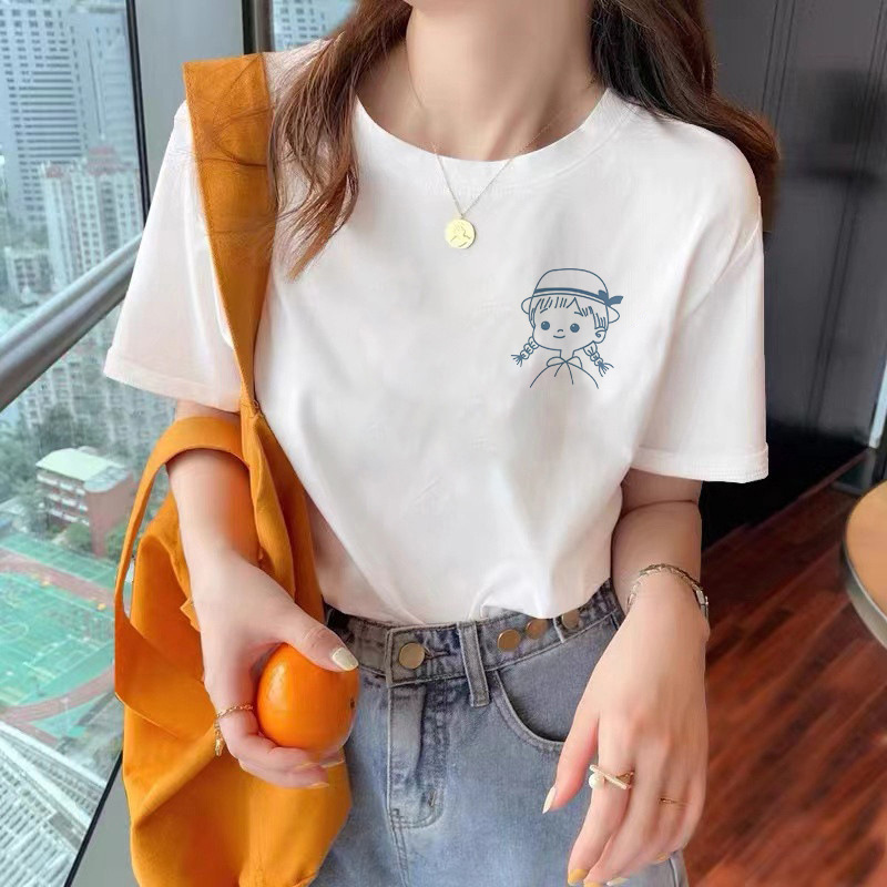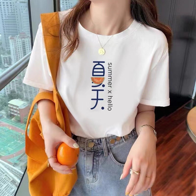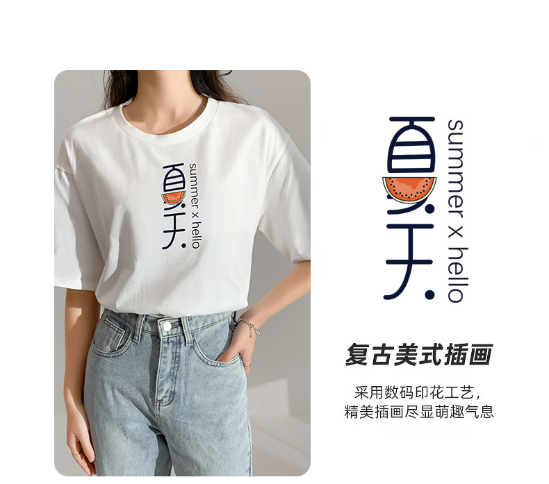 【休闲纯棉短袖t恤上衣】夏季新款 女装宽松内搭白色ins女款衣服 简约百搭