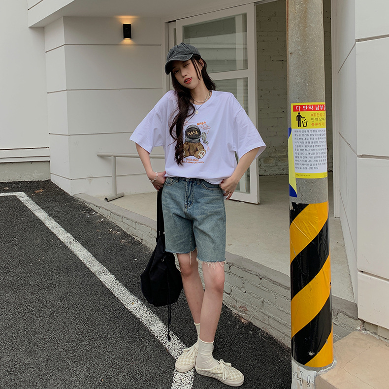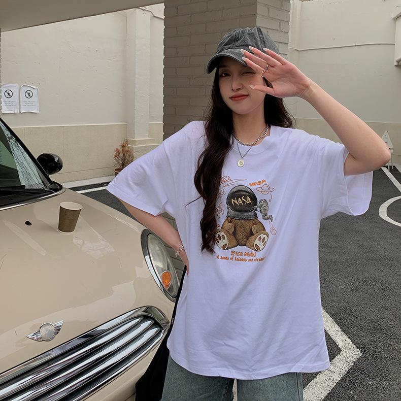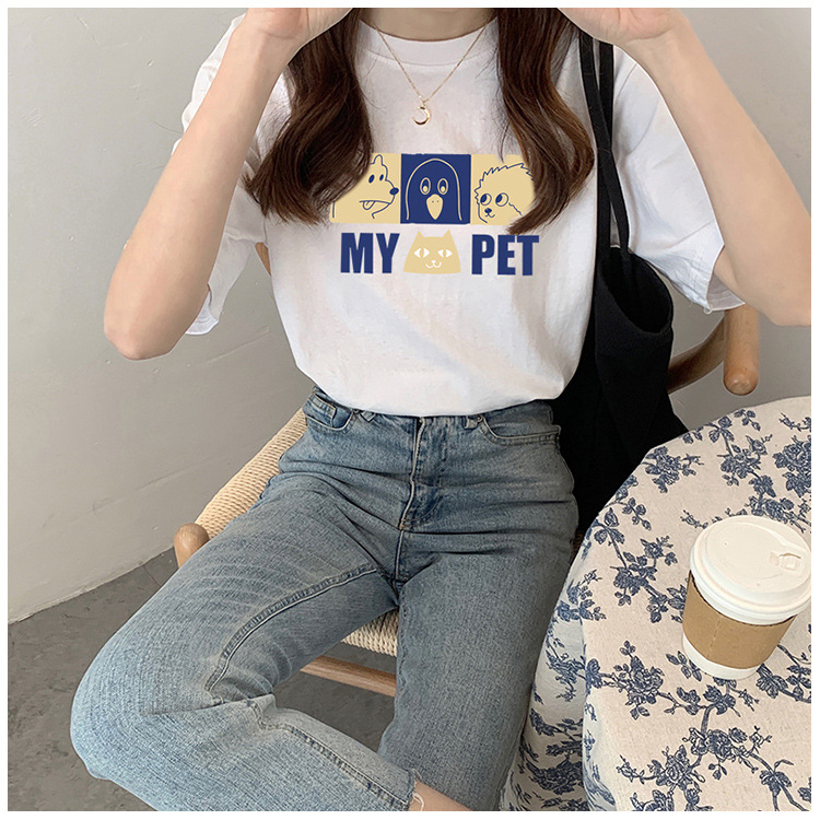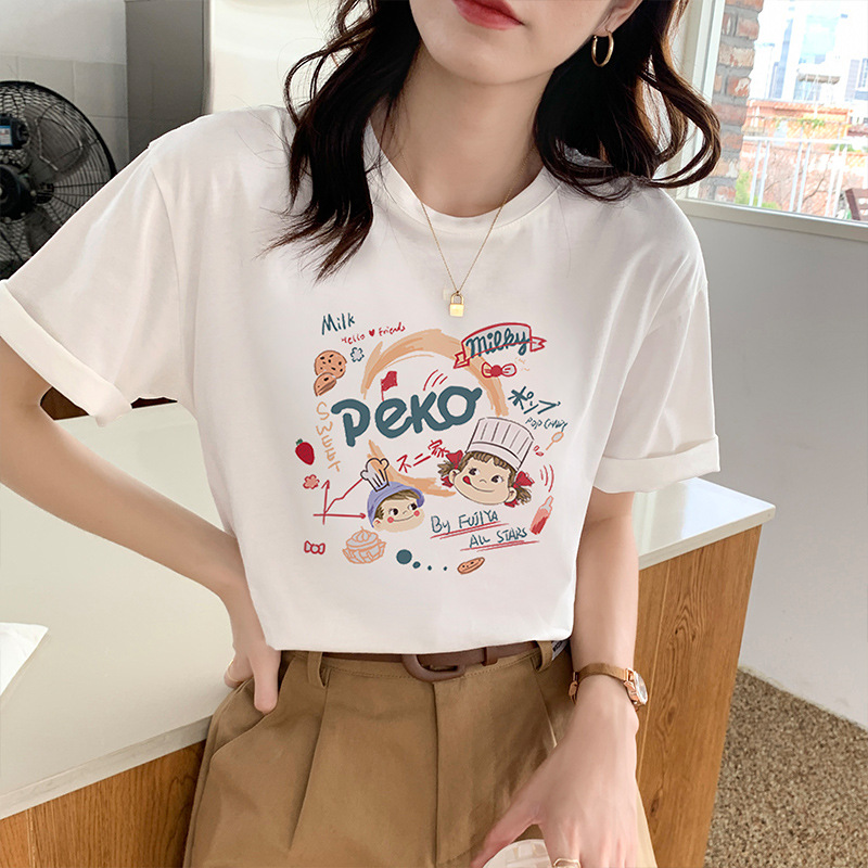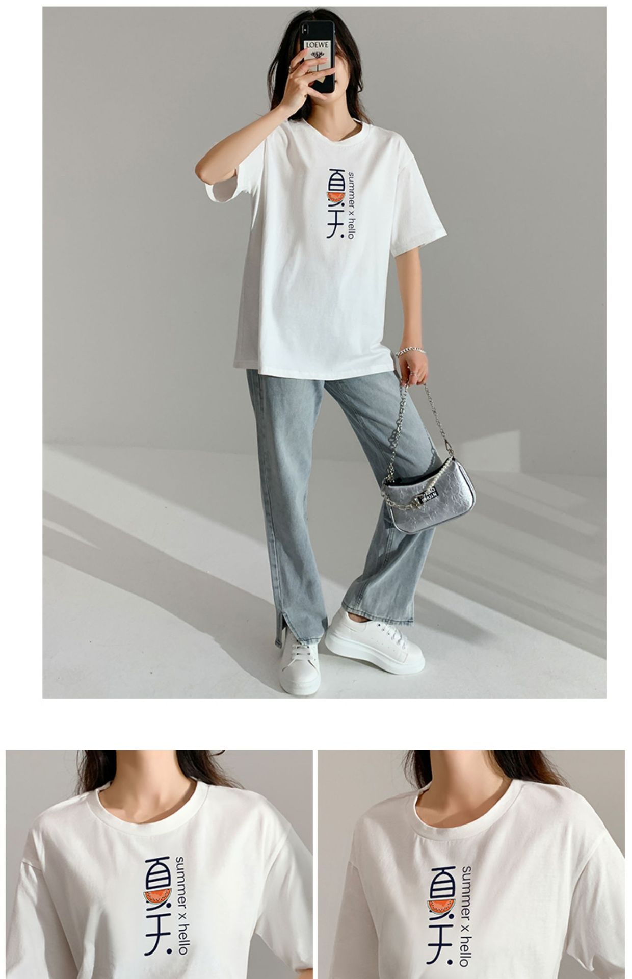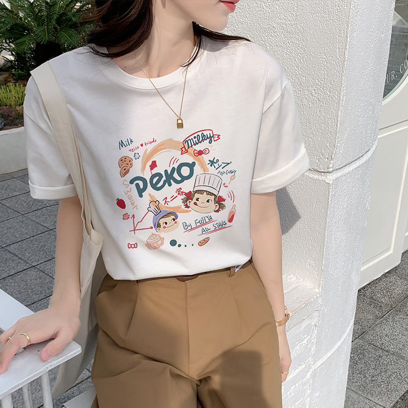 【休闲纯棉短袖t恤上衣】夏季新款 女装宽松内搭白色ins女款衣服 简约百搭