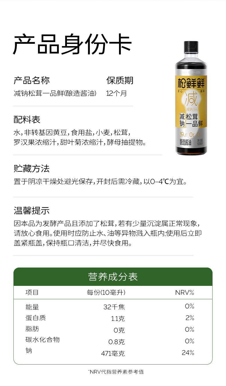 松鲜鲜 减钠松茸一品鲜(减钠39%)500ml*2/500ml*3