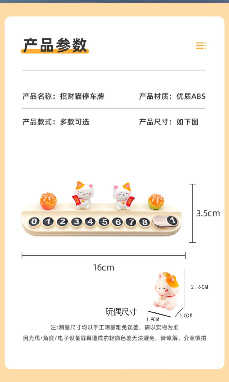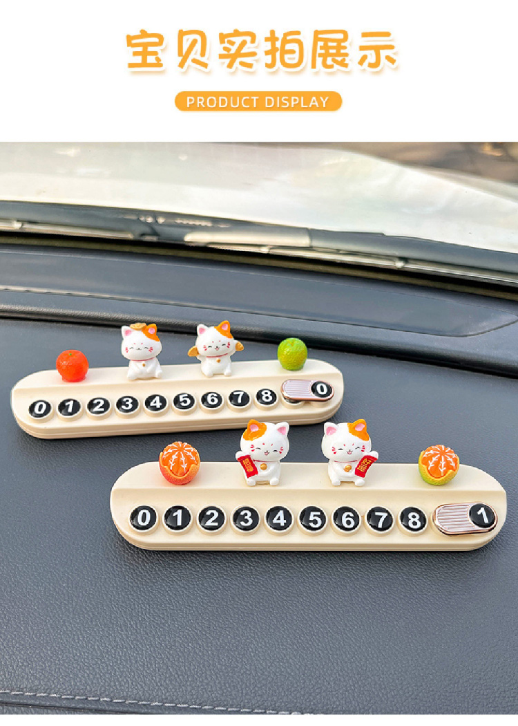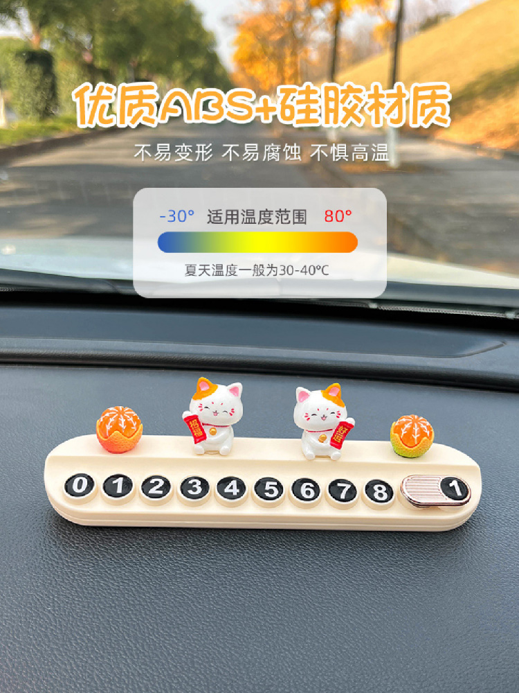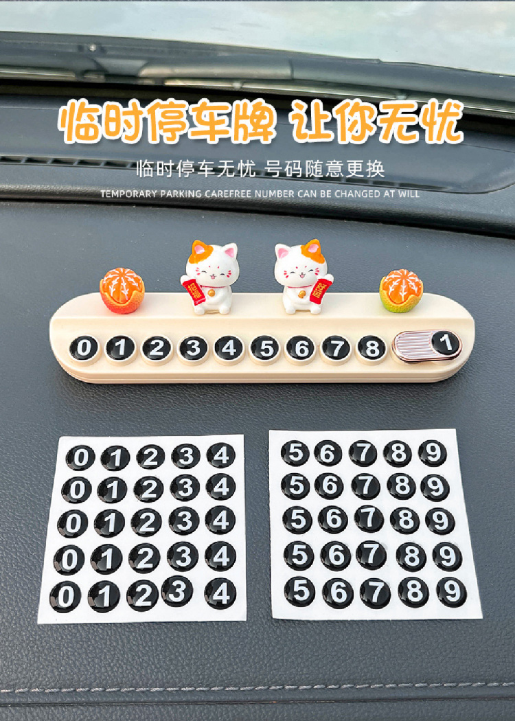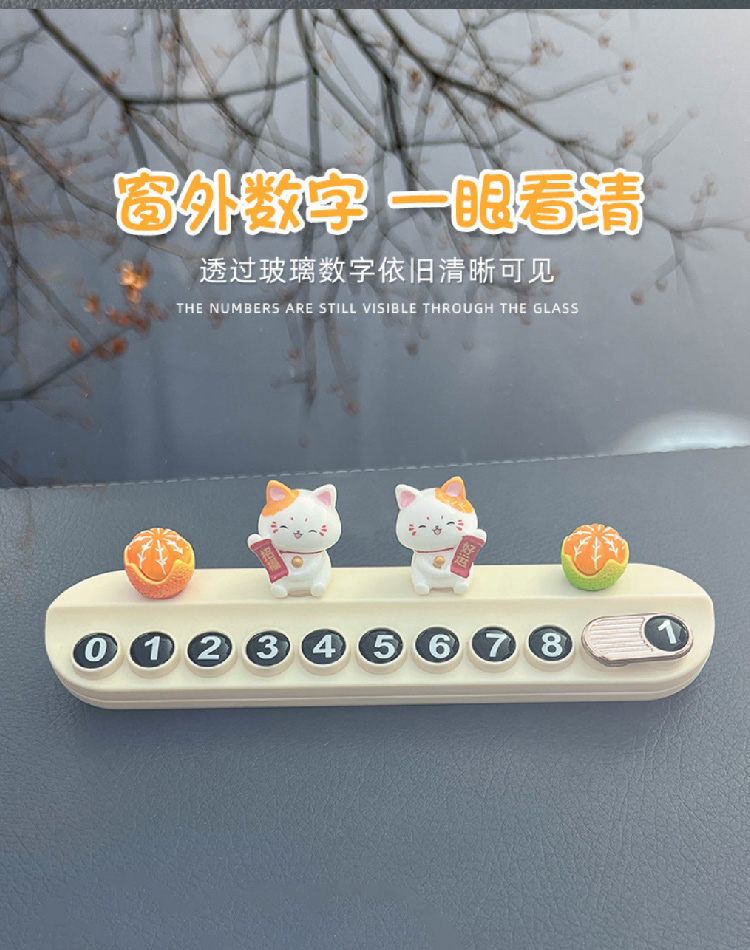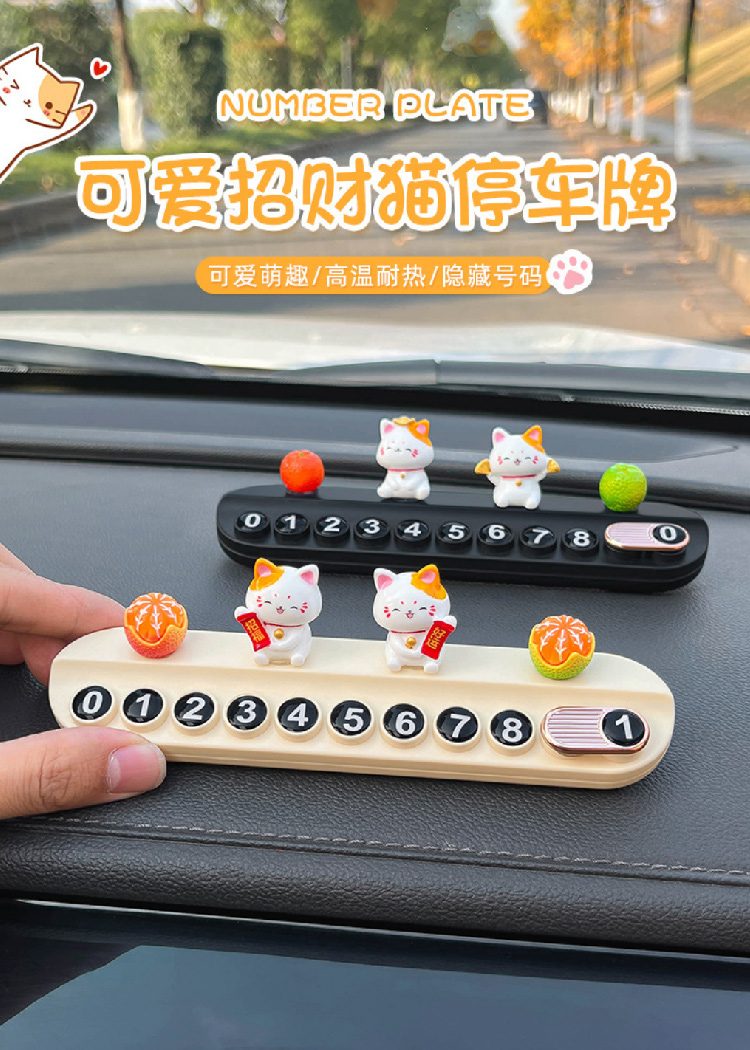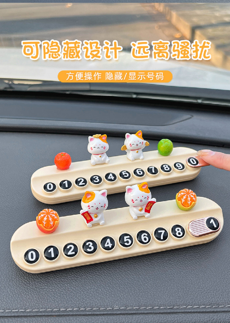 【招财猫停车牌】手机号汽车临时停车牌挪车电话牌 车载手机号码牌可隐藏装饰用品