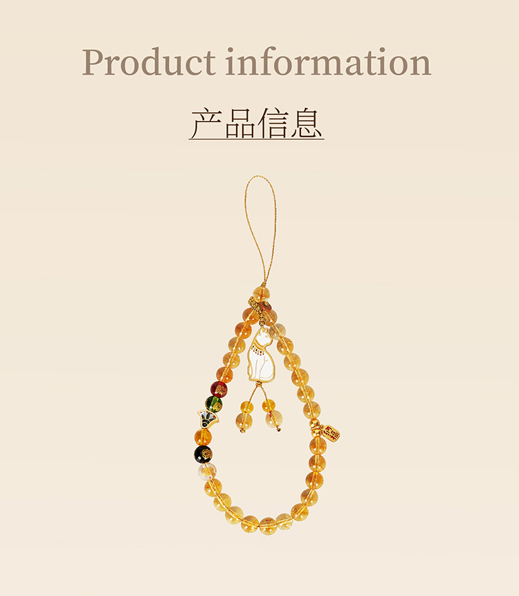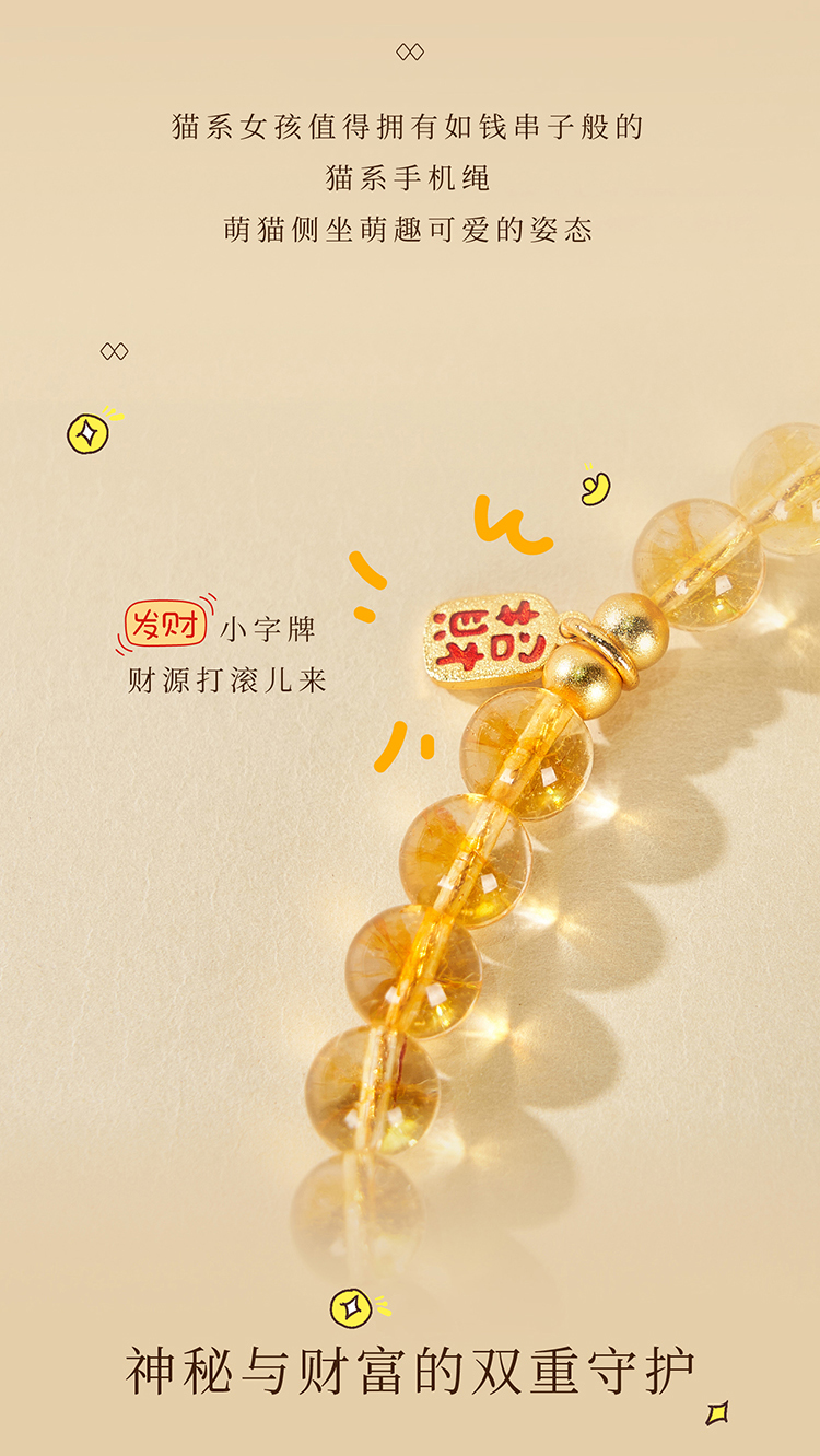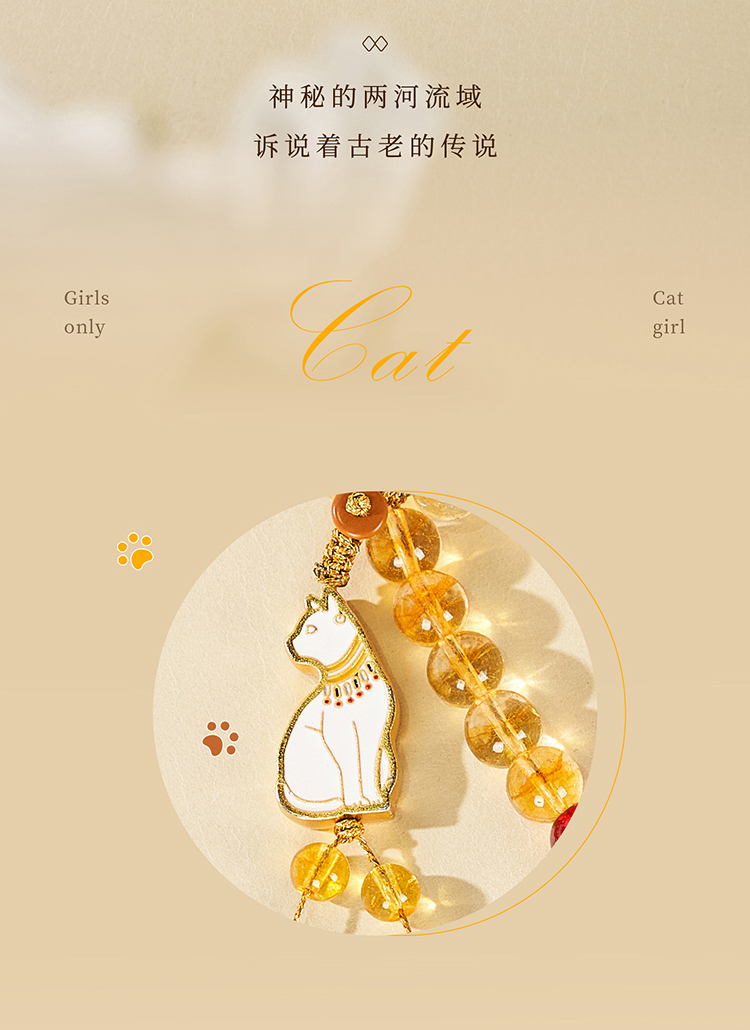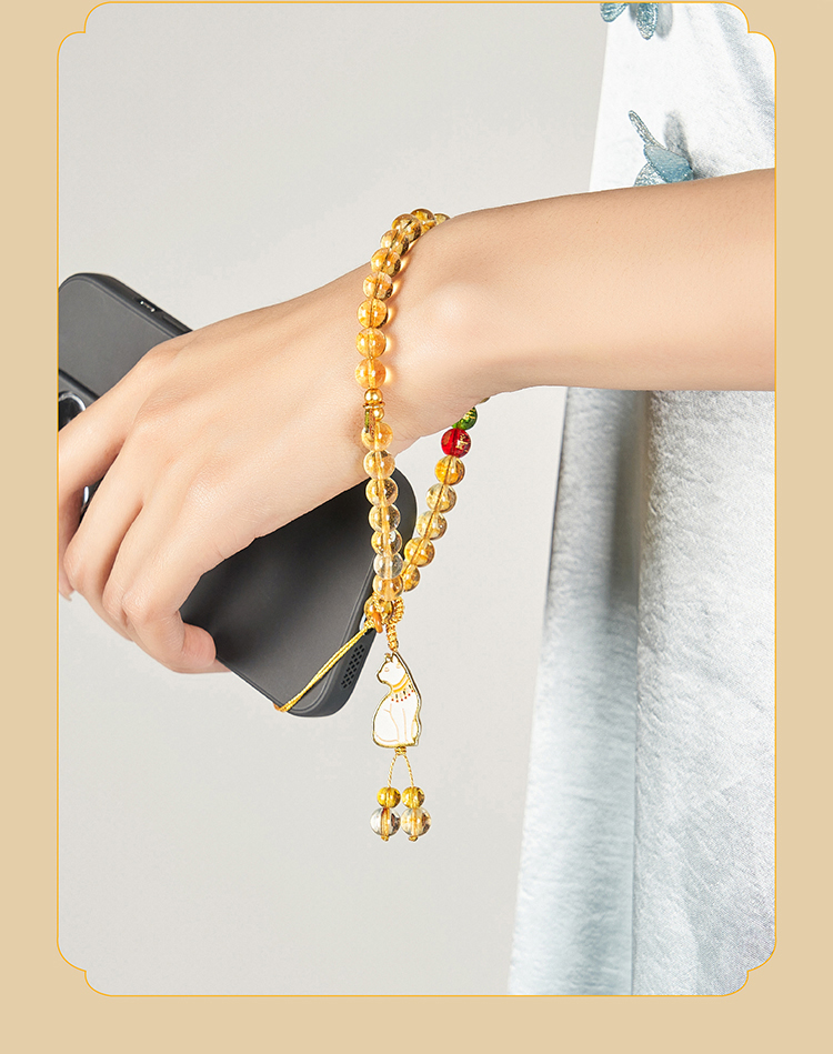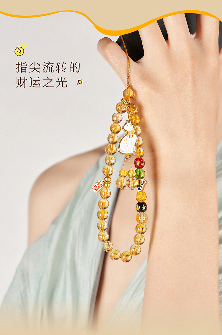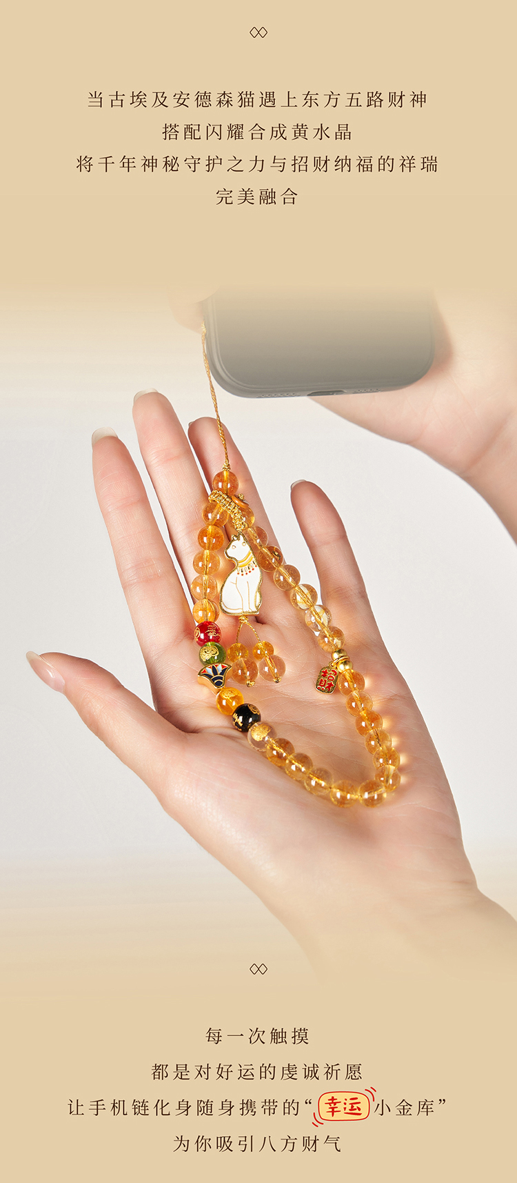 大英博物馆 盖亚·安德森猫系列 五路财神黄色水晶 手机链