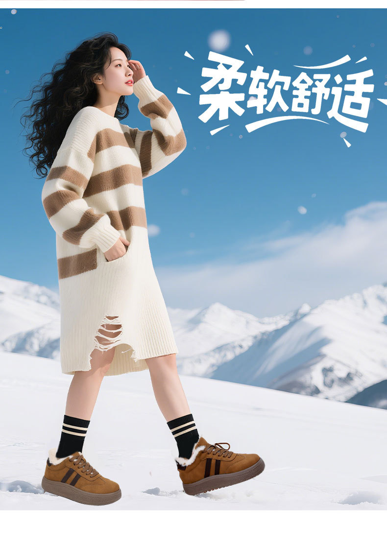 【加绒加厚棉鞋】保暖休闲板鞋厚底 棉鞋女冬季新款前系带德训鞋面包鞋