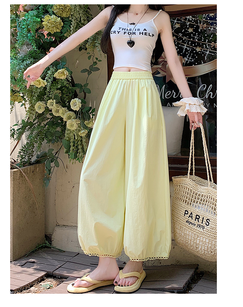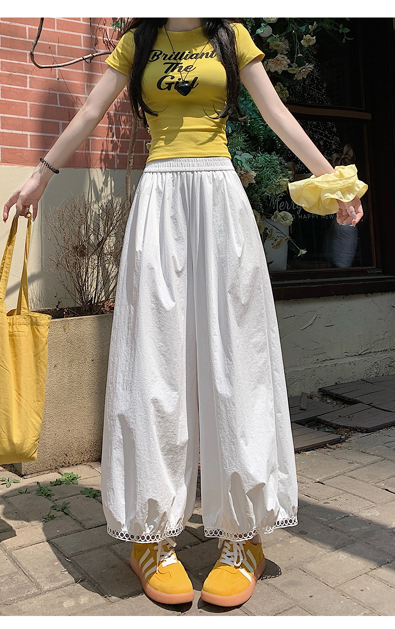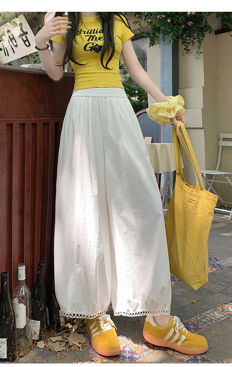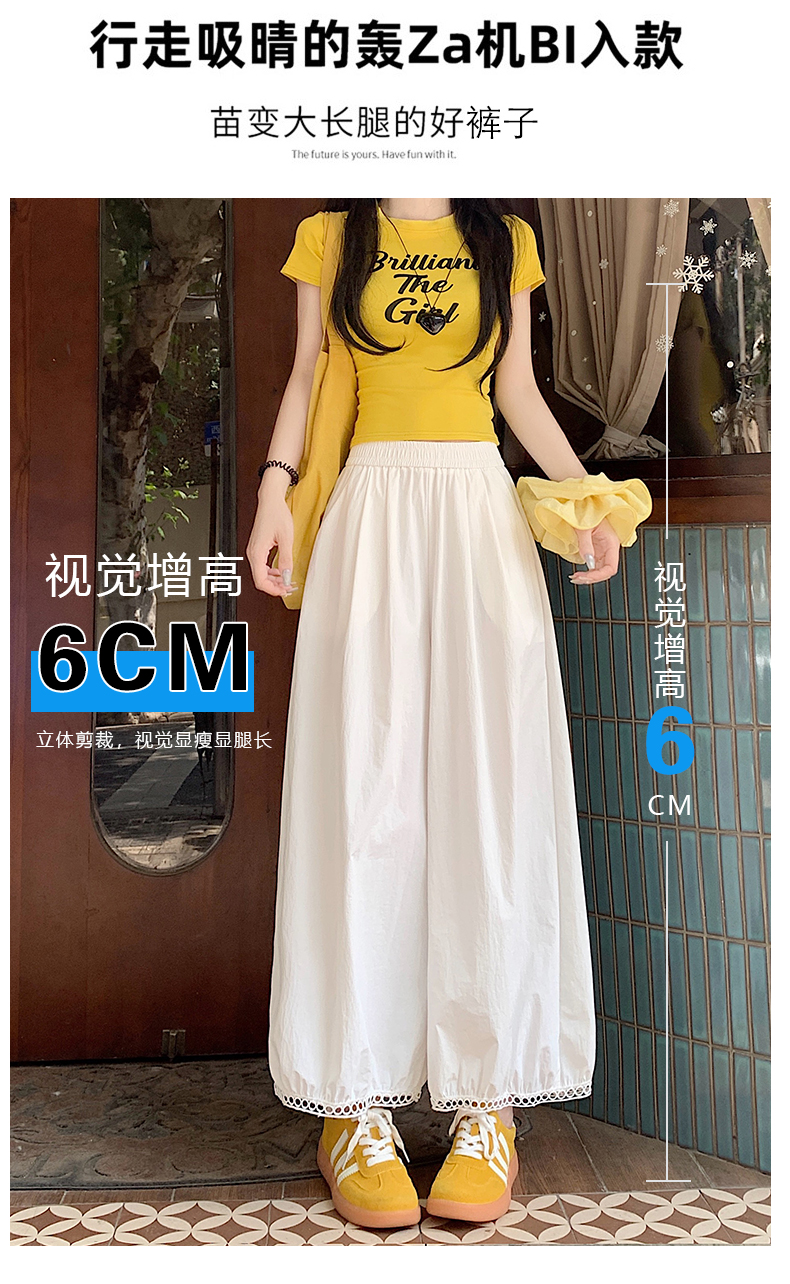 【2025夏季休闲蕾丝镂空花苞阔腿裤】夏季速干梧桐裤蕾丝边舒爽透气时尚款