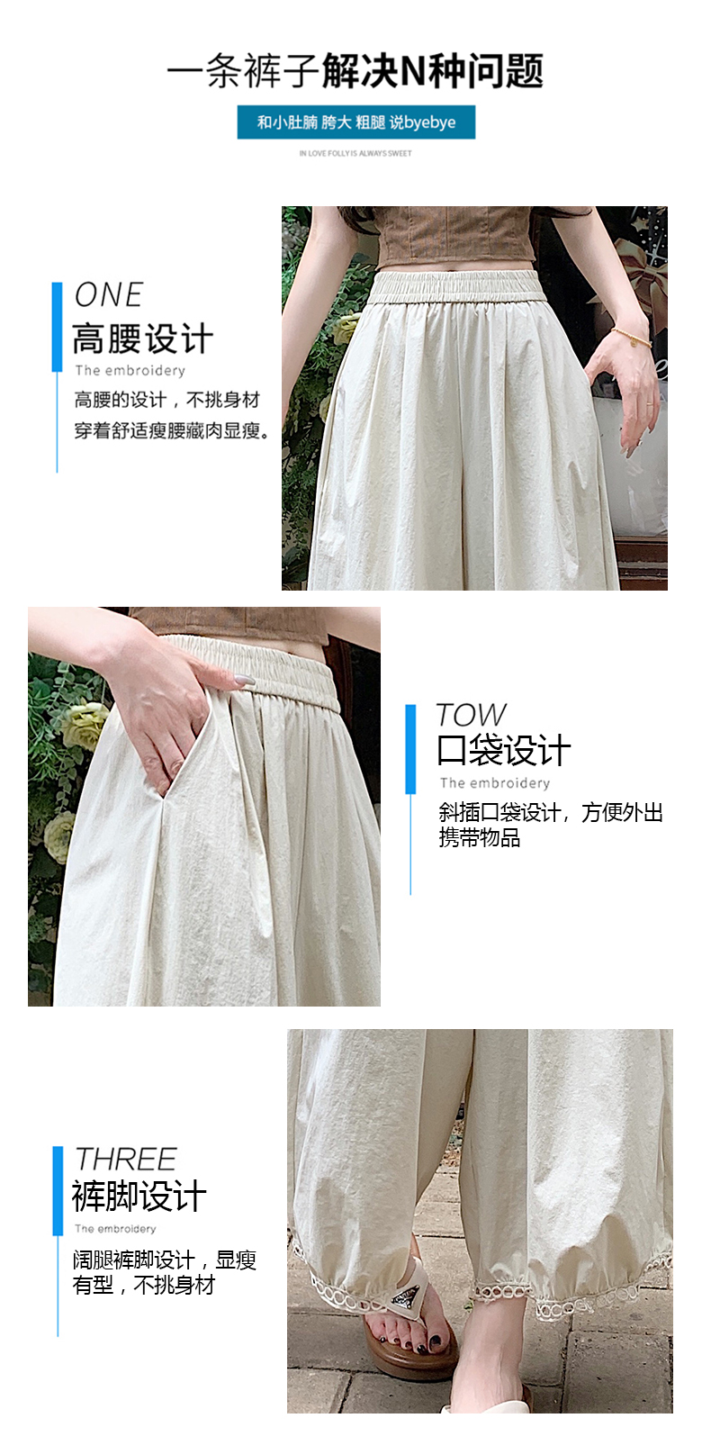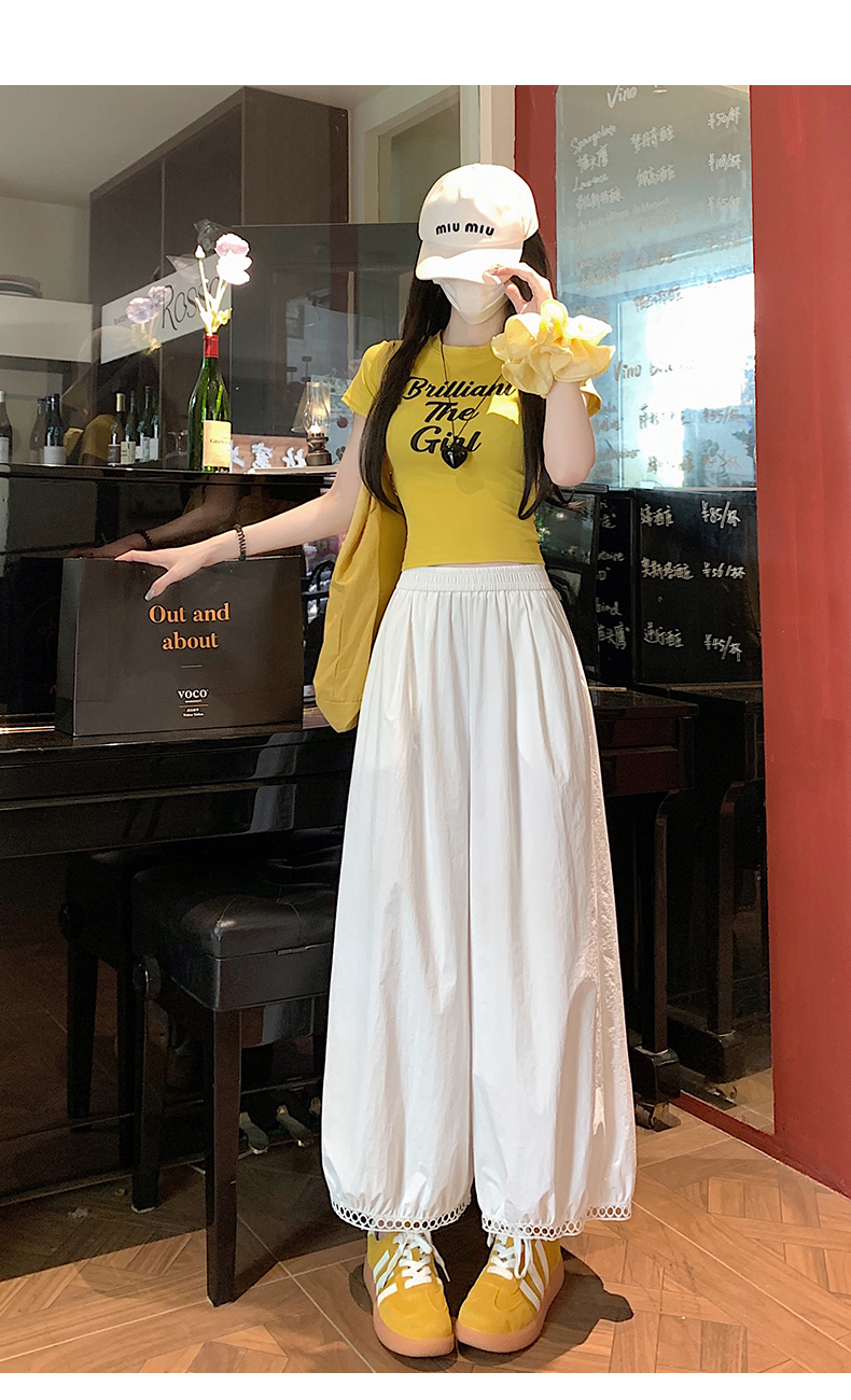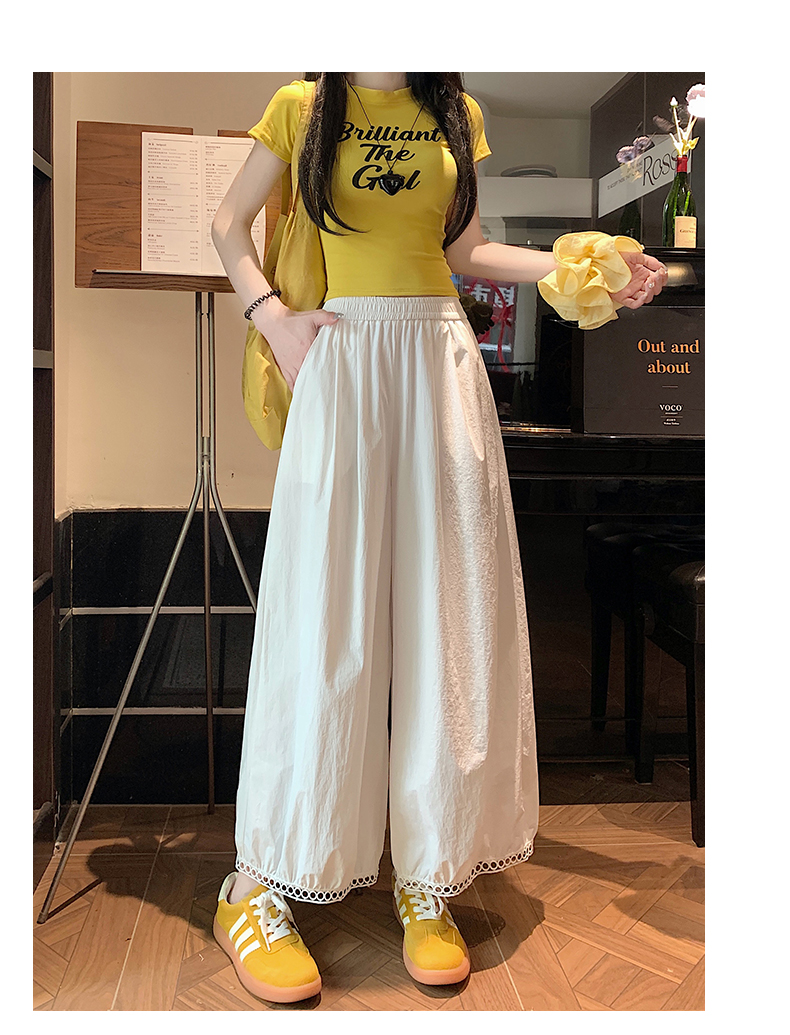【2025夏季休闲蕾丝镂空花苞阔腿裤】夏季速干梧桐裤蕾丝边舒爽透气时尚款