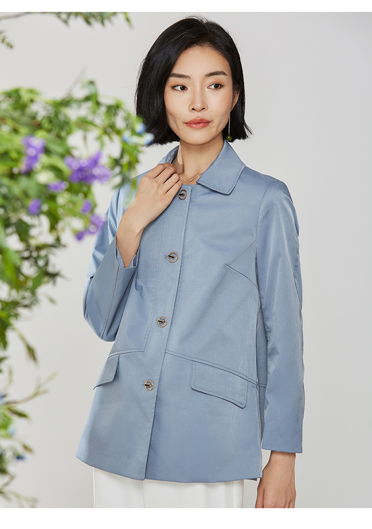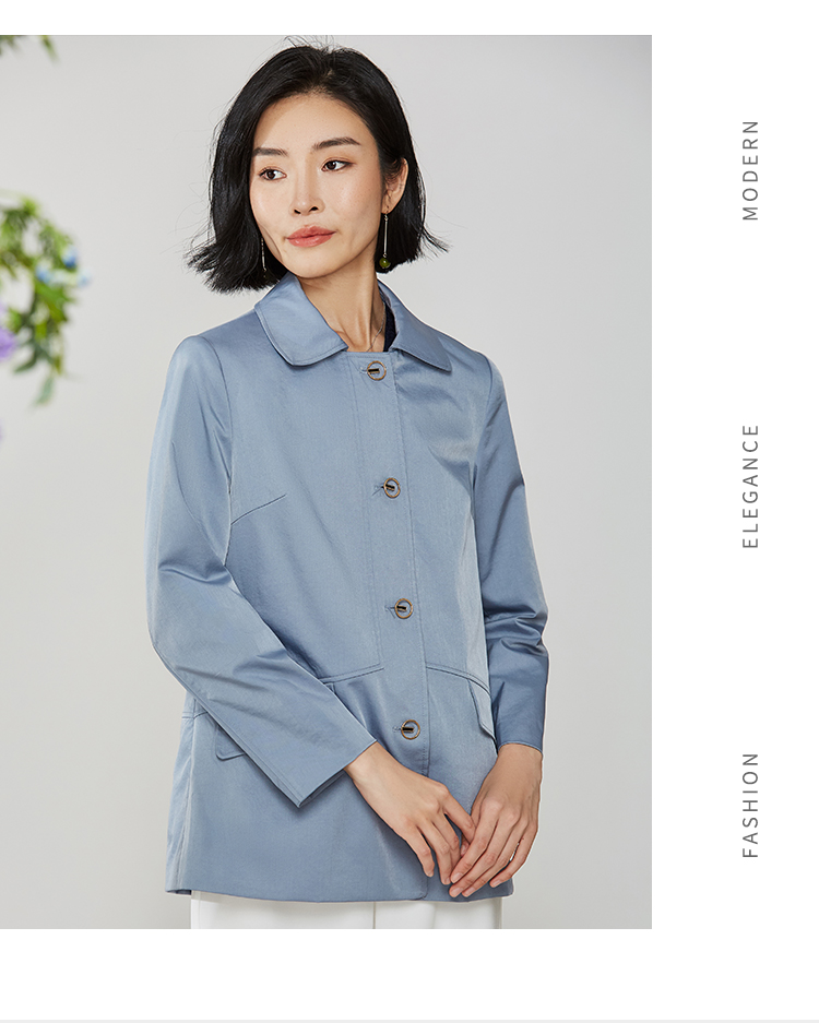 佐尔美新品春秋秋新款风衣女中长款气质薄款外套圆领中袖E61FZ34
