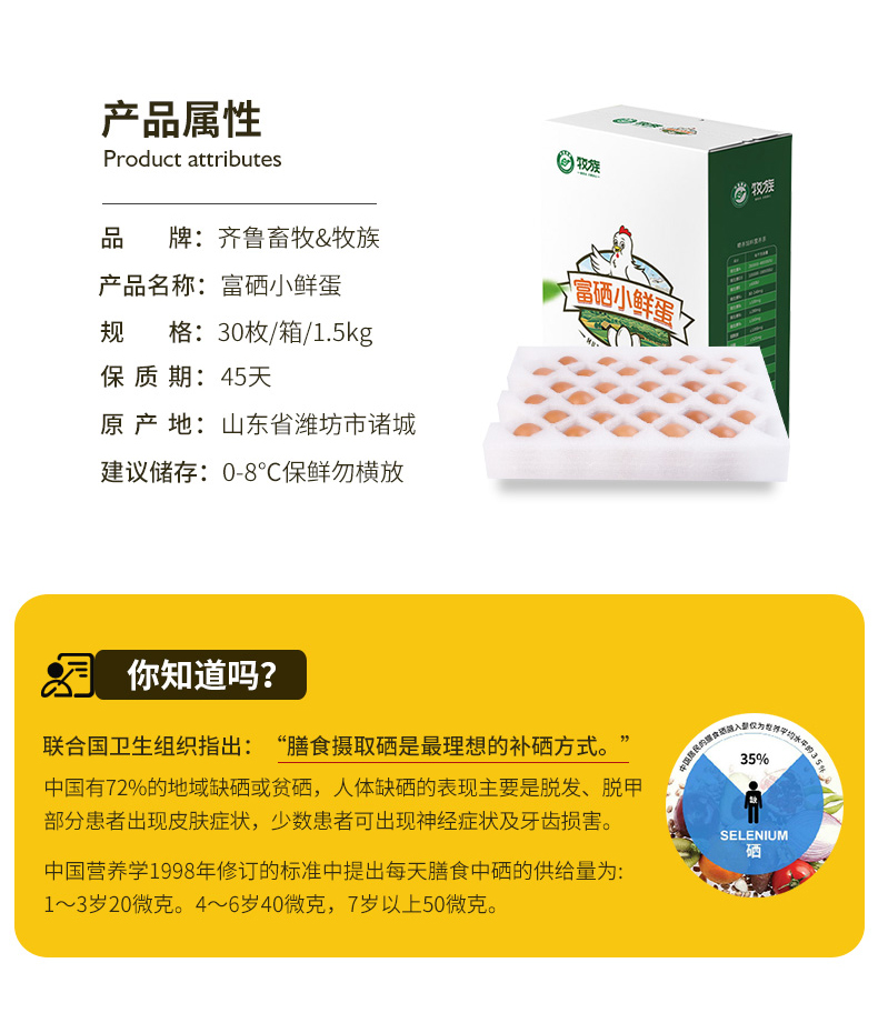 【产地直发包邮】牧族—富硒鲜鸡蛋30枚
