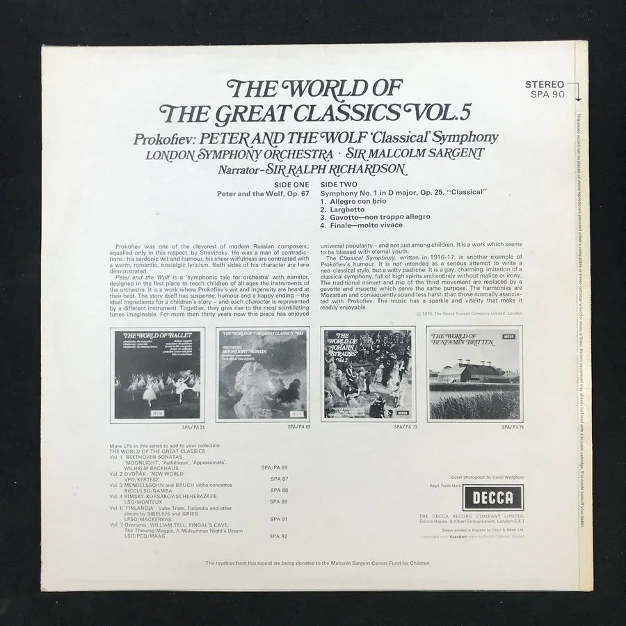 LP黑胶唱片 经典古典音乐第五辑 普罗科菲耶夫《彼得与狼》伦敦交响乐团 指挥家:萨金特爵士厂牌:Decca