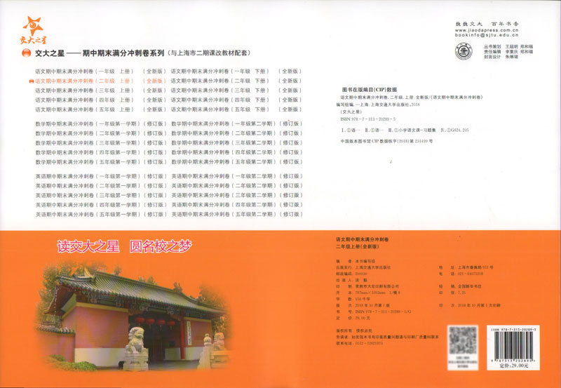交大之星 全新修订版 语文期中期末满分冲刺卷 二年级第一学期/2年级上册 上海小学教材教辅 同步辅导测试卷