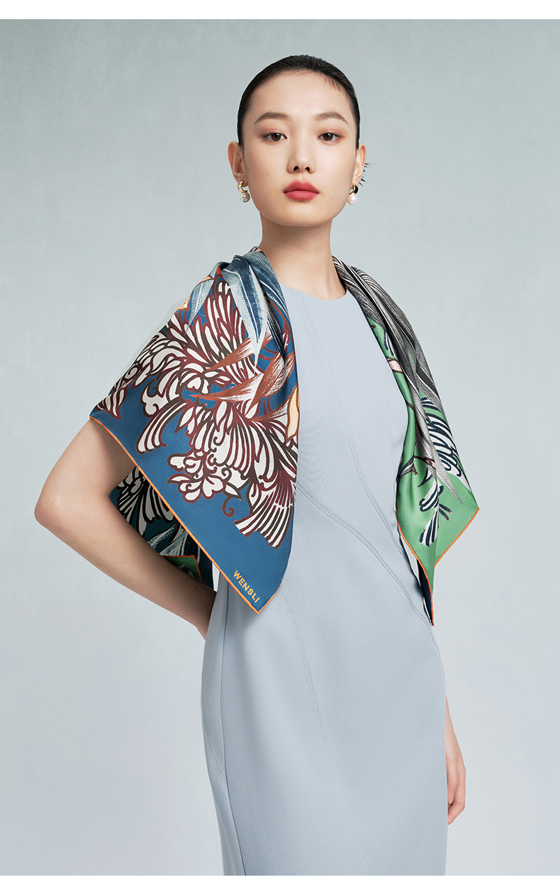 万事利“印象涂鸦”88厘米双面印花大方巾