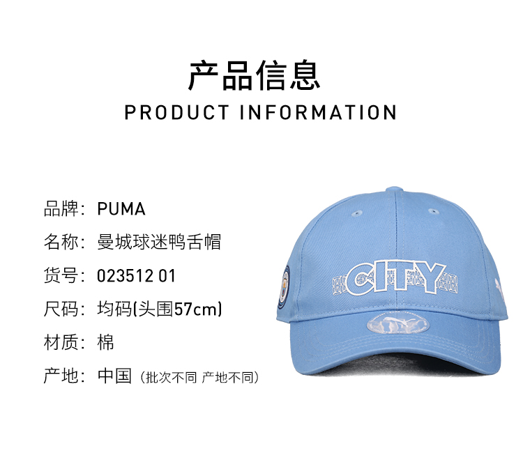 PUMA/彪马 曼城球迷款足球运动休闲百搭鸭舌帽02351201