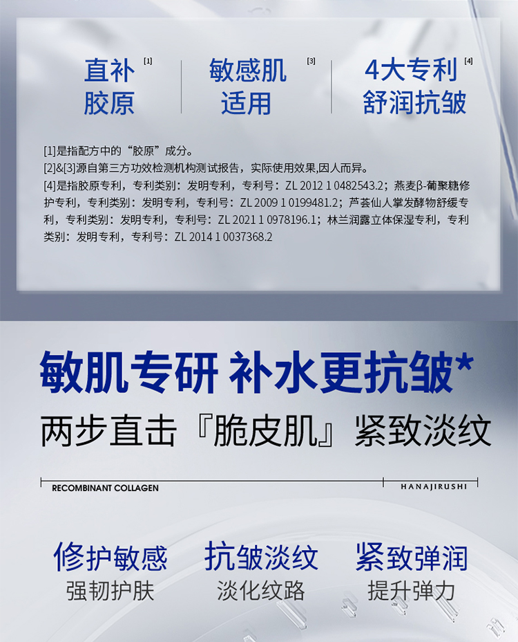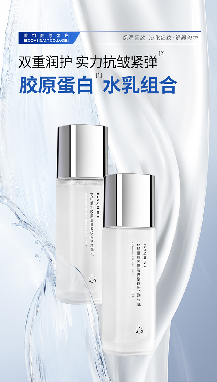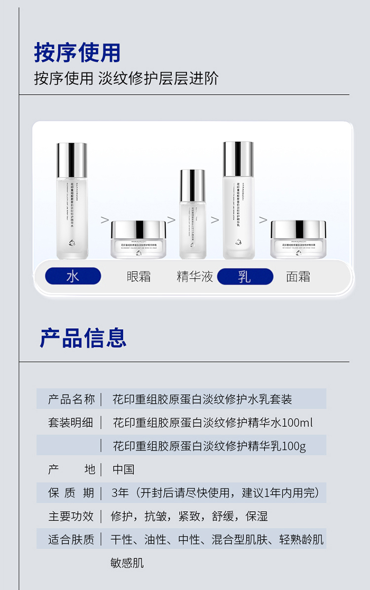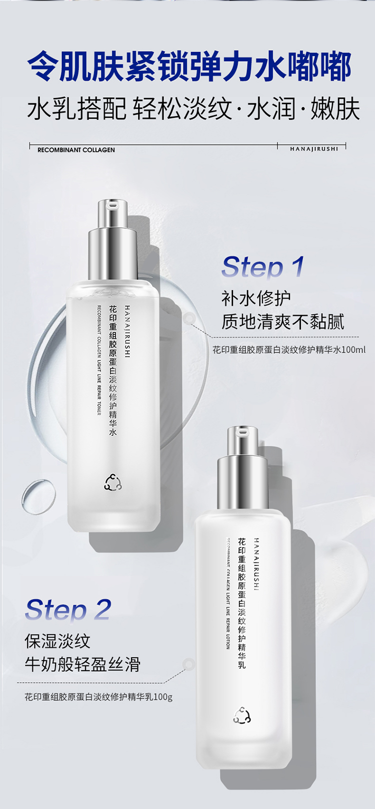 【限时折扣】花印重组胶原蛋白淡纹修护精华套装(水100ml+乳100g) 赠送化妆水40ml+面膜3片