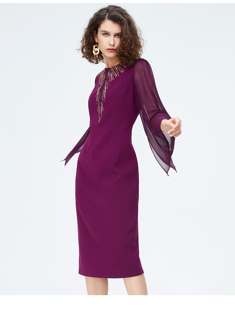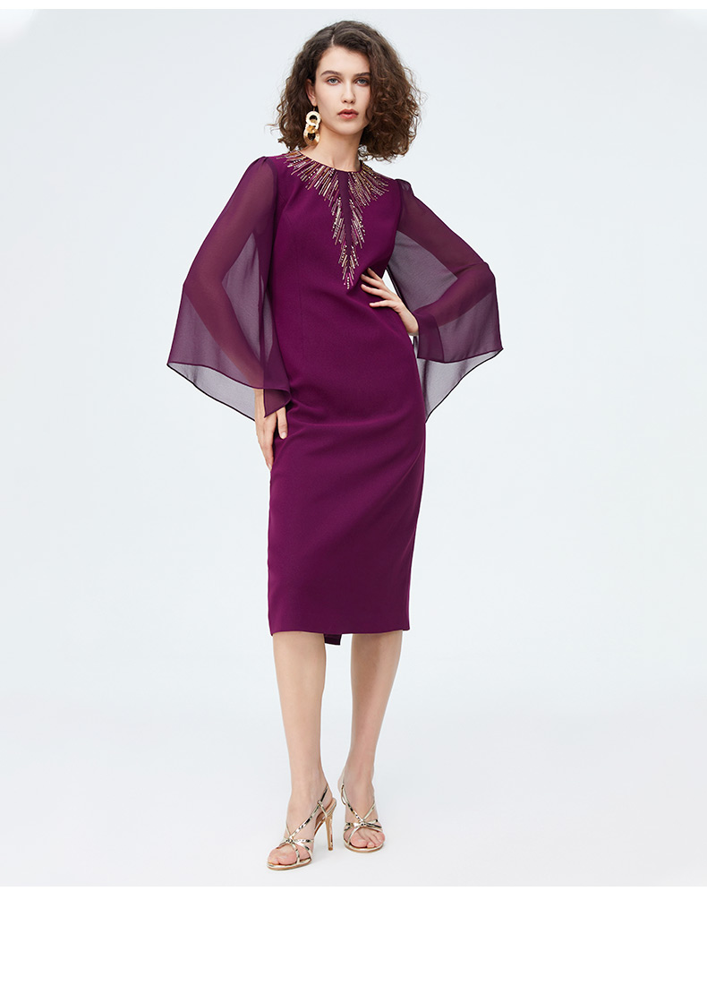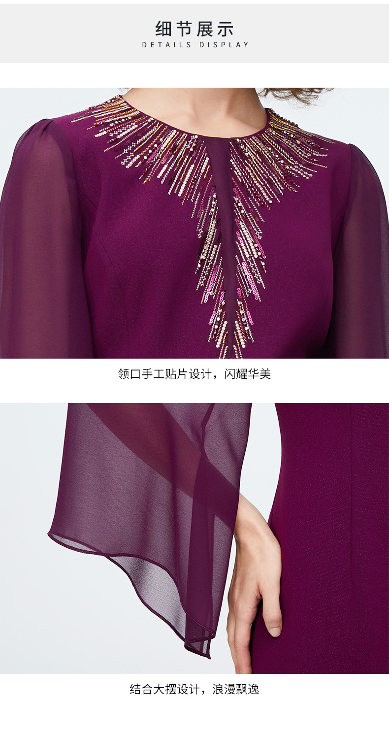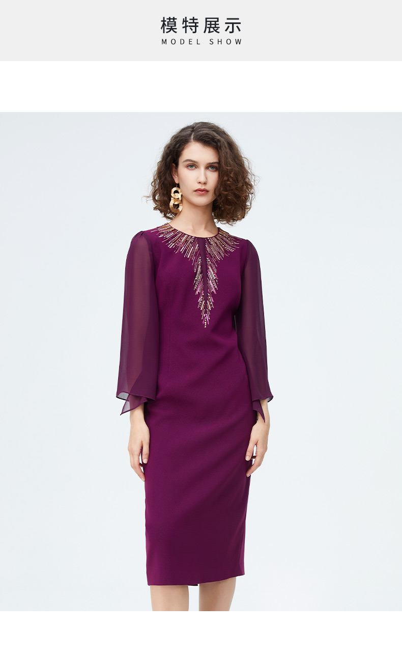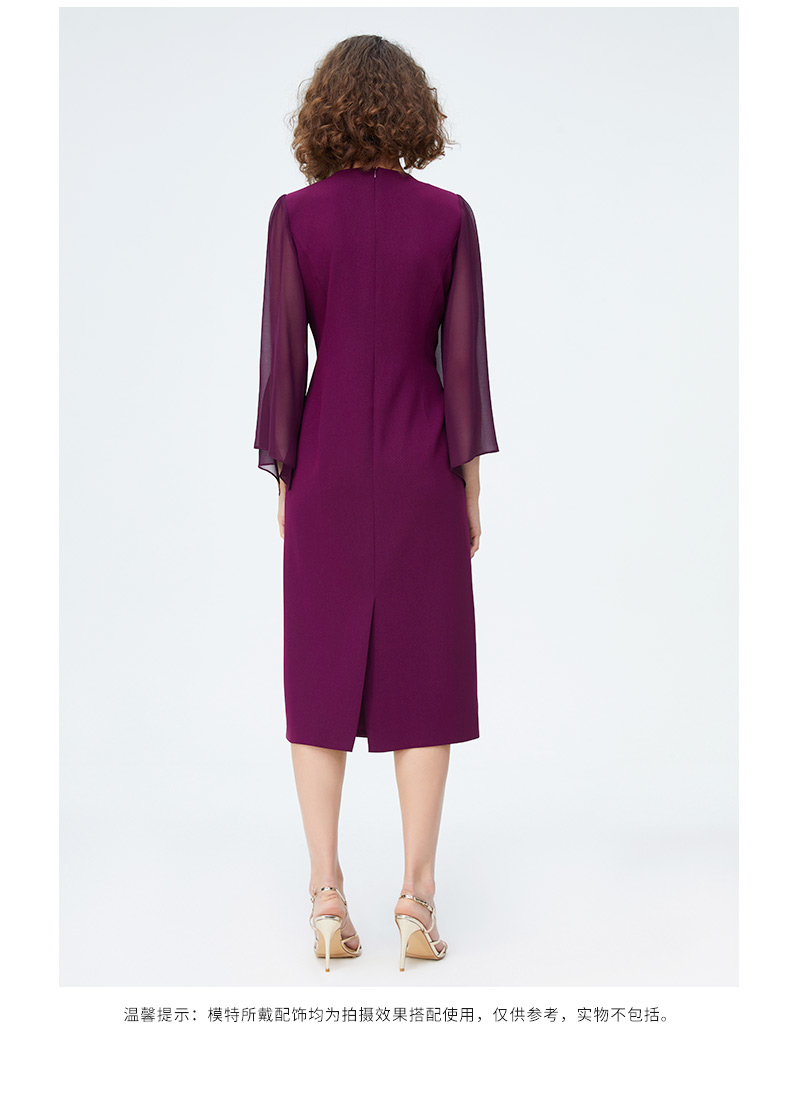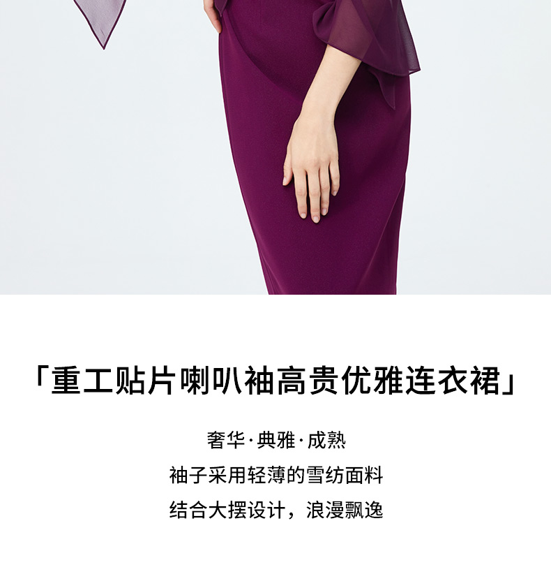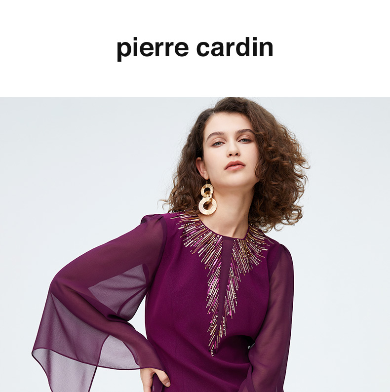 皮尔卡丹女装时尚重工飘纱通勤喇叭袖礼服连衣裙P4222E4078Z0