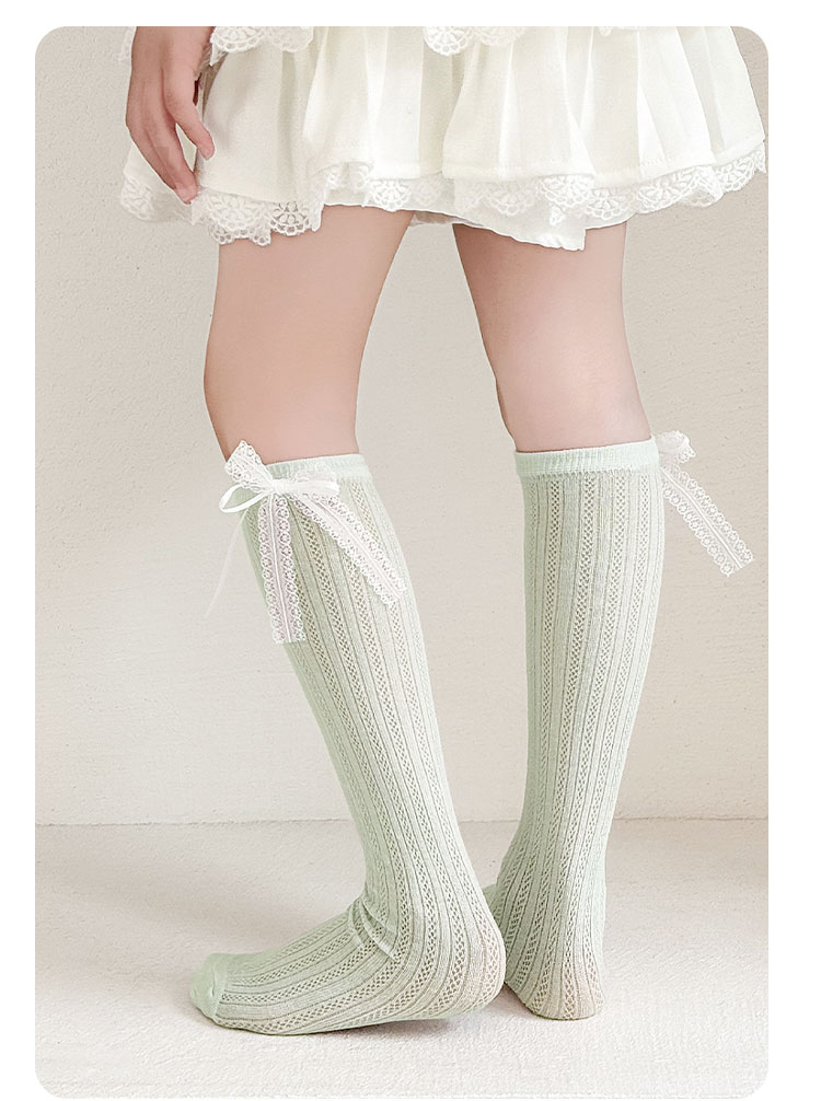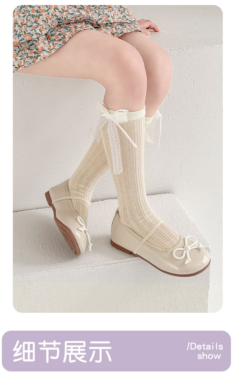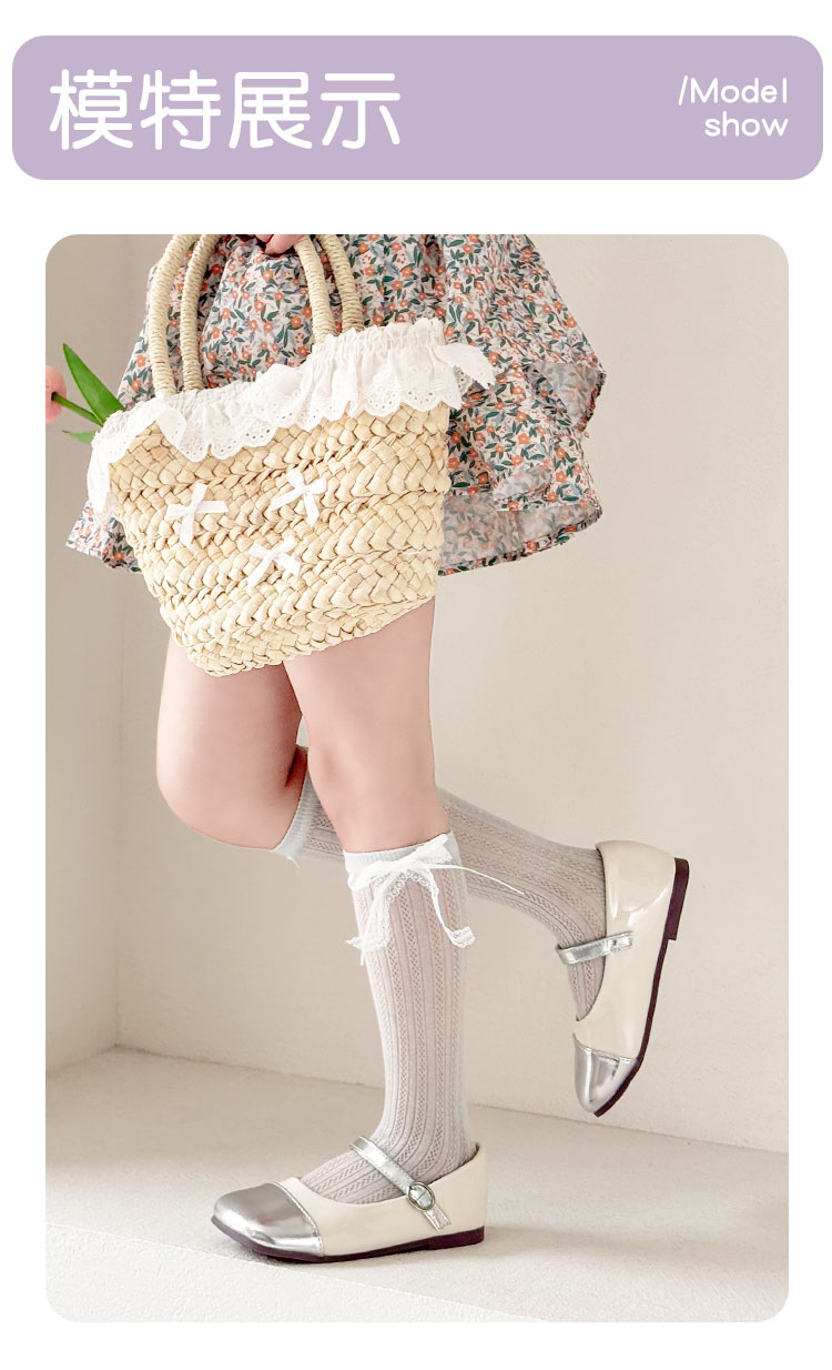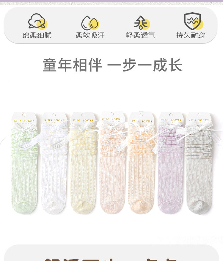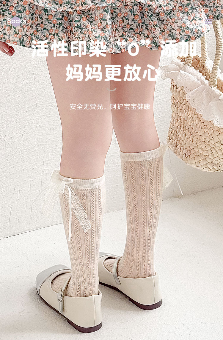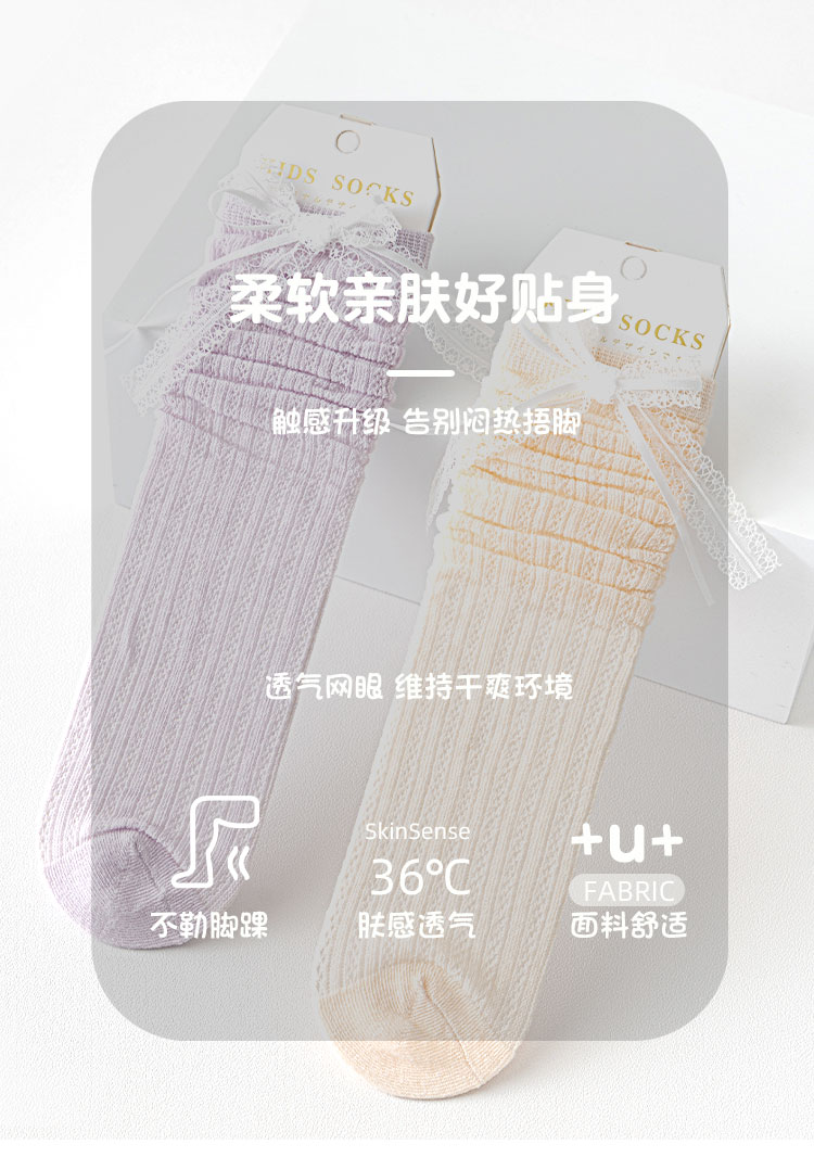 pureshare蓬纱馆 夏季女童袜子糖果色儿童薄款棉袜网面透气长筒袜