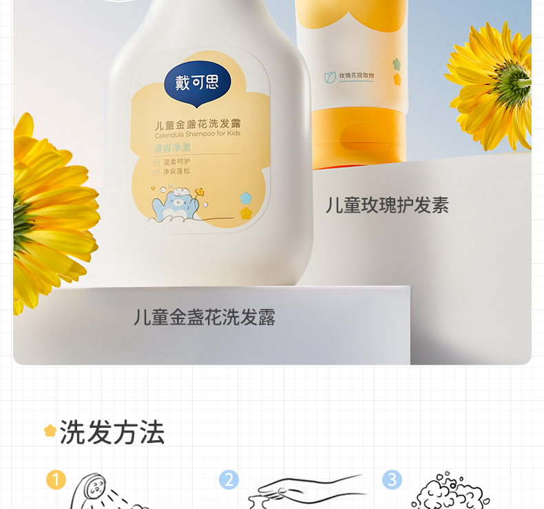 【囤货洗沐推荐】戴可思儿童金盏花洗发露600ml+沐浴露600ml赠洗发露80ml+沐浴露80ml+护发素20g