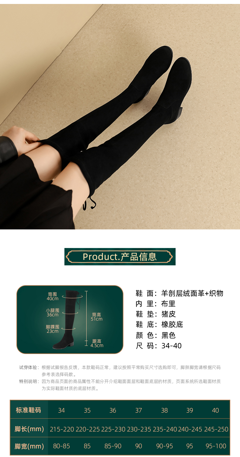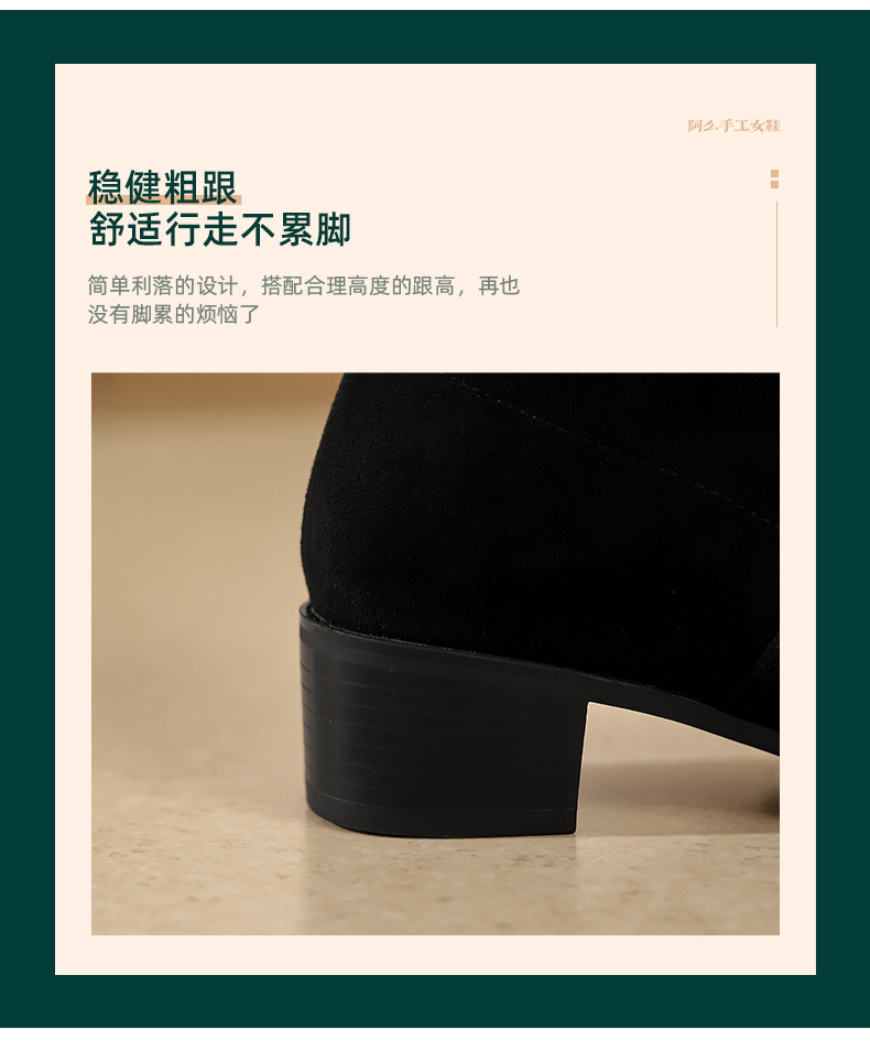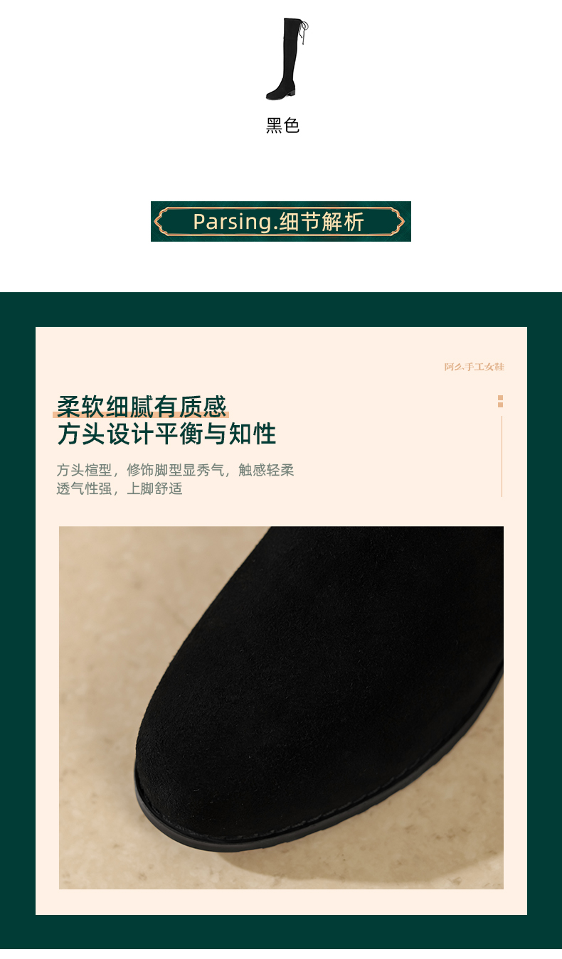 阿么手工女鞋真皮过膝长靴黑色显瘦粗跟4.5CM百搭弹力靴秋冬新款