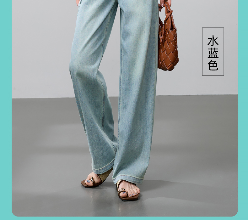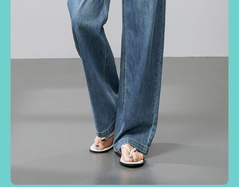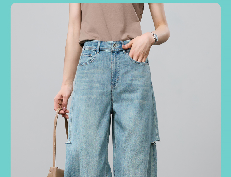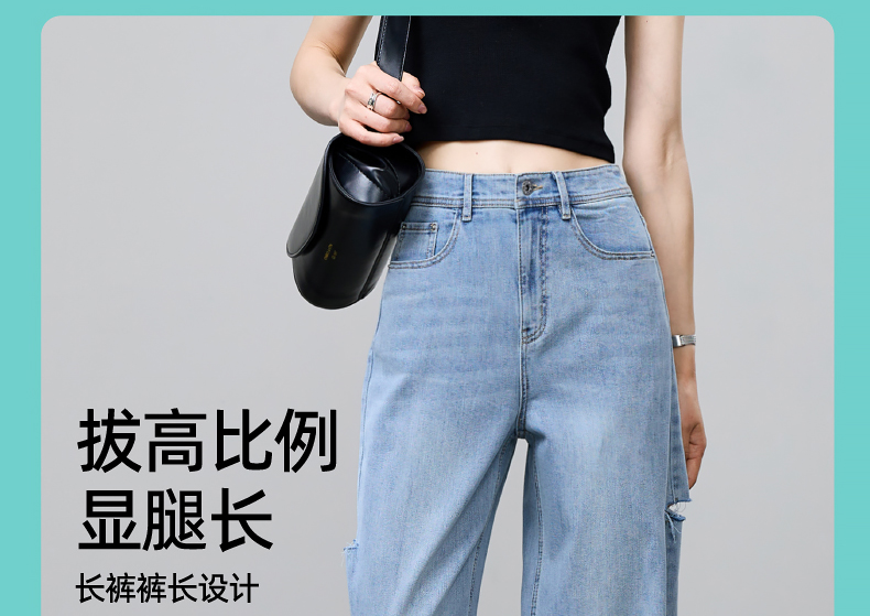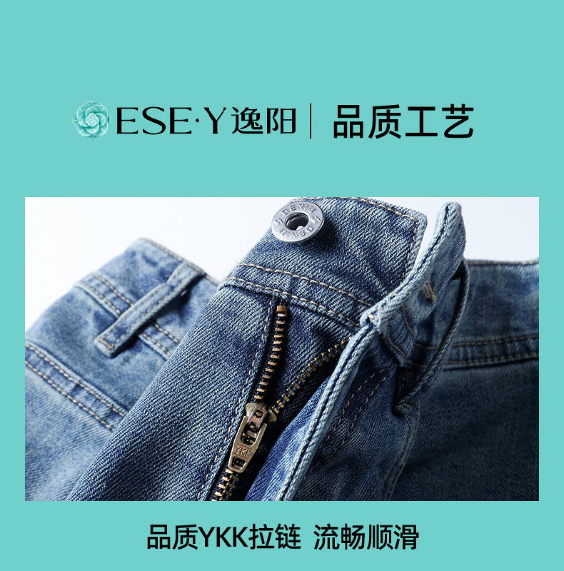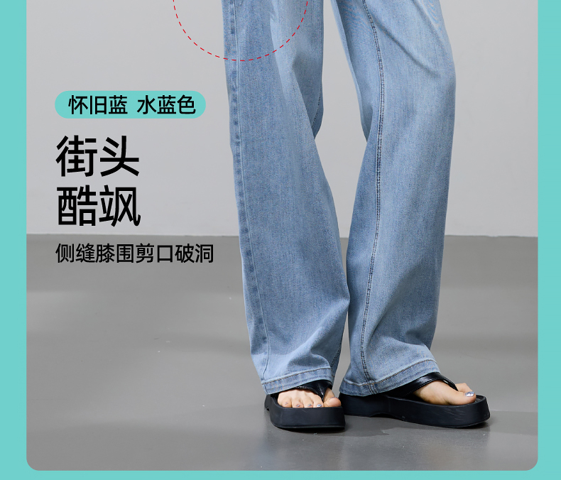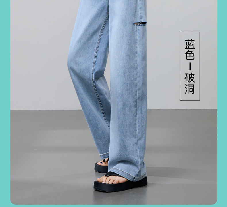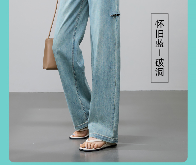 【立裁直筒修容裤】逸阳夏季薄款显瘦阔腿拖地破洞牛仔裤子1038