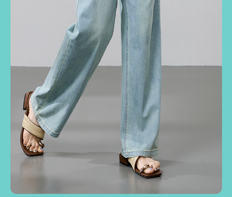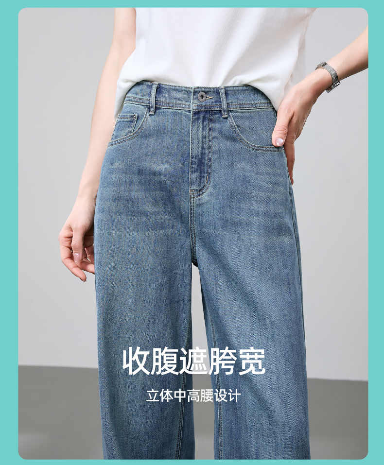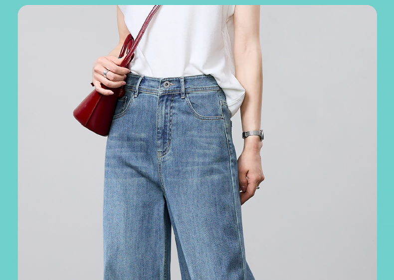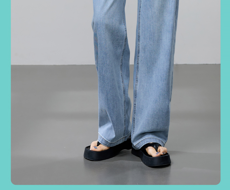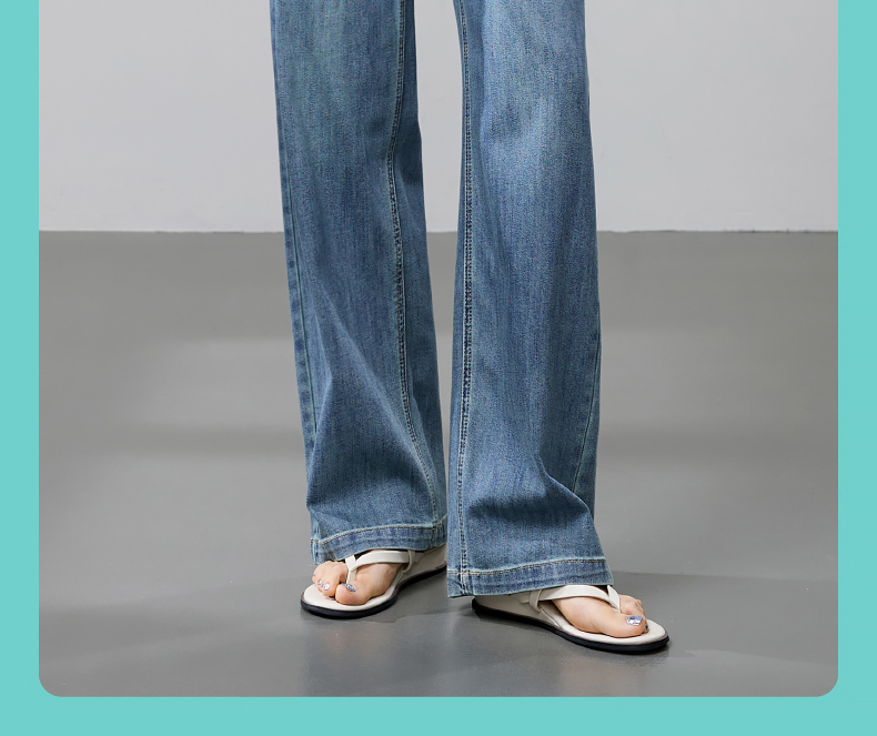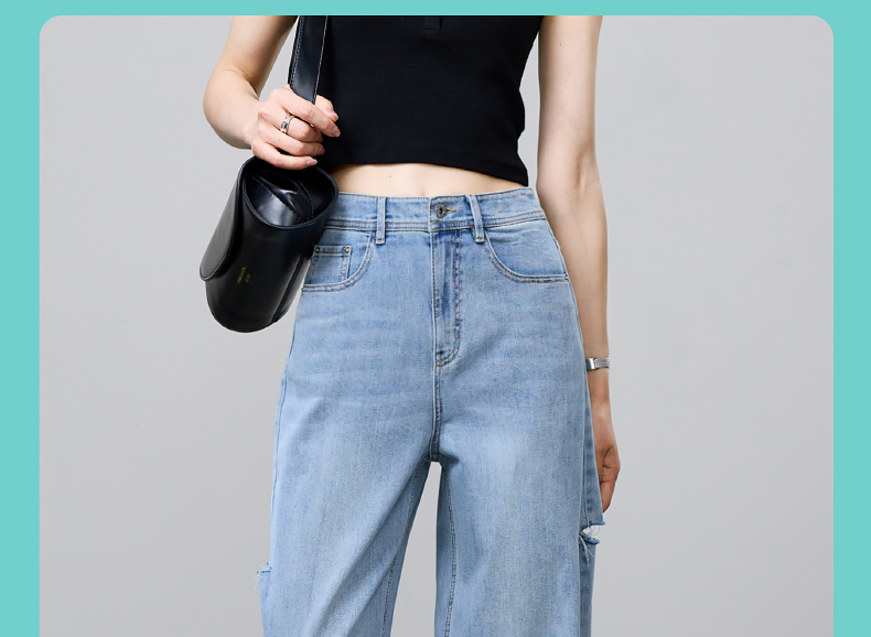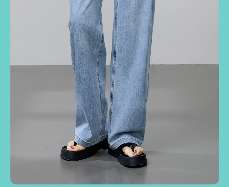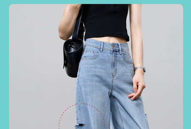 【立裁直筒修容裤】逸阳夏季薄款显瘦阔腿拖地破洞牛仔裤子1038