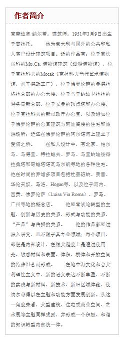 40 年来精益求精的从业历程,使克劳迪奥纳尔蒂的作品遍布世界各地,无论是他设计的位于时尚之都的门店,还是地处中东的私人豪宅,甚至市中心的办公大楼或购物中心都流露出浓郁的地中海气质,以及意大利设计特有的艺术气息。 本书即是对设计大师纳尔蒂的经典作品的一次完整的回顾,也是对他所代表的意大利风格的深入的探索和解读。 |