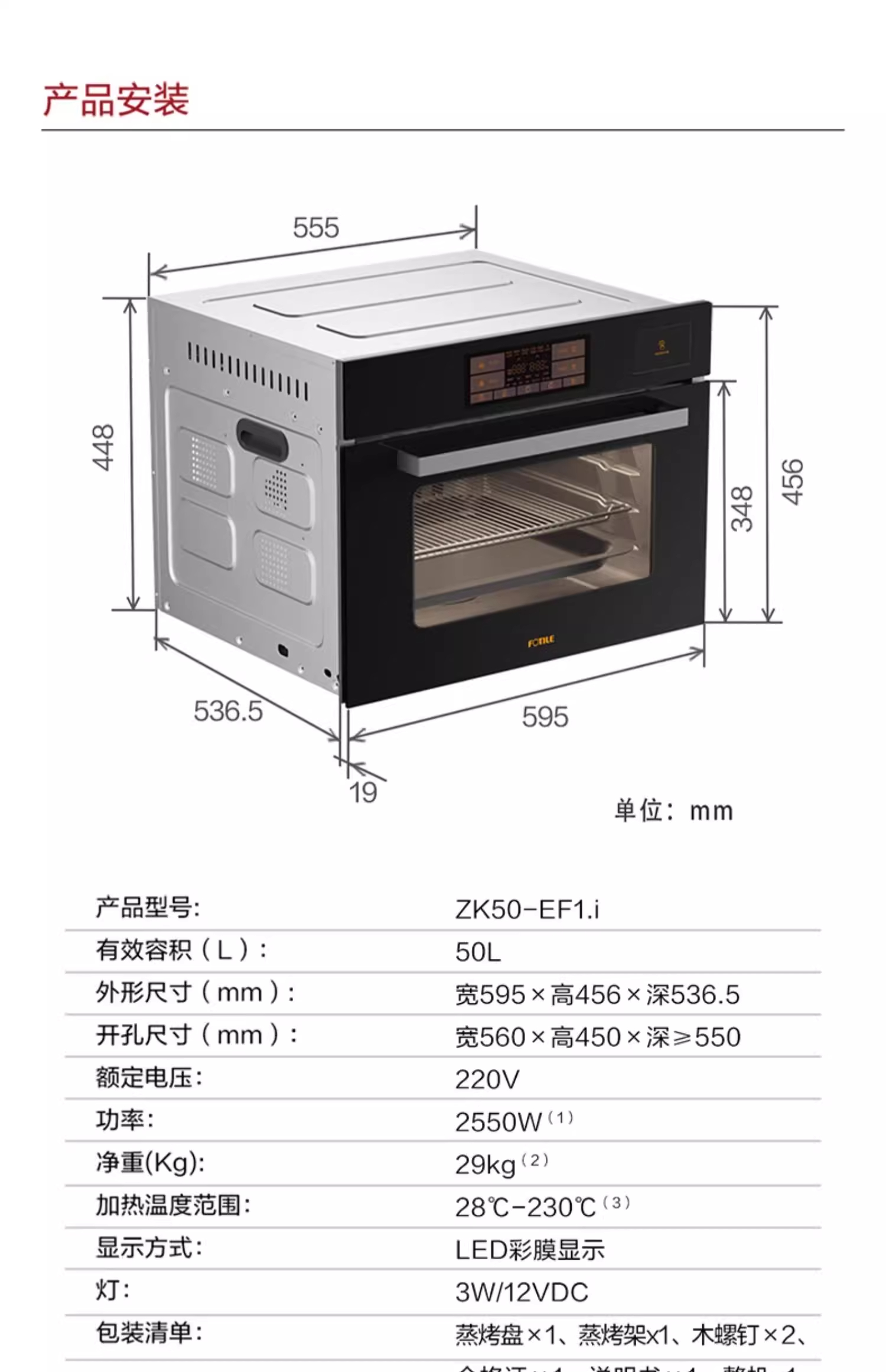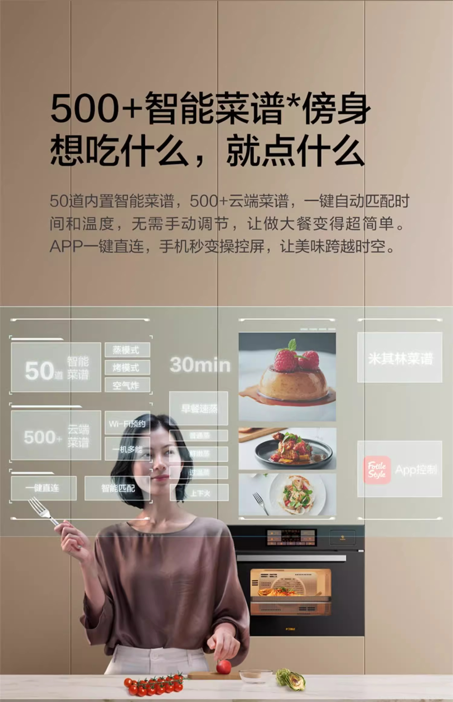 方太EF1.i智能彩屏蒸烤烘炸一体机多功能嵌入式电蒸烤箱家用官方