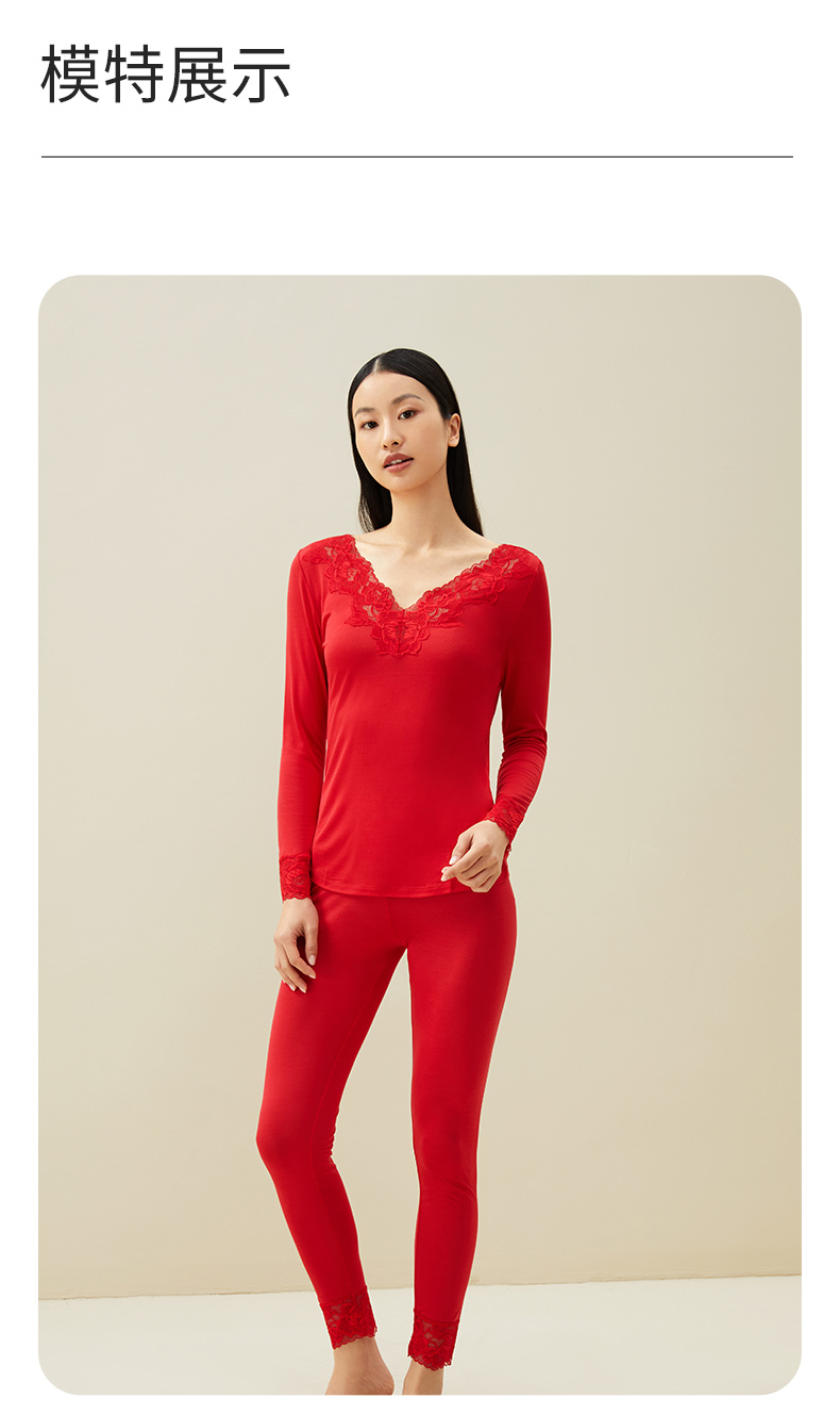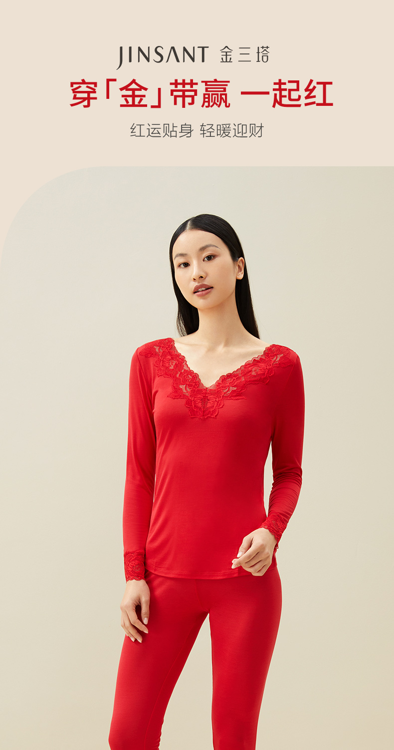 金三塔 女绢丝蕾丝内衣套袜子新年本命年红色礼盒装