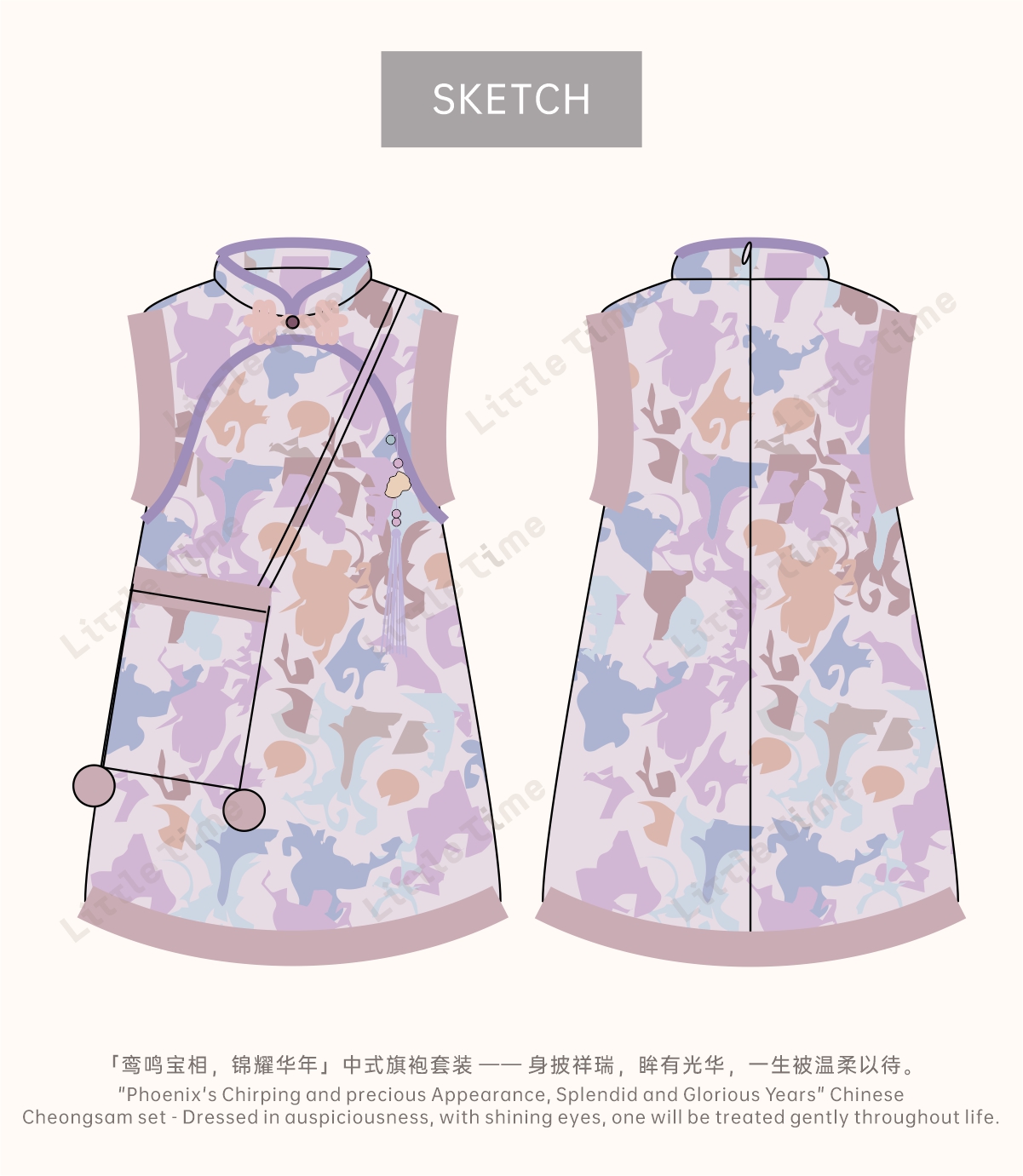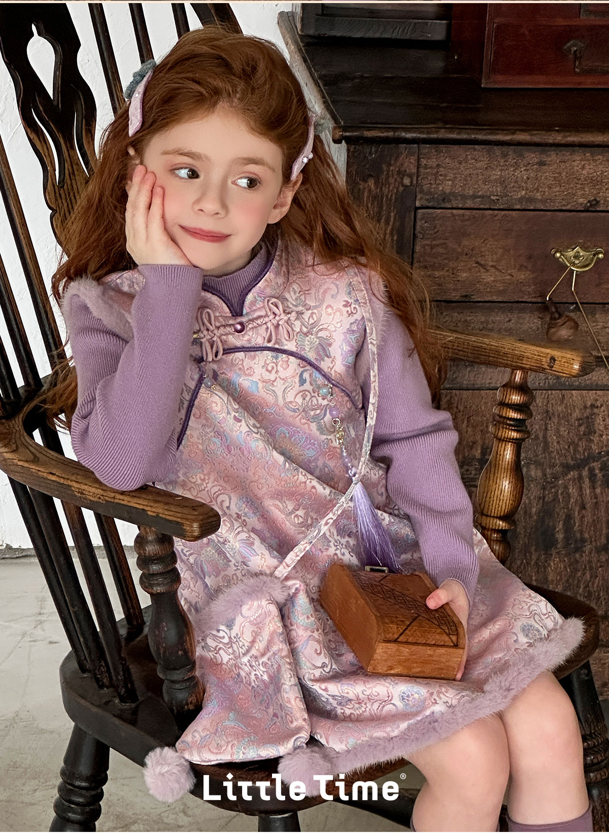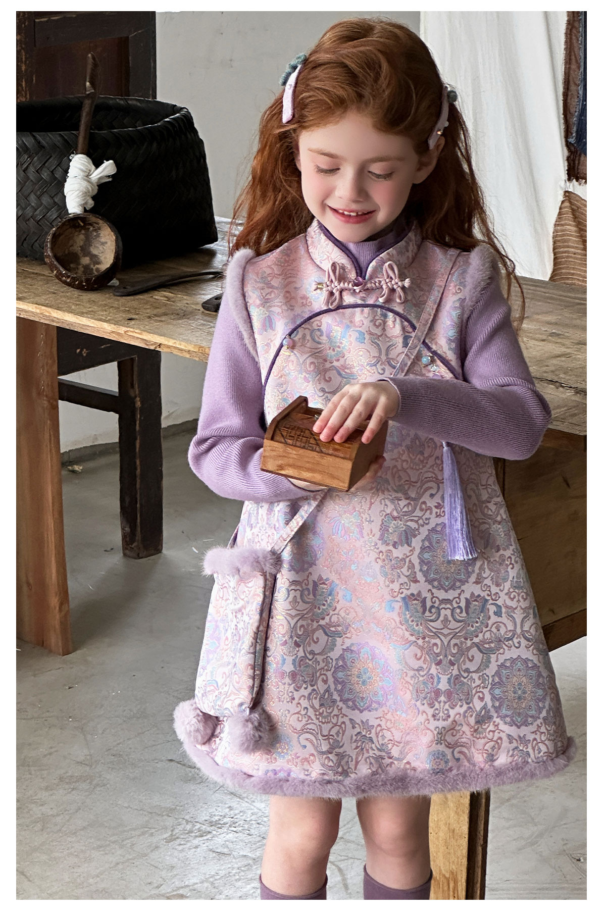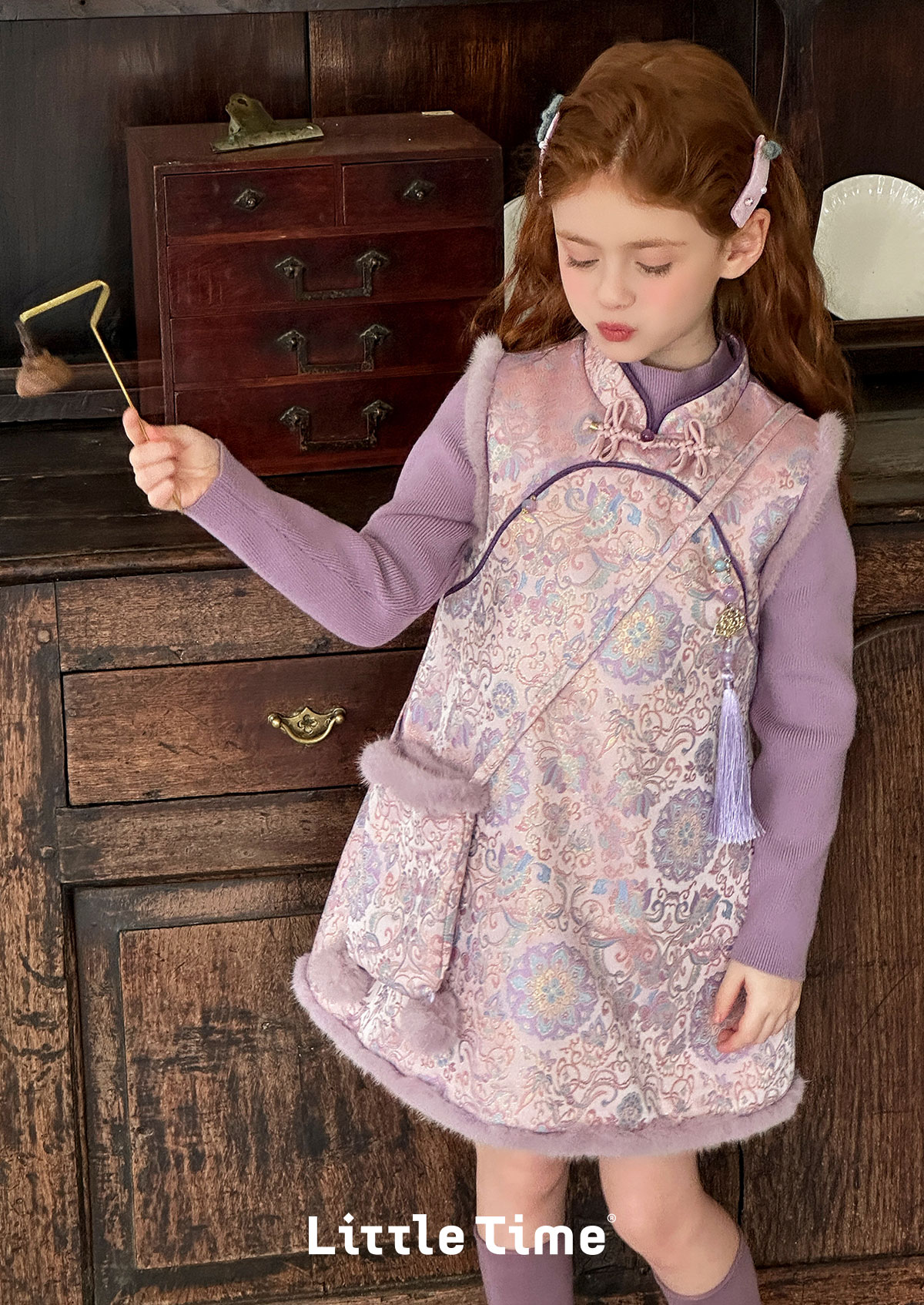 littletime女童旗袍2025新款加绒背心裙套装秋冬女国风盘扣刺绣