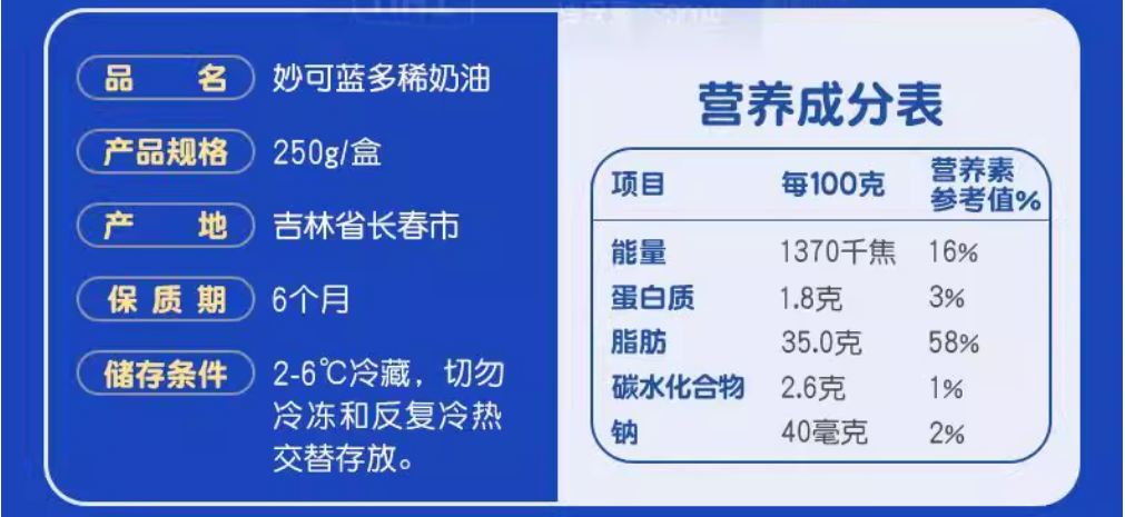 250g 妙可蓝多稀奶油 动物性淡奶油 小包装家用 蛋糕蛋挞慕斯雪媚娘奶油