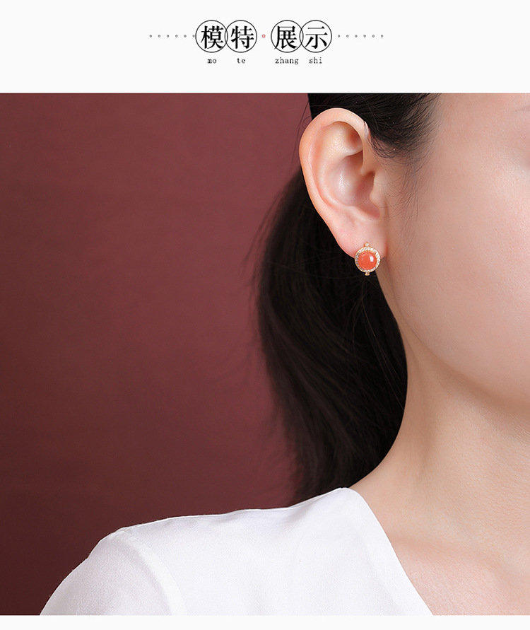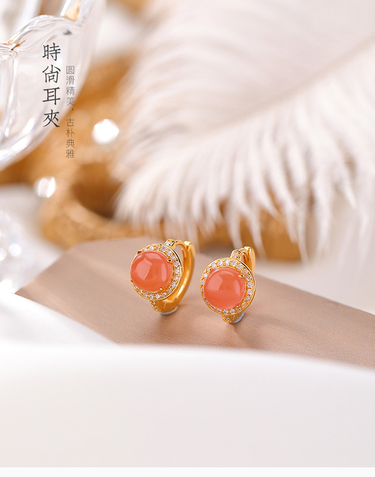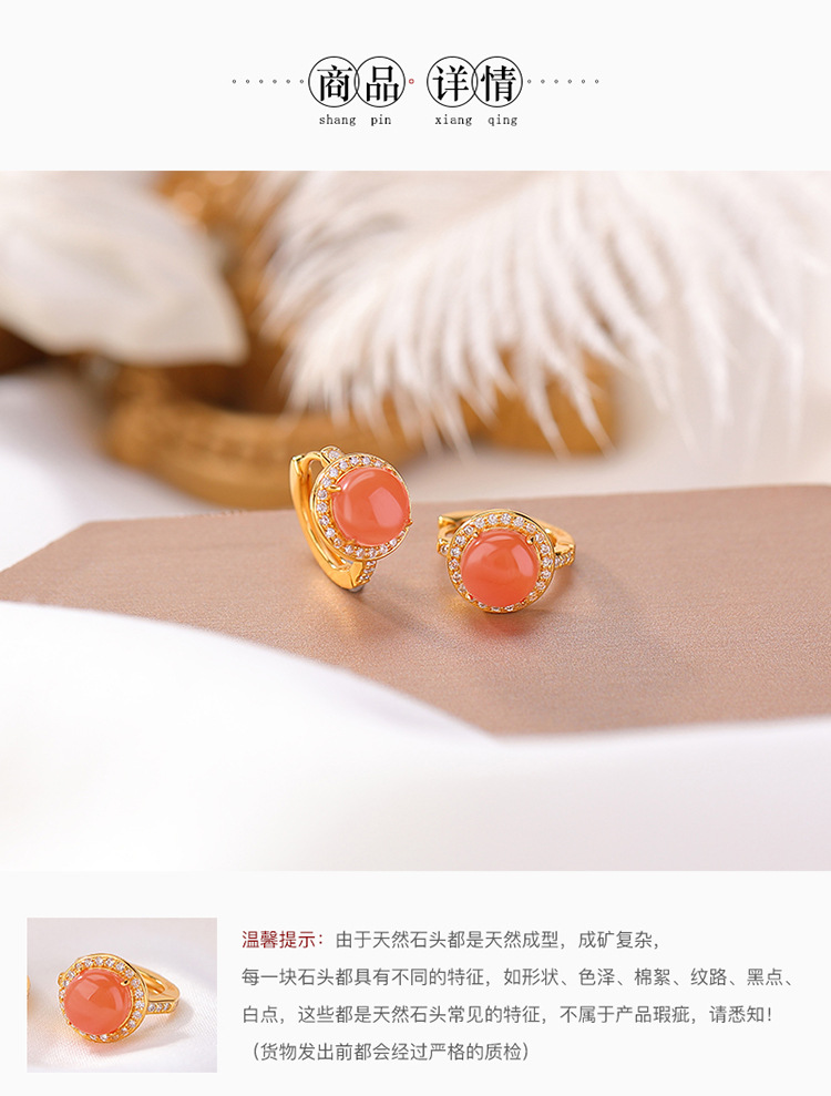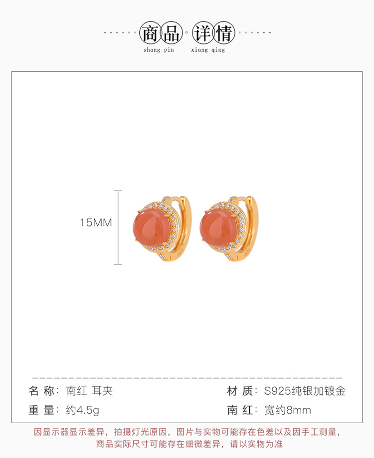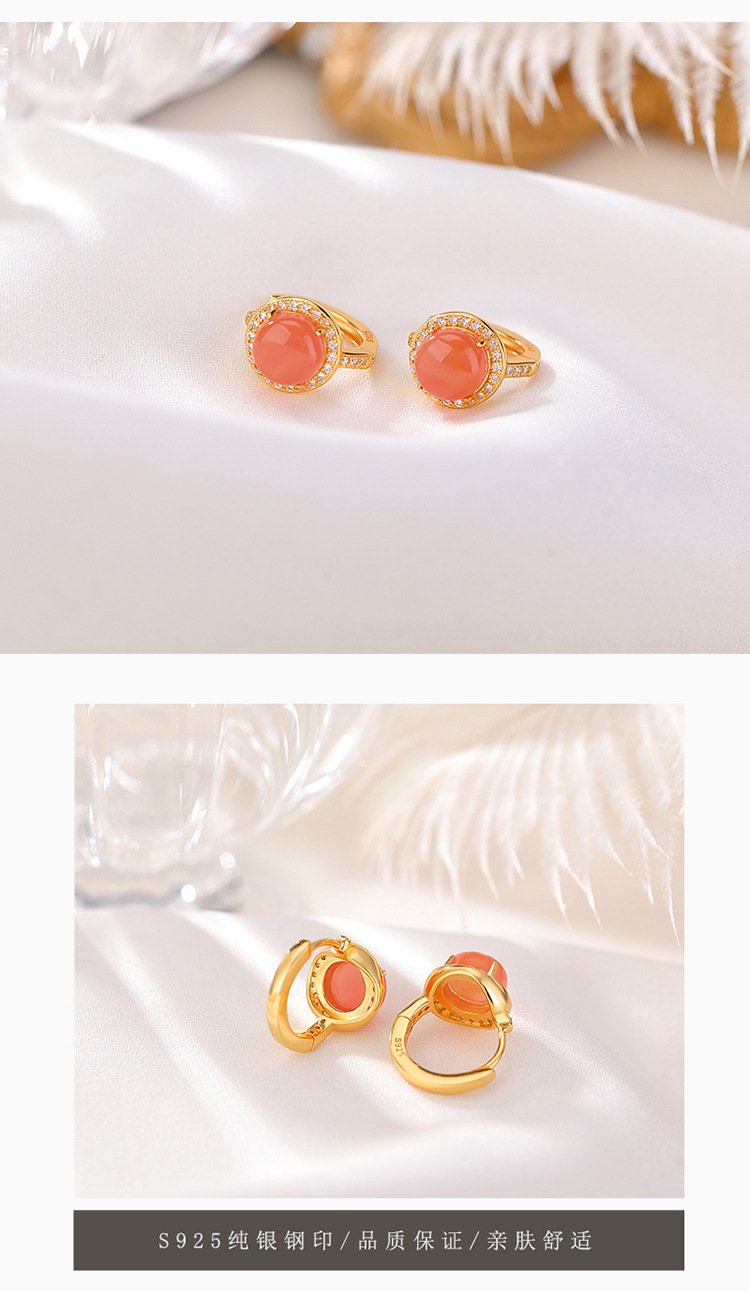 【凝晴】S925银镀金水红圆形几何耳饰【CW-EJ00586】