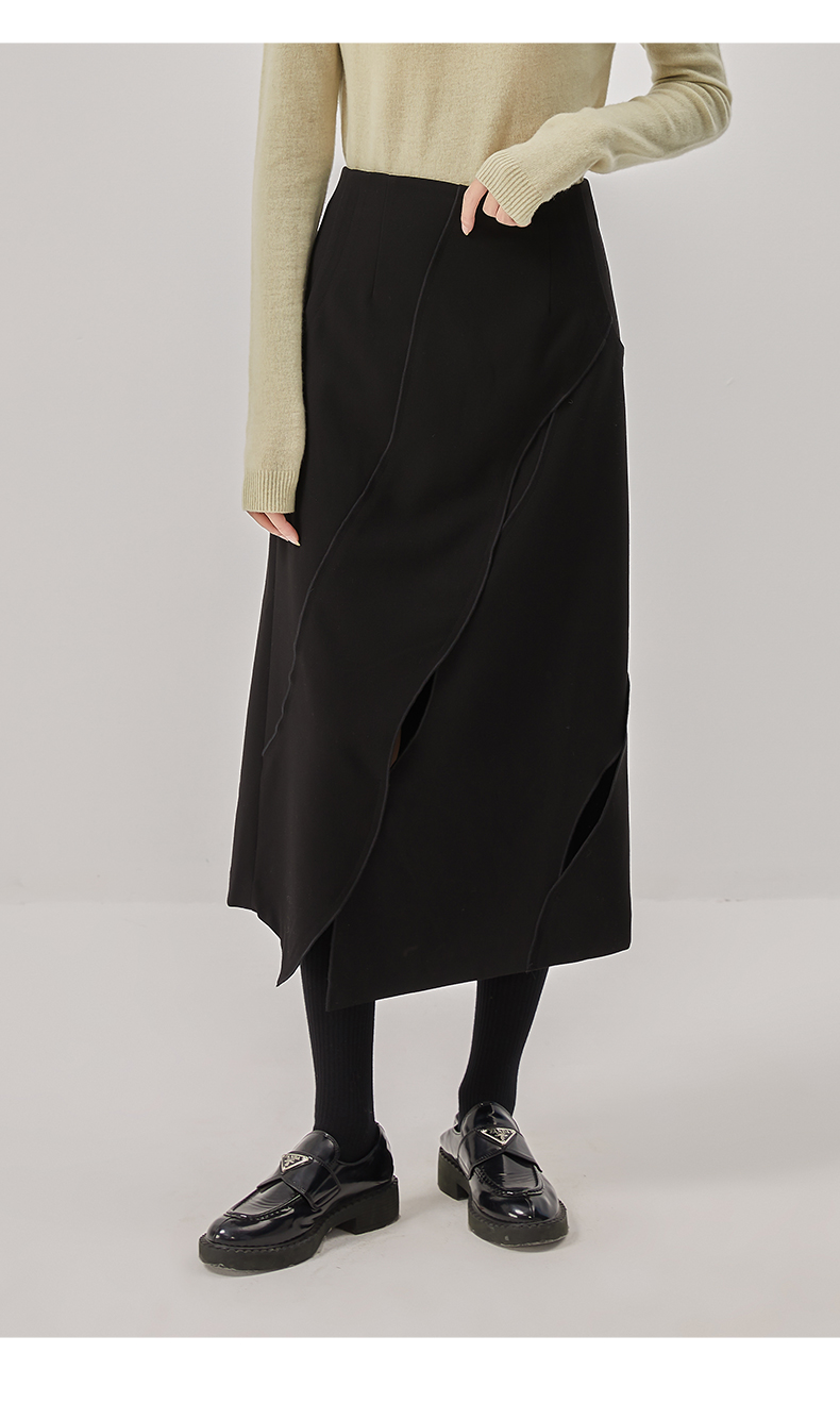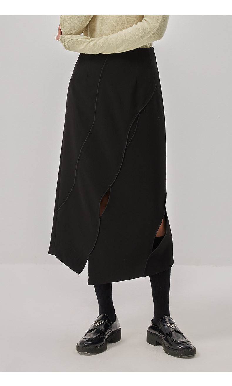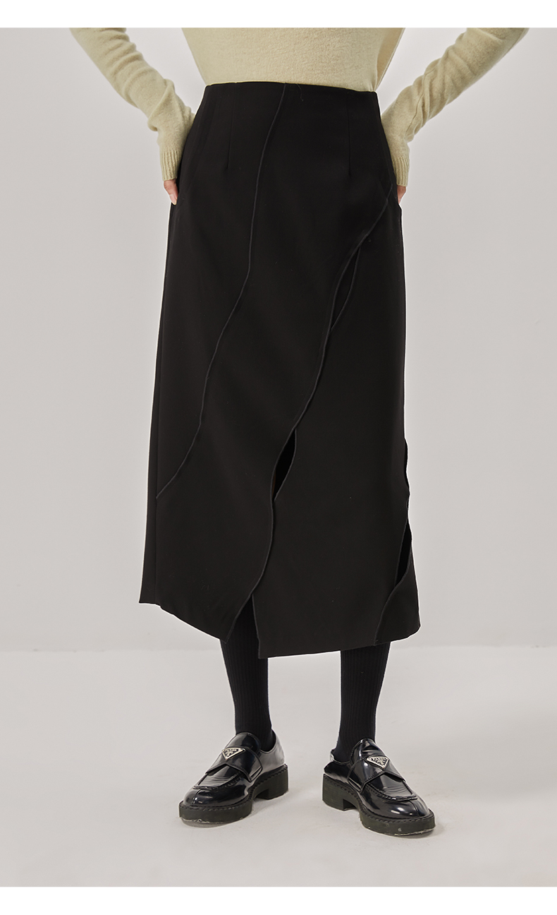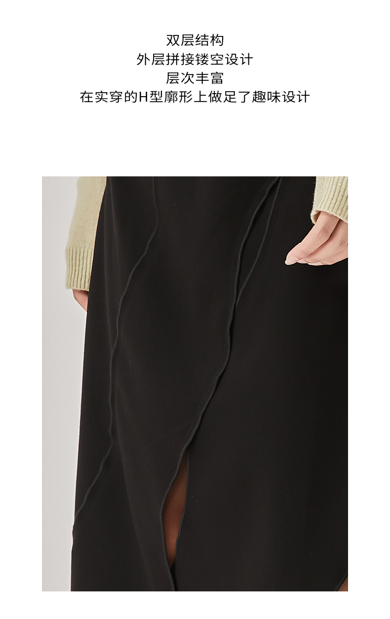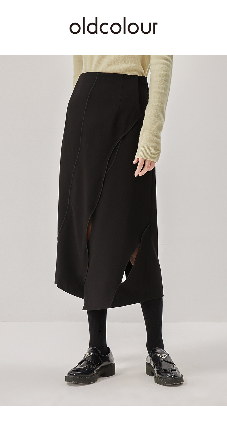 oldcolour冬新款黑色气质镂空高腰显瘦长款半身裙女O42063286