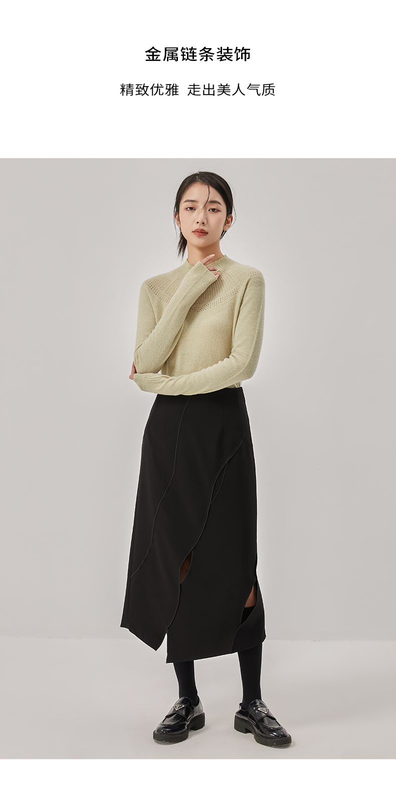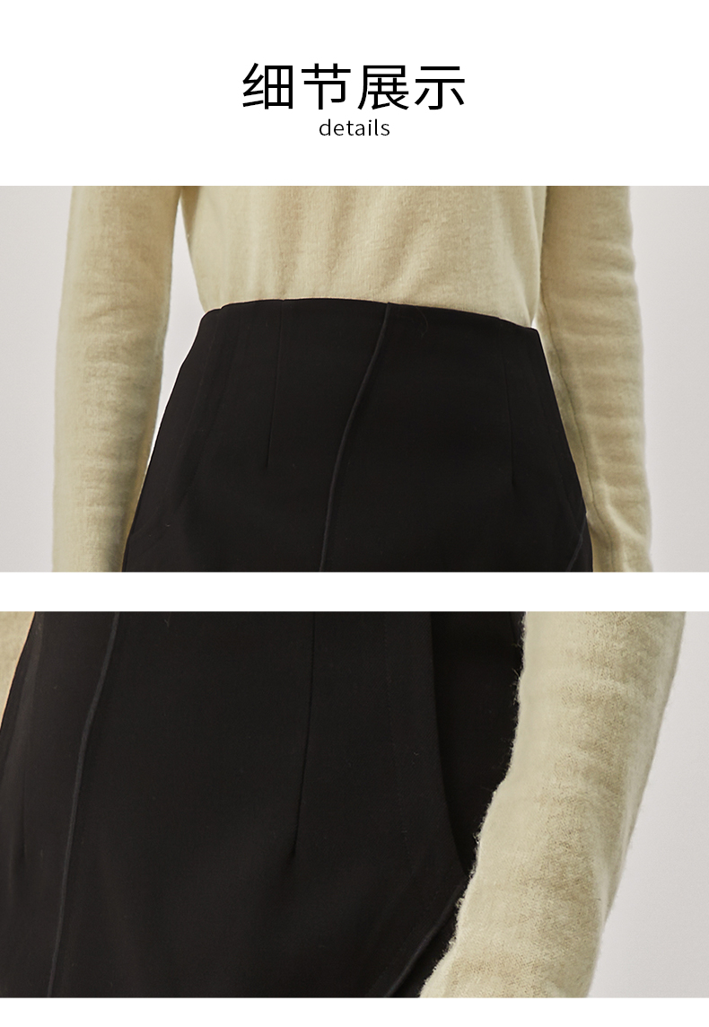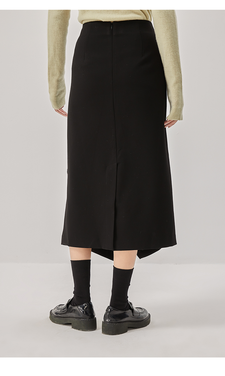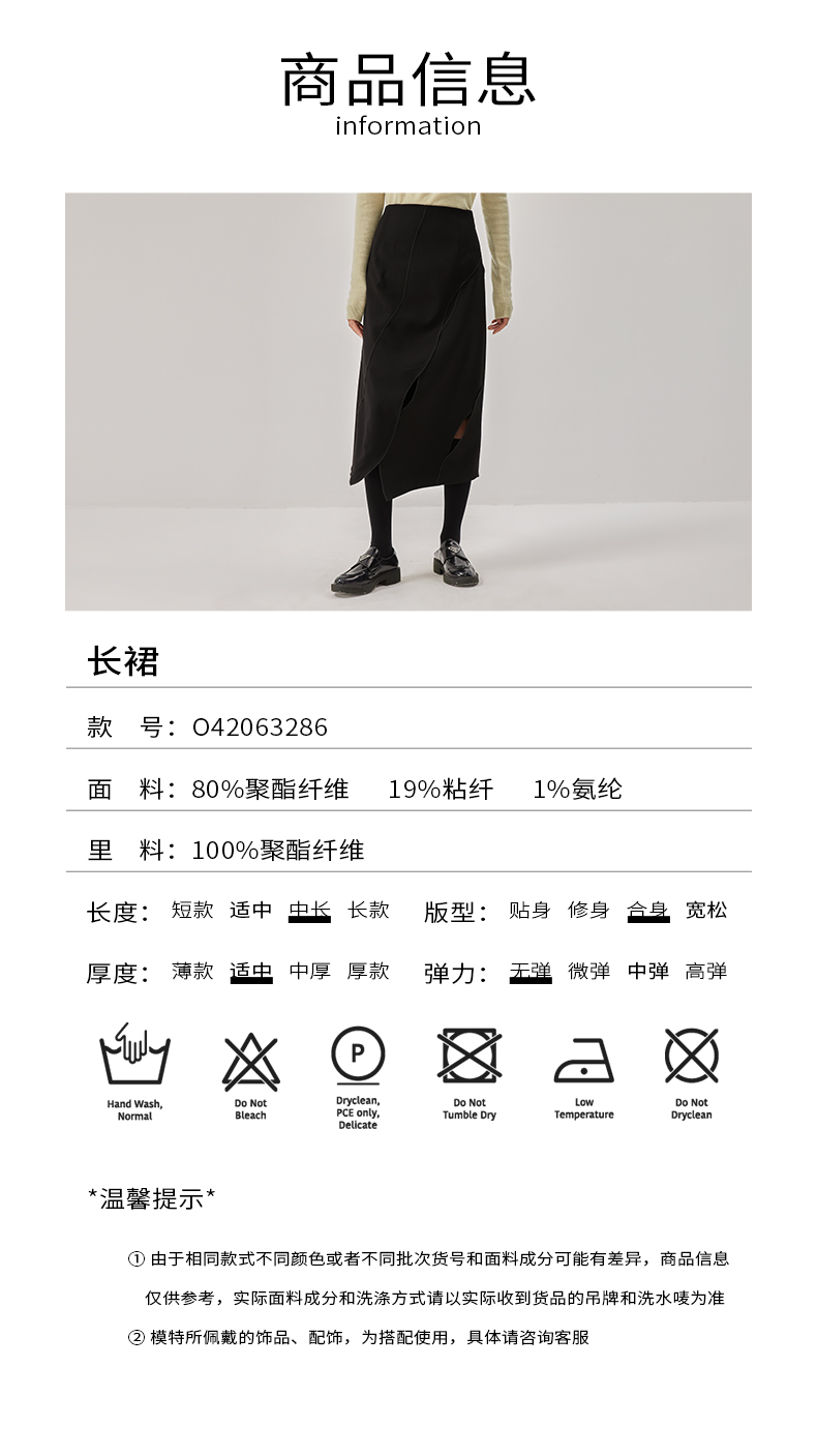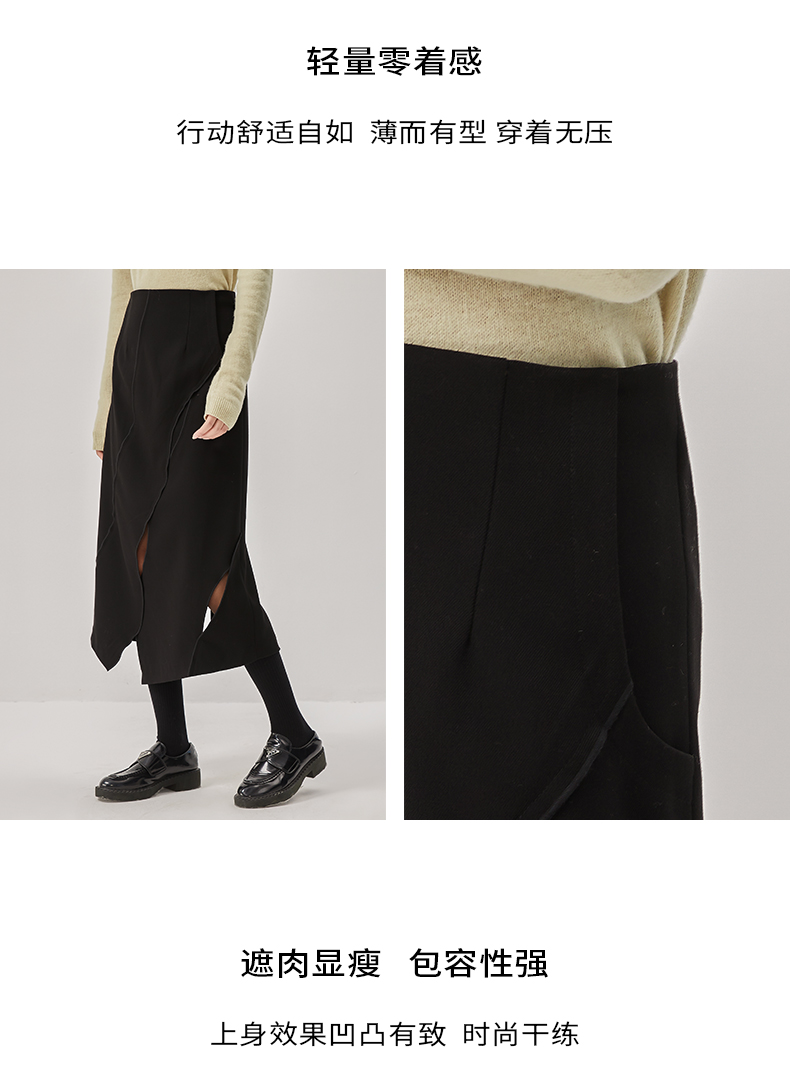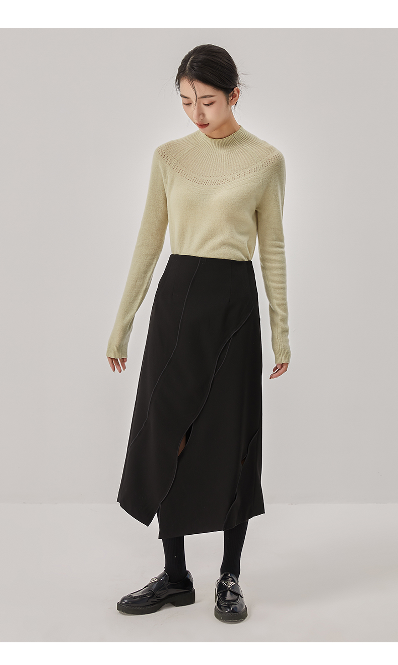 oldcolour冬新款黑色气质镂空高腰显瘦长款半身裙女O42063286