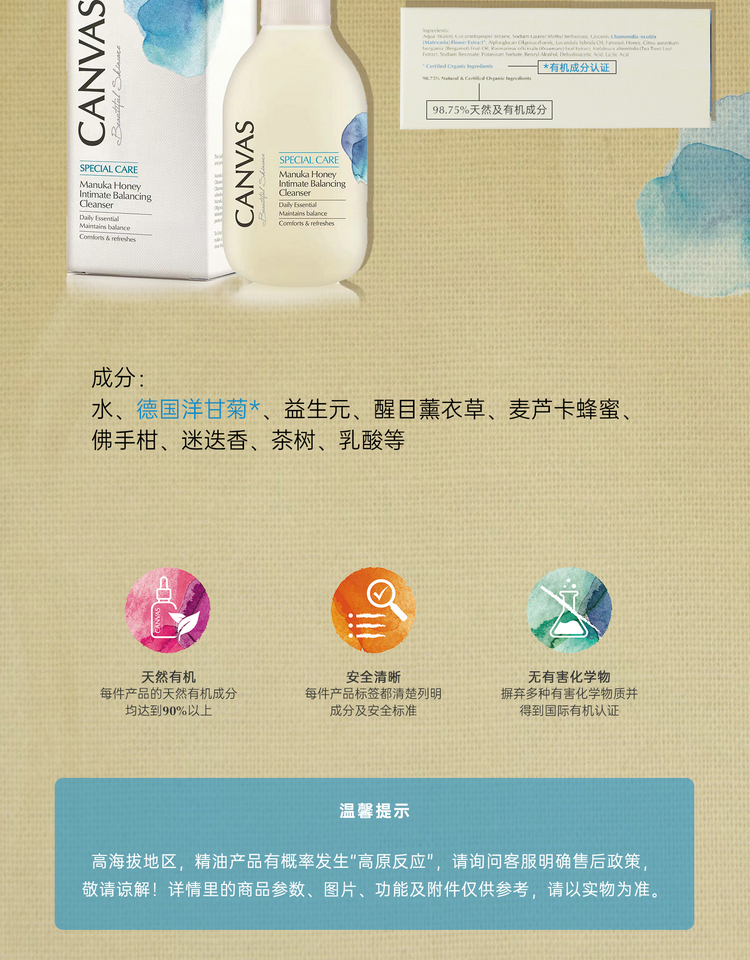 保税直发 CANVAS 卡芬诗 麦卢卡蜂蜜私密平衡护理液 150mL
