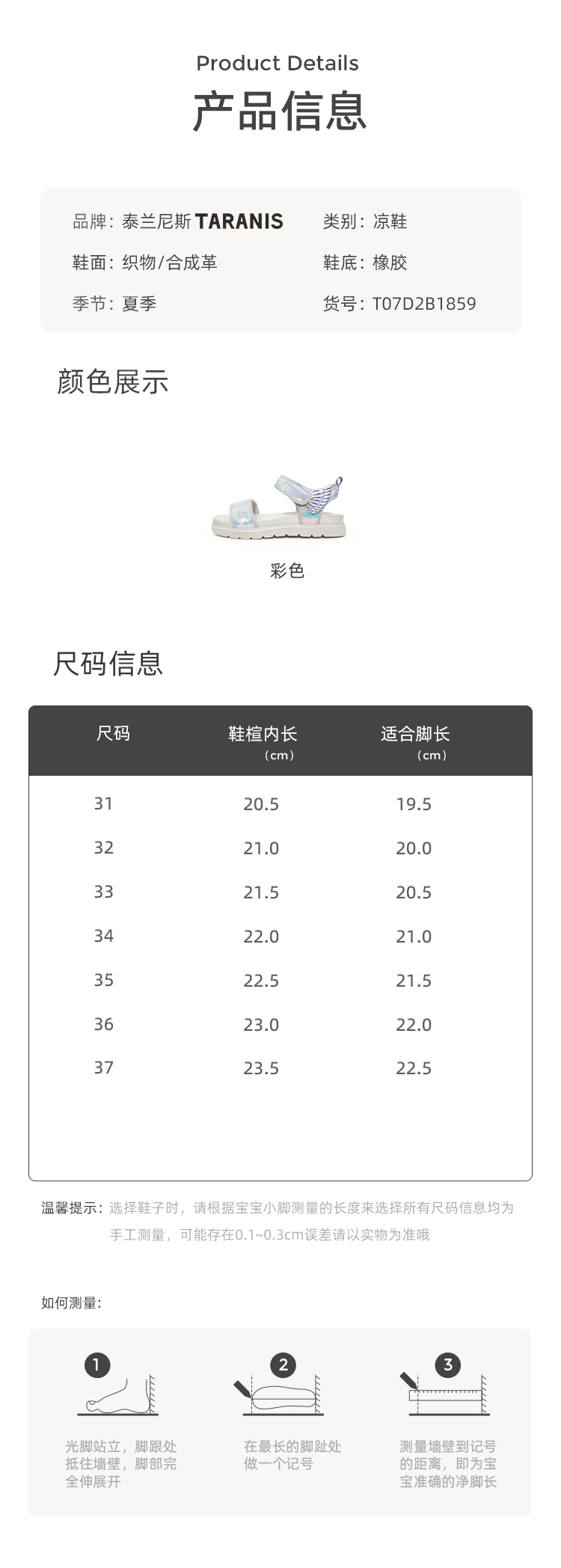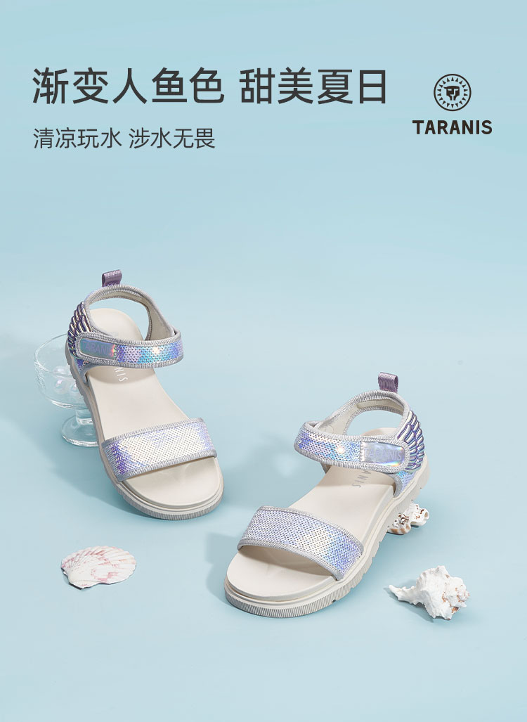 泰兰尼斯夏季新款凉鞋女童休闲软底鞋公主露趾凉鞋T07D2B1859