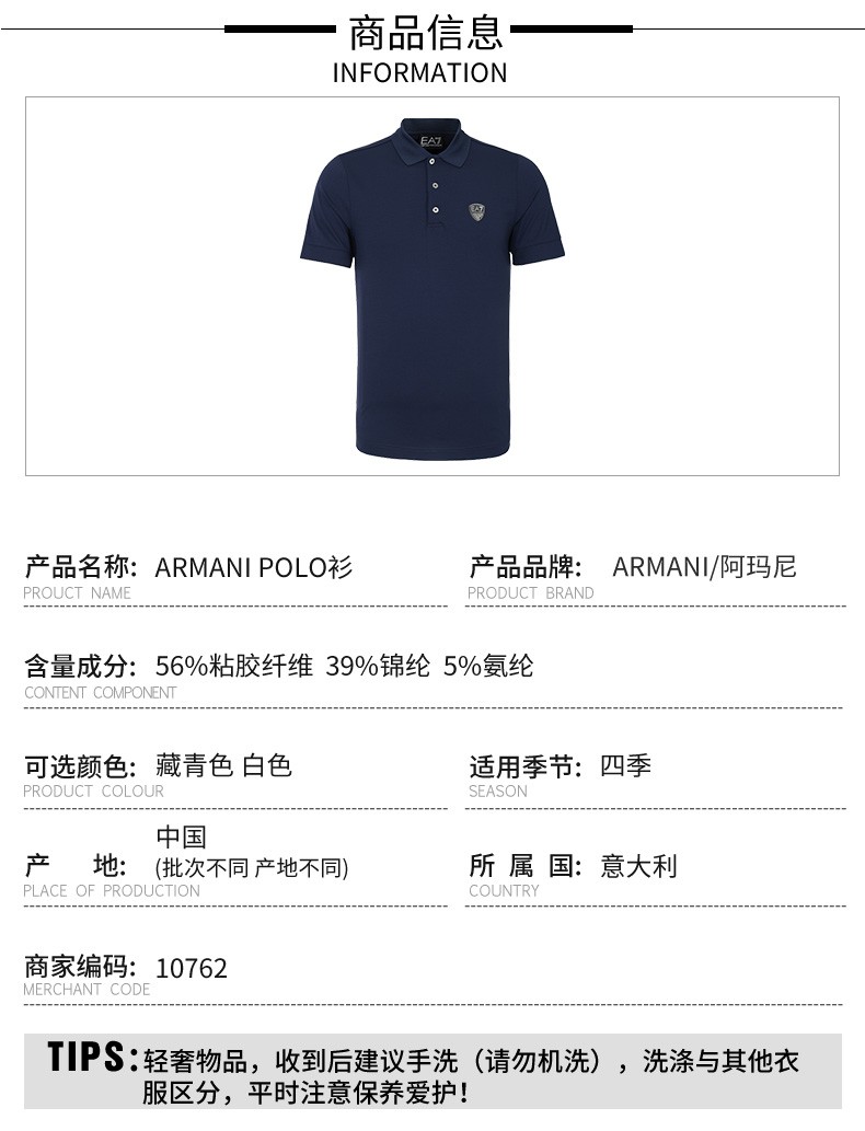 阿玛尼(ARMANI)男装 男士时尚休闲短袖POLO衫 10762
