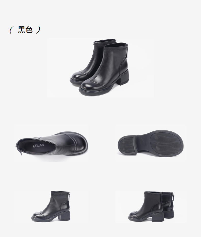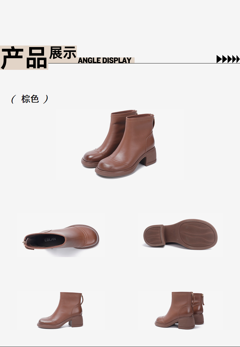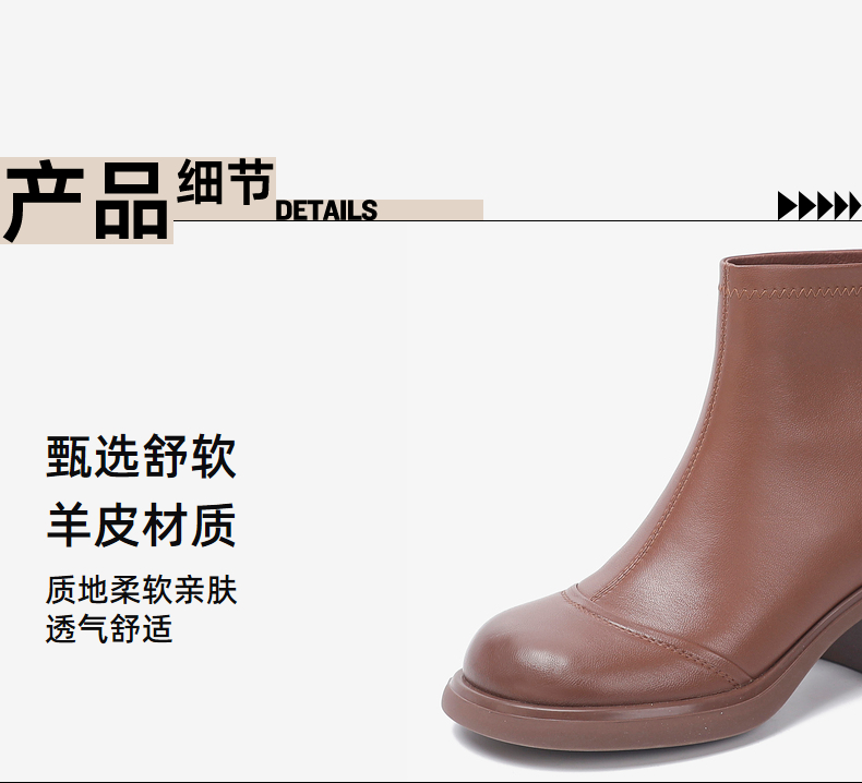 千百度羊皮粗高跟鞋女通勤正装法式扣饰气质浅口单鞋A25485663