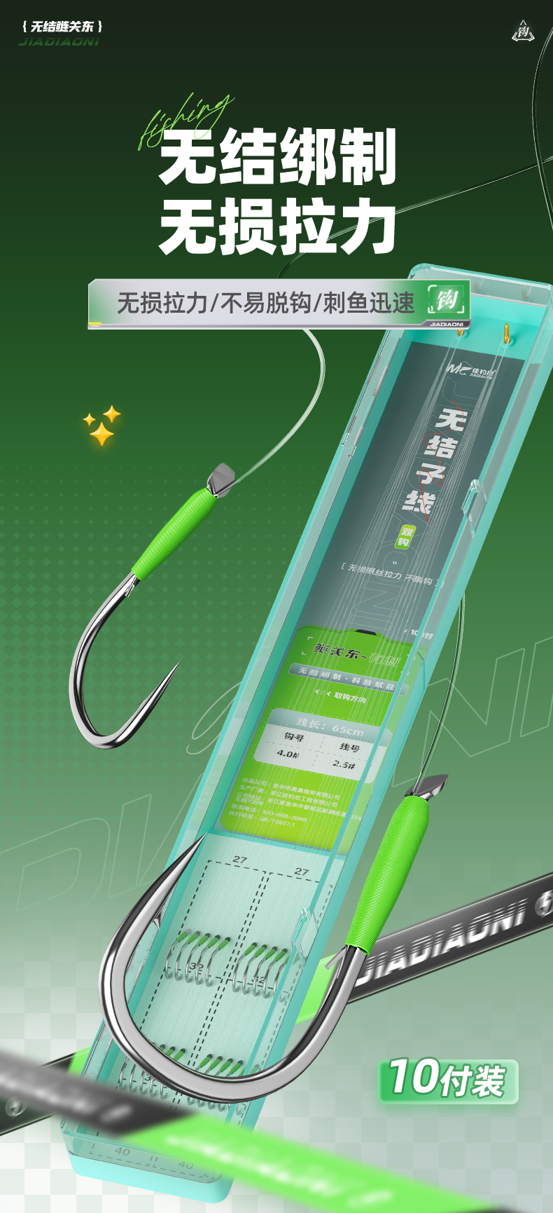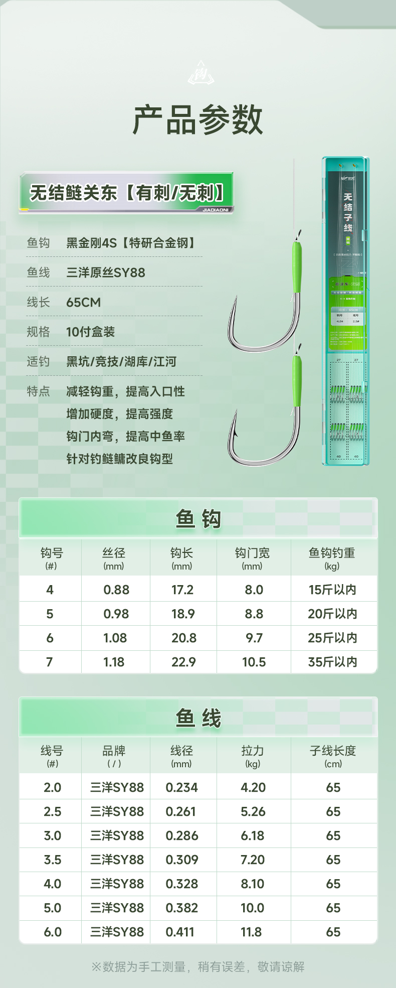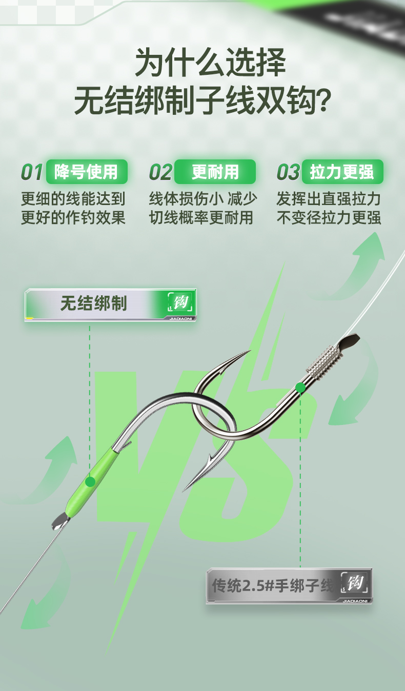 佳钓尼无结子线双钩成品新关东鲢鳙钩10付