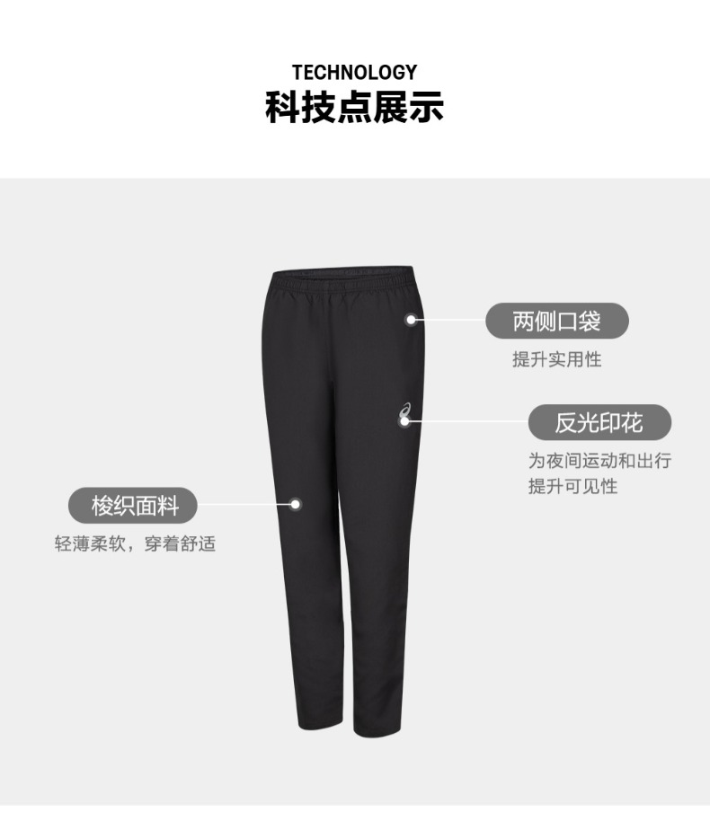 ASICS亚瑟士男子运动长裤轻量梭织反光印花夜跑跑步长裤2011D044